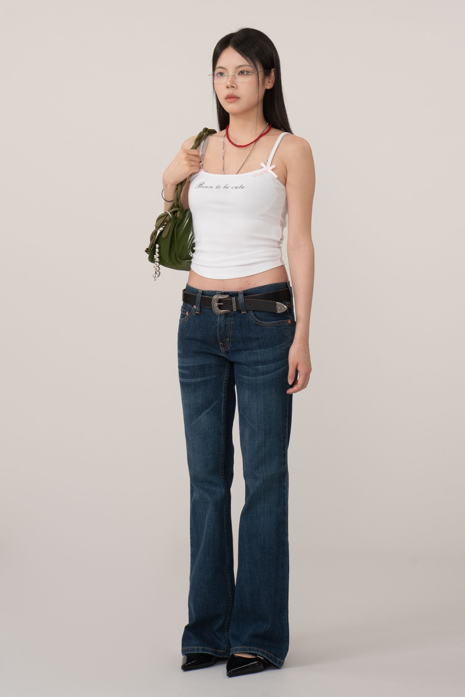 로우라이즈 허리선과 슬림한 힙 라인, 그리고 무릎 아래로 자연스럽게 퍼지는 부츠컷 핏이 특징이며 당시 팝스타들과 스트리트씬에서 유행했던 ‘섹시하지만 자유로운’ 무드와 맞닿아 있는 아이템이에요.