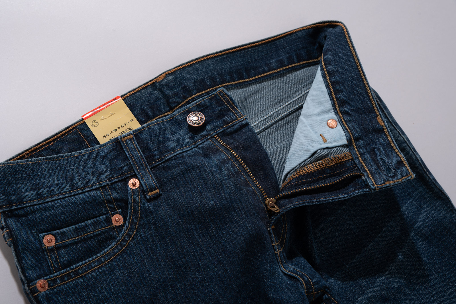 워싱은 허벅지에 은은하게 들어간 샌드블라스트 처리로 입체감을 더하고 리바이스 특유의 오렌지 스티치와 백 포켓의 아큐에잇도 리바이스의 디테일을 즐기기 좋은 포인트랍니다.