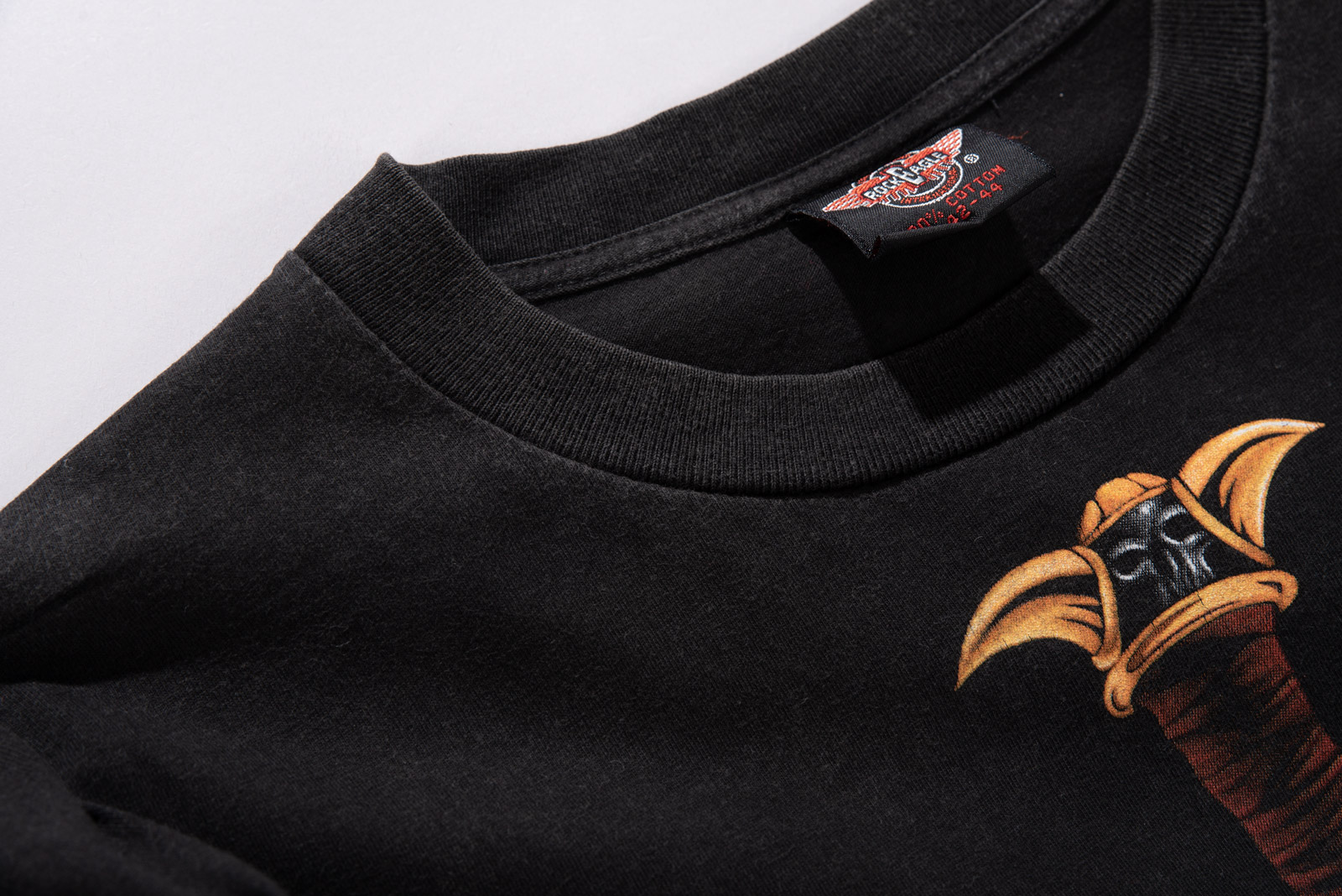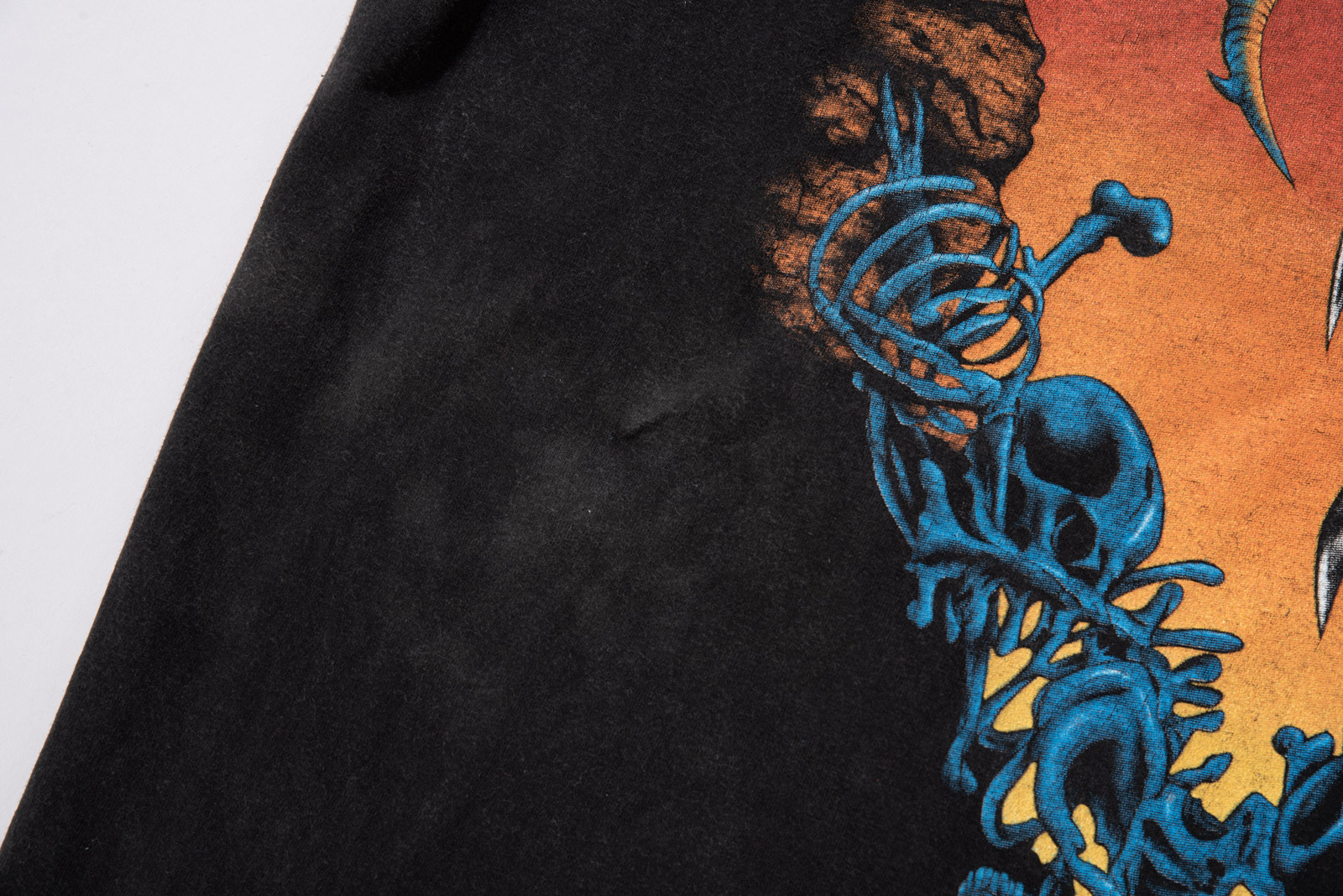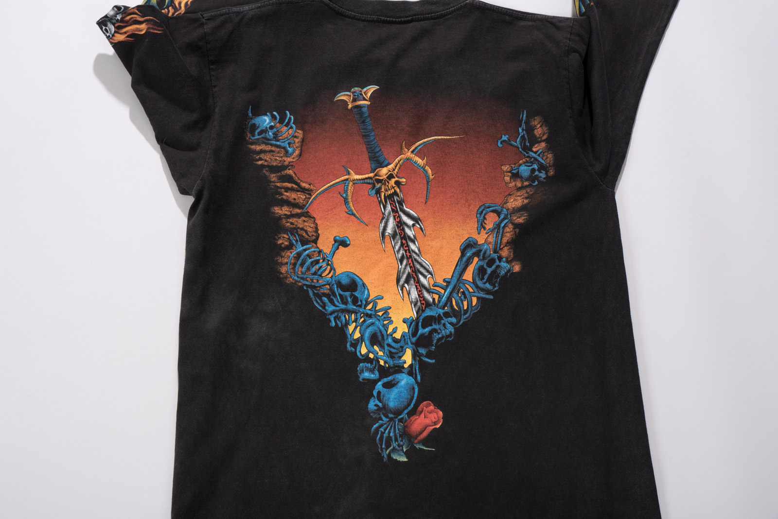 아주 핫한 세인트 미카엘의 빈티지한 프린팅 티셔츠가 주목 받으며 이런 90s 오리지널들 역시 많이들 찾고 계신데, 오늘 보여드리는 제품은 락 티 제작 전문 브랜드로 특유의 커다란 프린팅에 헤비메탈 정신이 느껴지는 해골이나 강렬한 컬러가 매력적인 피스랍니다.