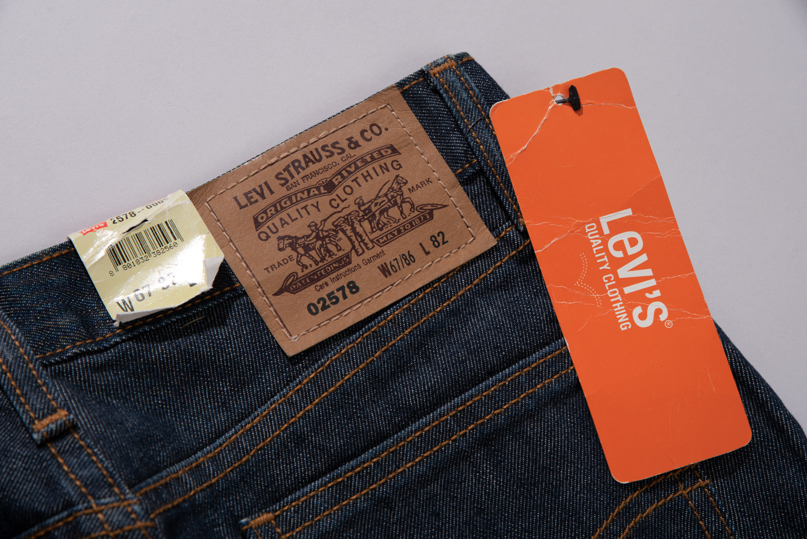 100% 코튼 원단에 탄탄한 직조감이 살아 있으며 전면 리벳·백 포켓 아치 스티치·오렌지 탭 등 희소하고 클래식하고 디테일이 모두 유지된 피스라 즐길 거리가 많아요.