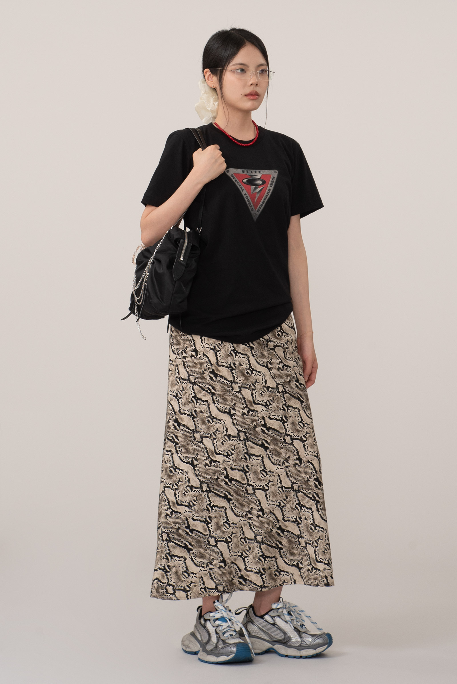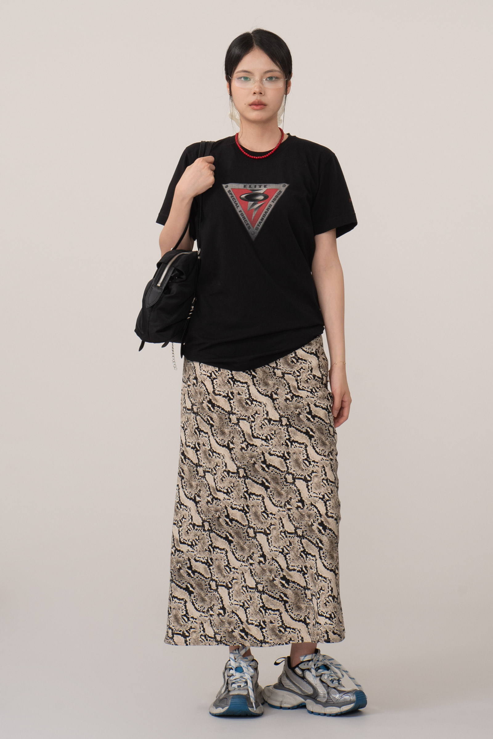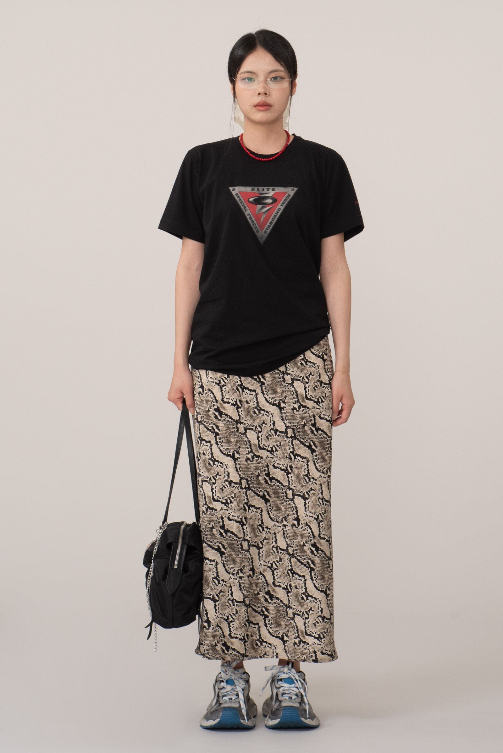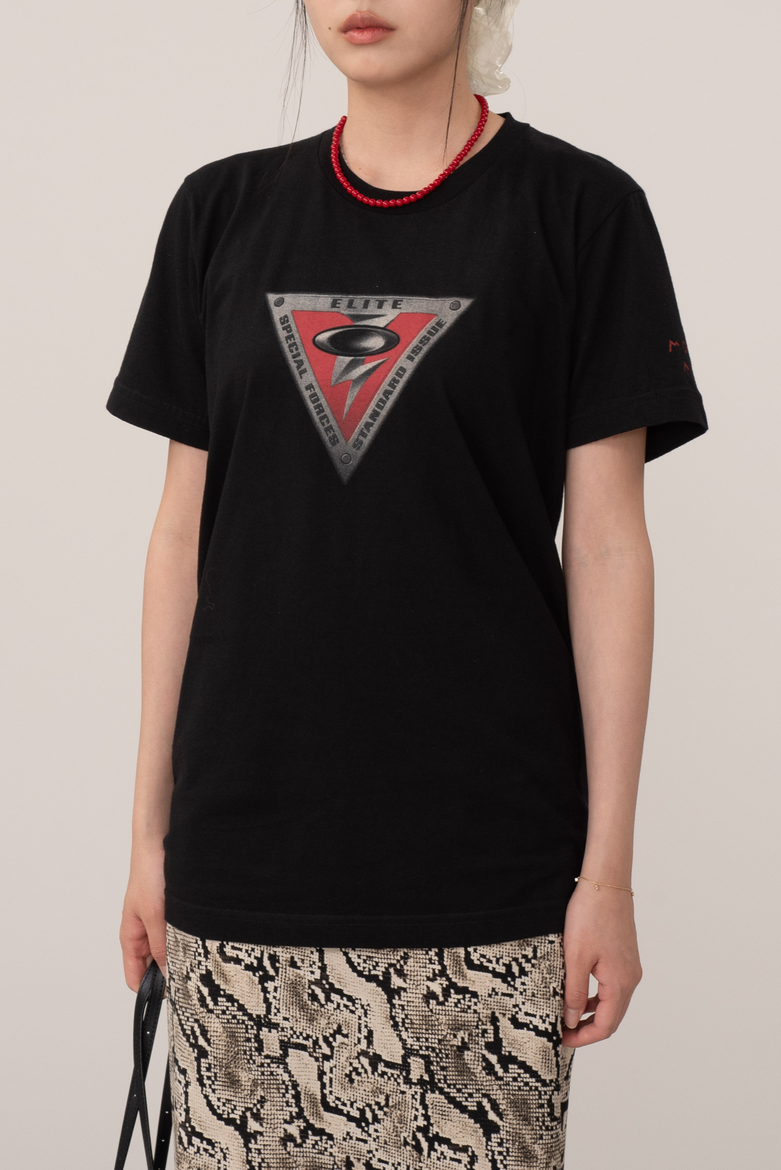 전면에는 레드와 실버 톤의 삼각형 프린트에 번개와 고글 심볼이 배치되어 있고 뒷넥과 소매에도 밀리터리 타입 레터링이 인쇄되어 있어 심플하지만 강한 인상을 주는데요.
