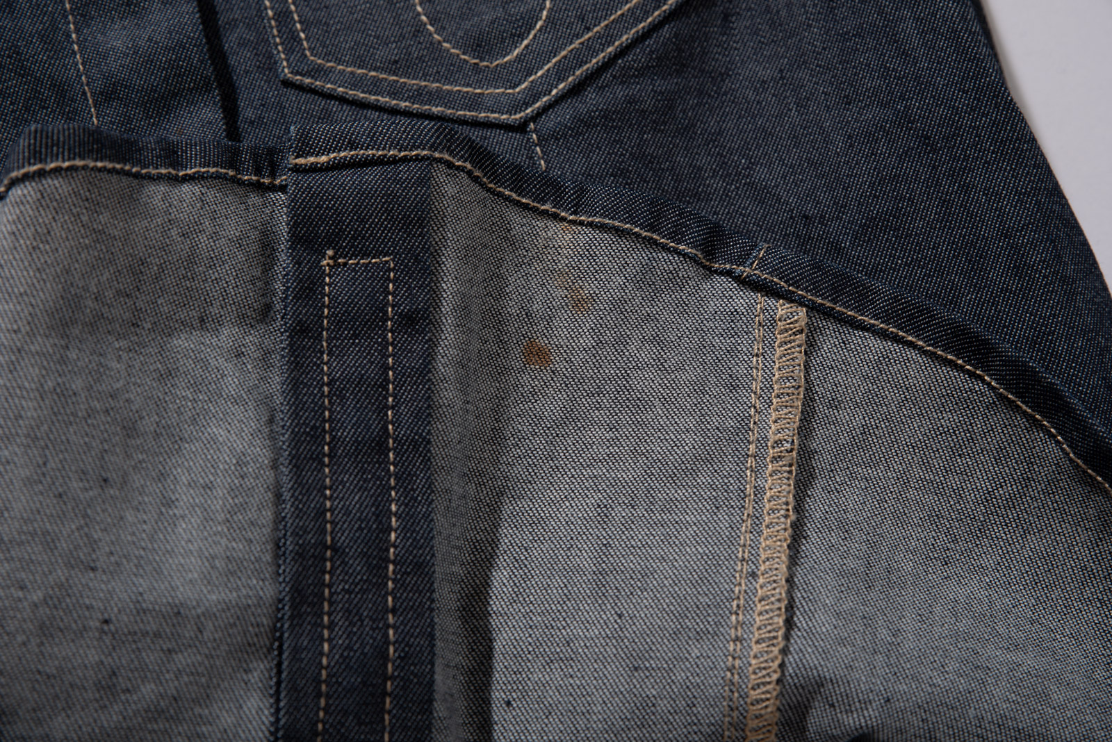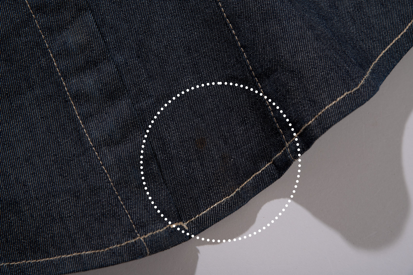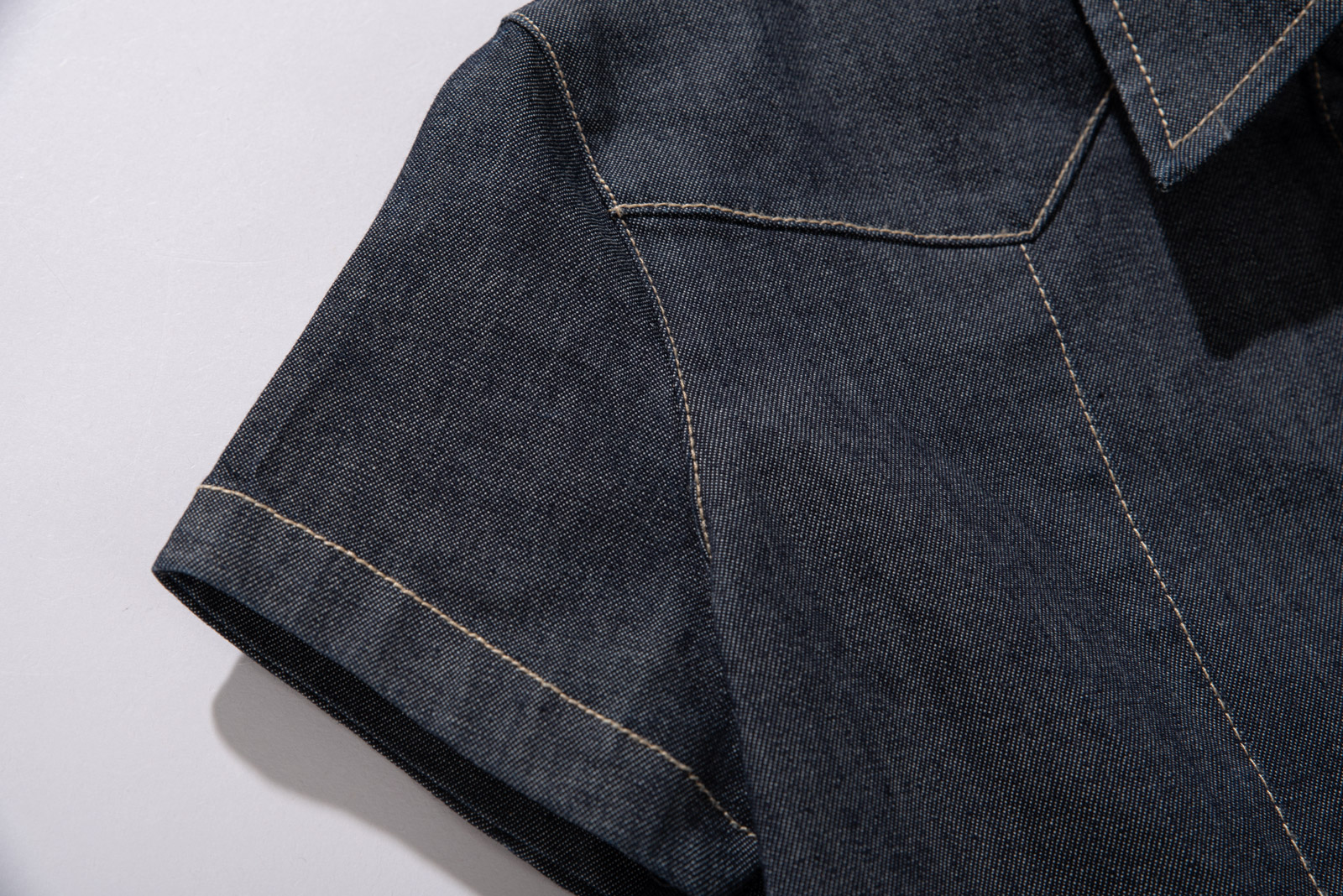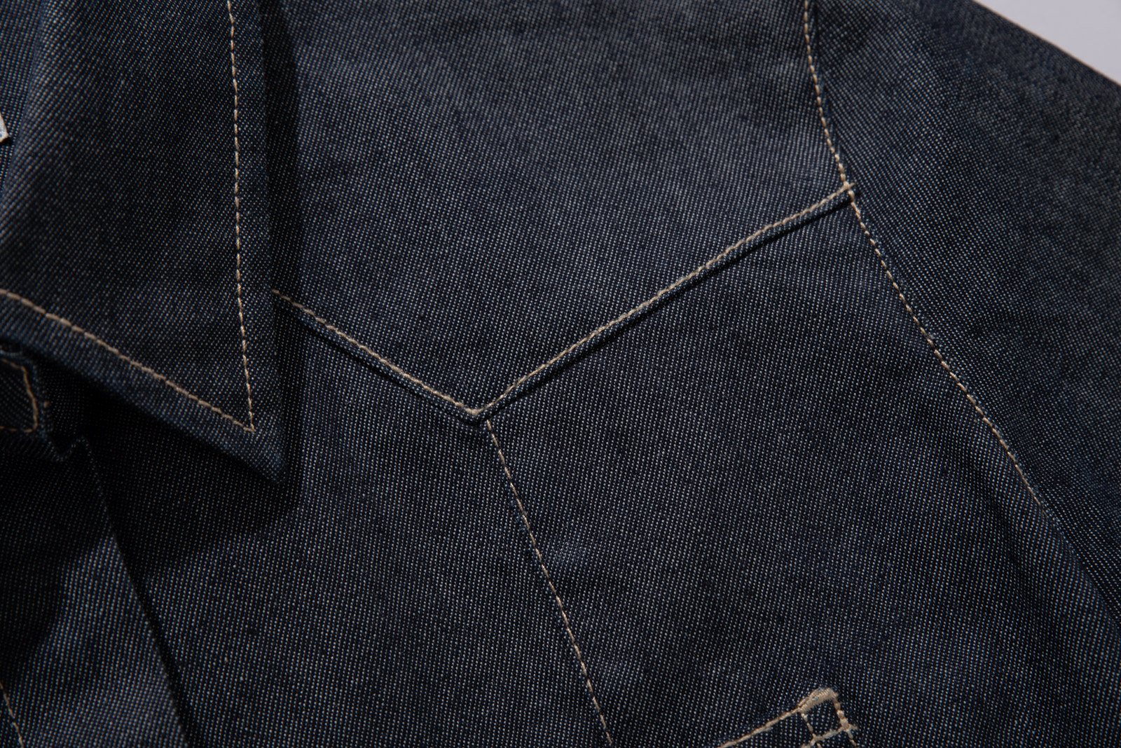 촘촘한 히든 버튼 디테일과 진한 인디고 컬러, 그리고 포켓 위 브랜드 로고 자수와 곡선 스티치가 개성을 더해준답니다.
