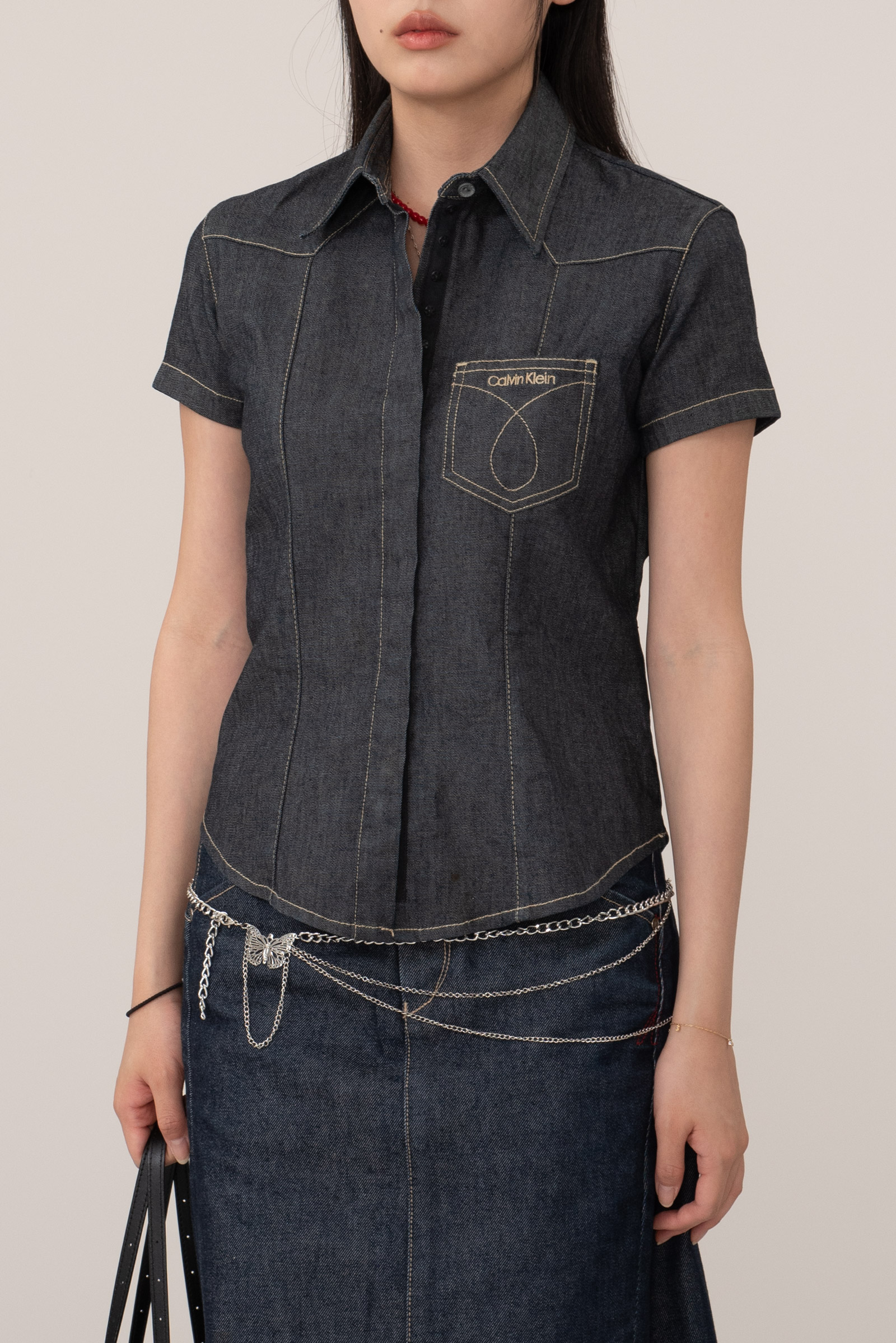 ▫comment - 미국을 대표하는 클래식 브랜드 Calvin Klein Jeans의 진청 데님 셔츠입니다.