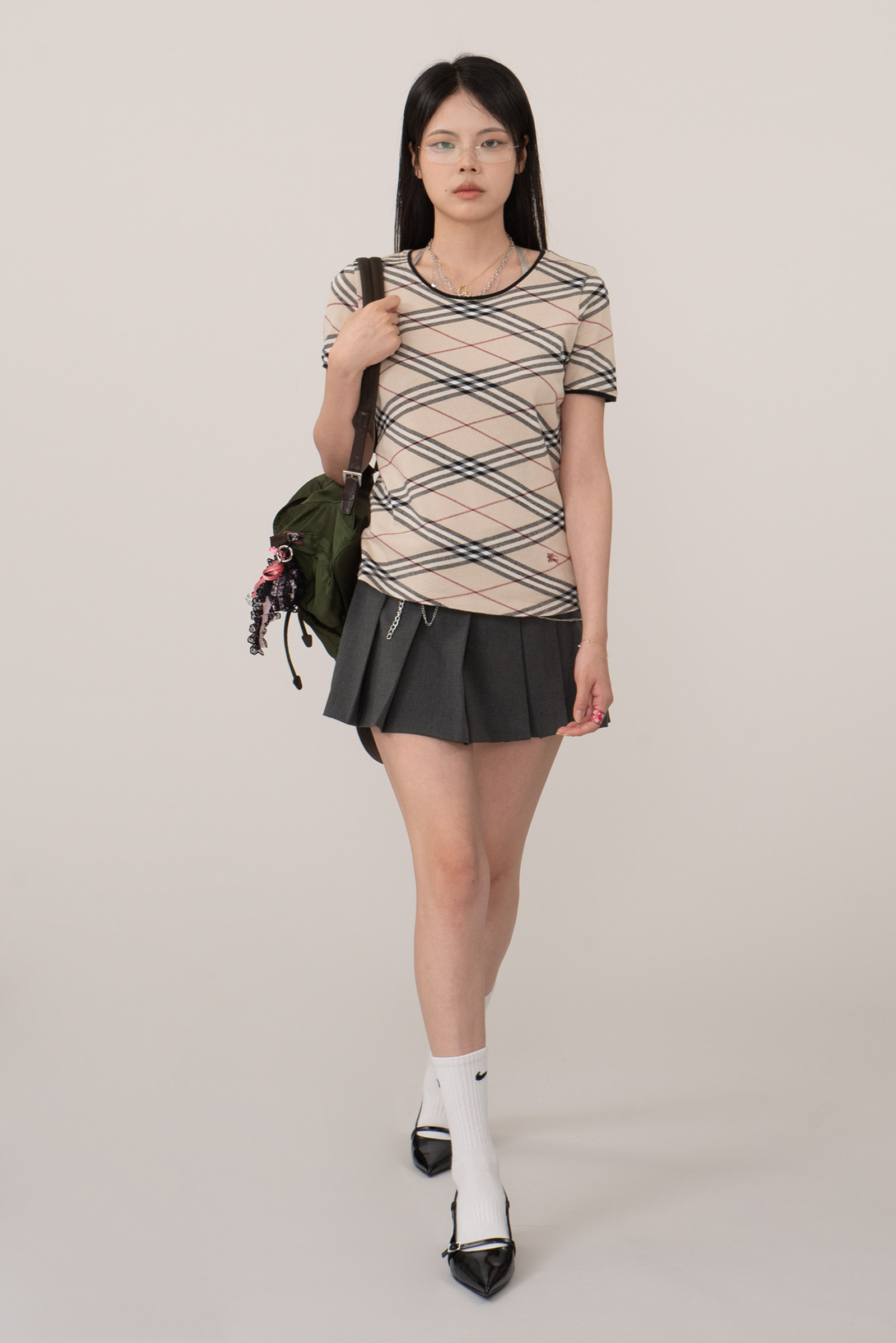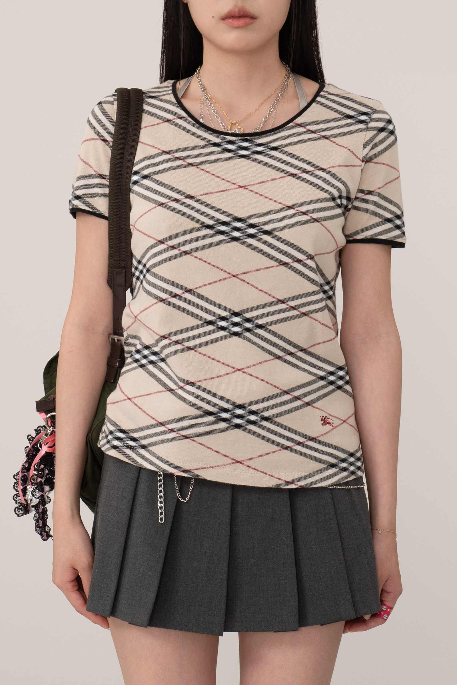 ▫comment - 버버리의 상징인 노바 체크 패턴이 전체에 고르게 짜여진 반팔 티셔츠입니다.