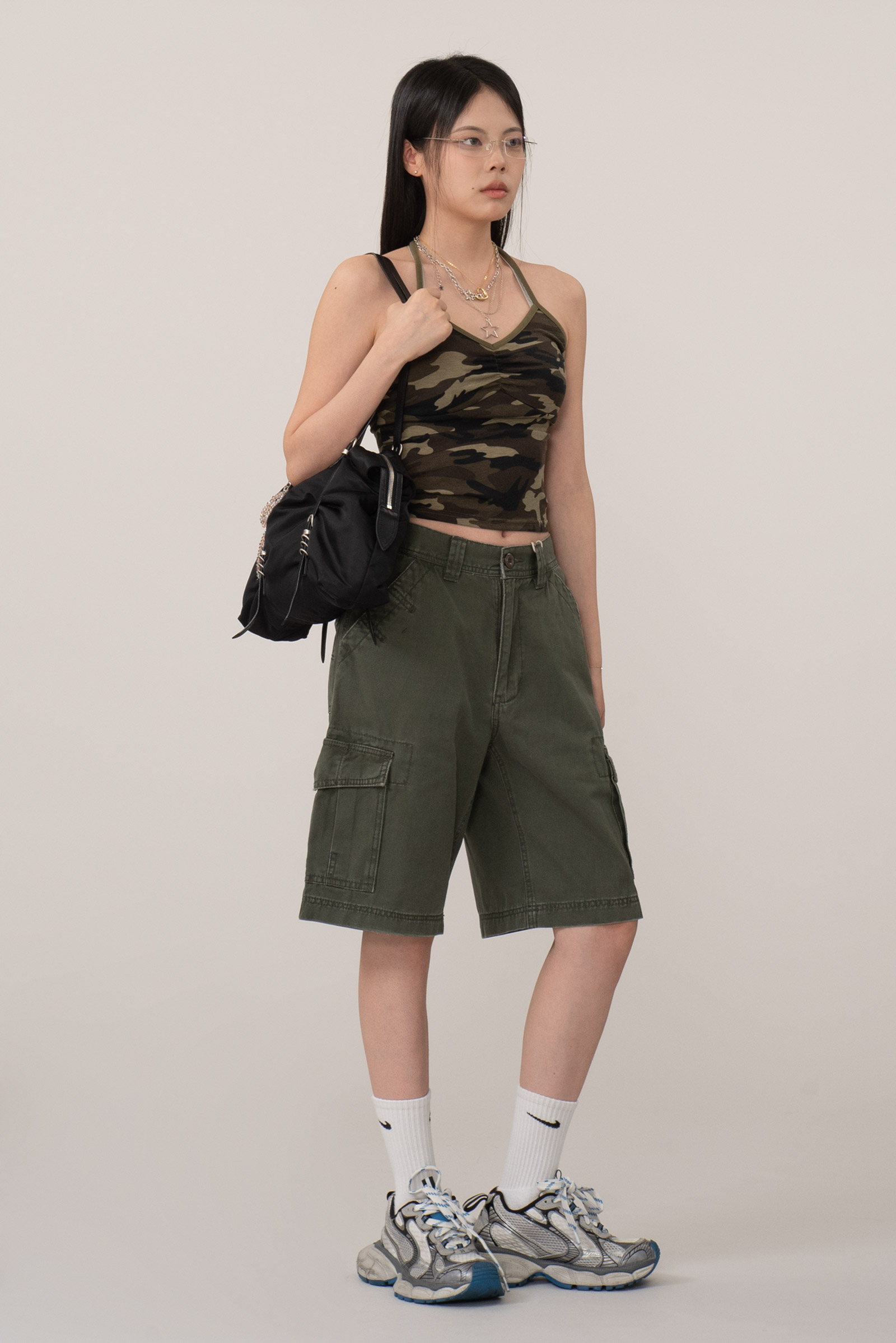 루즈하고 여유로운 허벅지 너비, 허리부터 자연스럽게 떨어지는 스트레이트 실루엣, 무릎 위에 걸치는 기장으로 덥지 않게, 편하게 입기 좋은 구조랍니다.