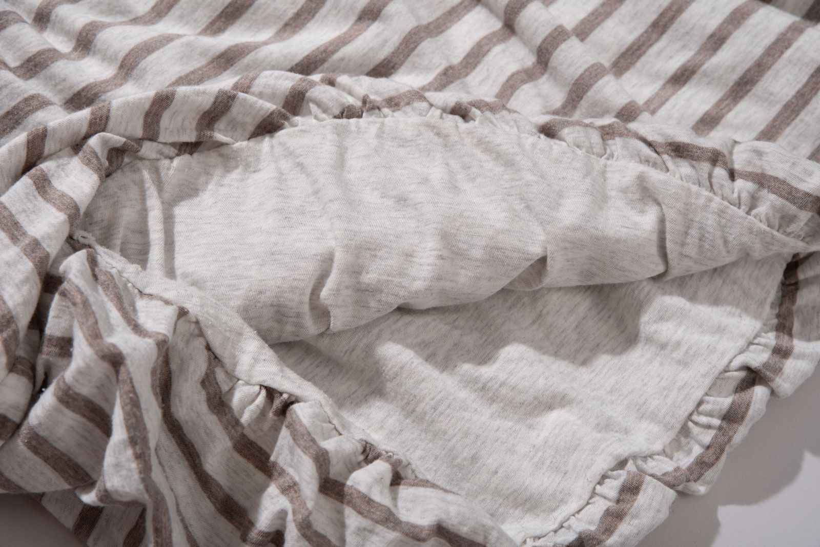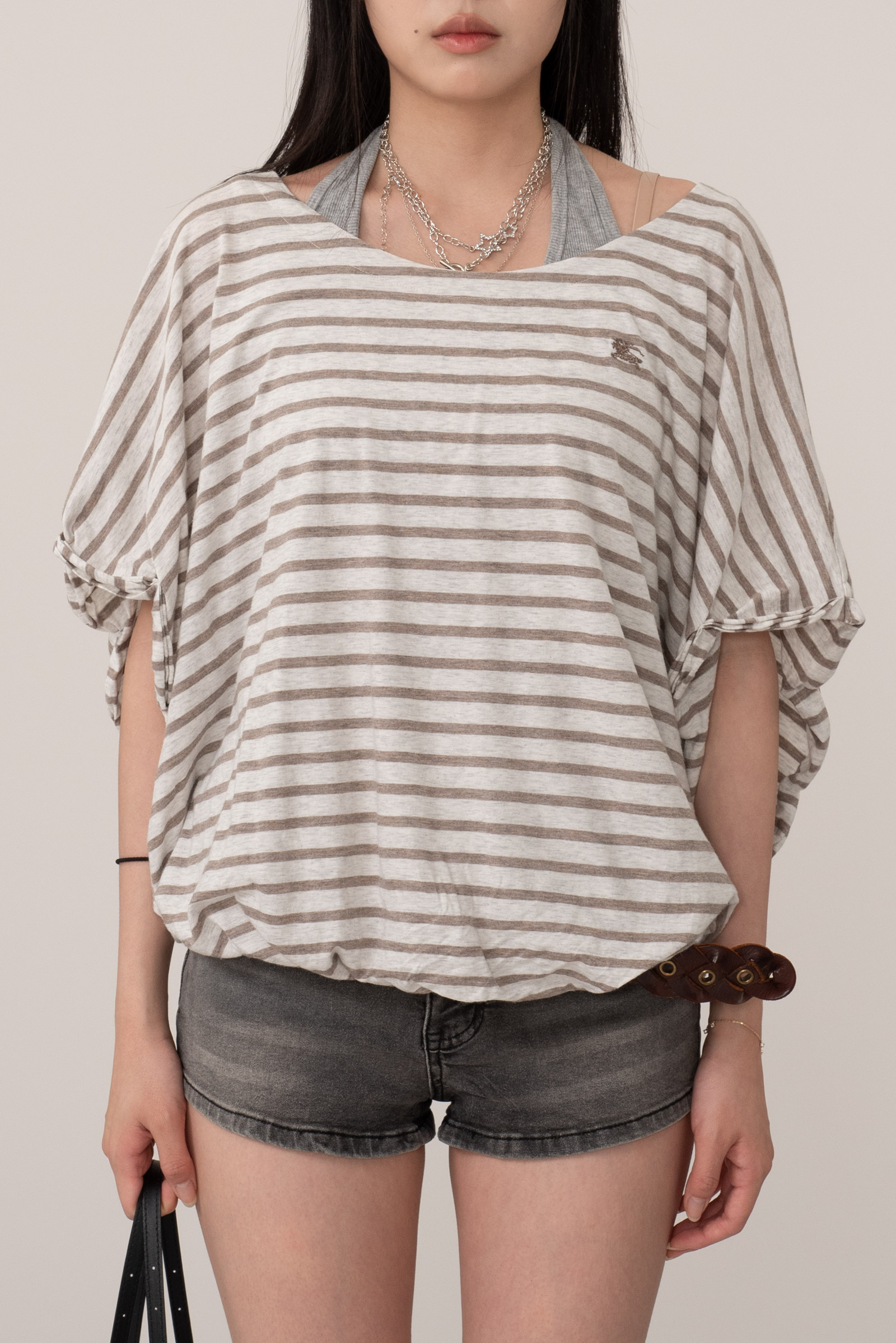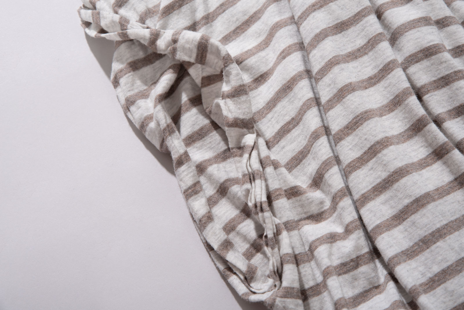 코튼과 레이온, 리오셀 블렌드 소재로, 부드럽고 유연한 착용감이 특징이며 은은한 베이지 x 멜란지 그레이 스트라이프 패턴으로 오리지널 y2k 감성 제대로죠?