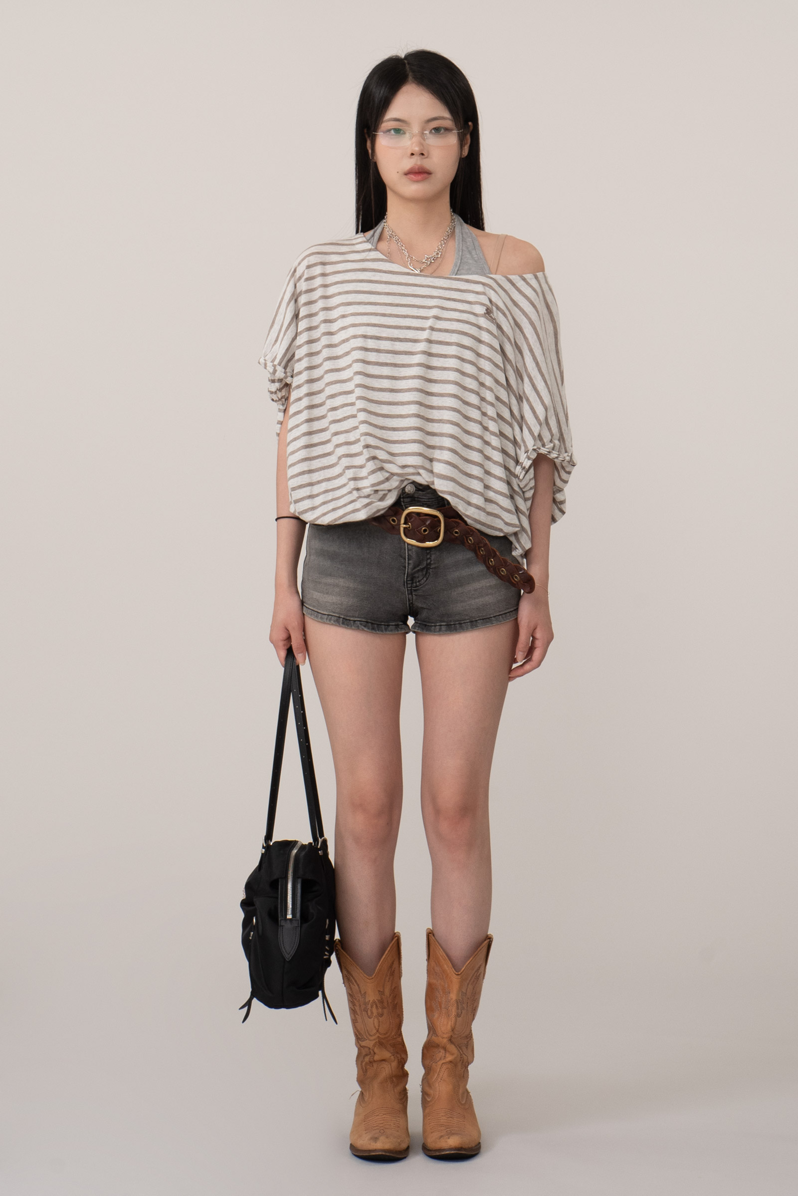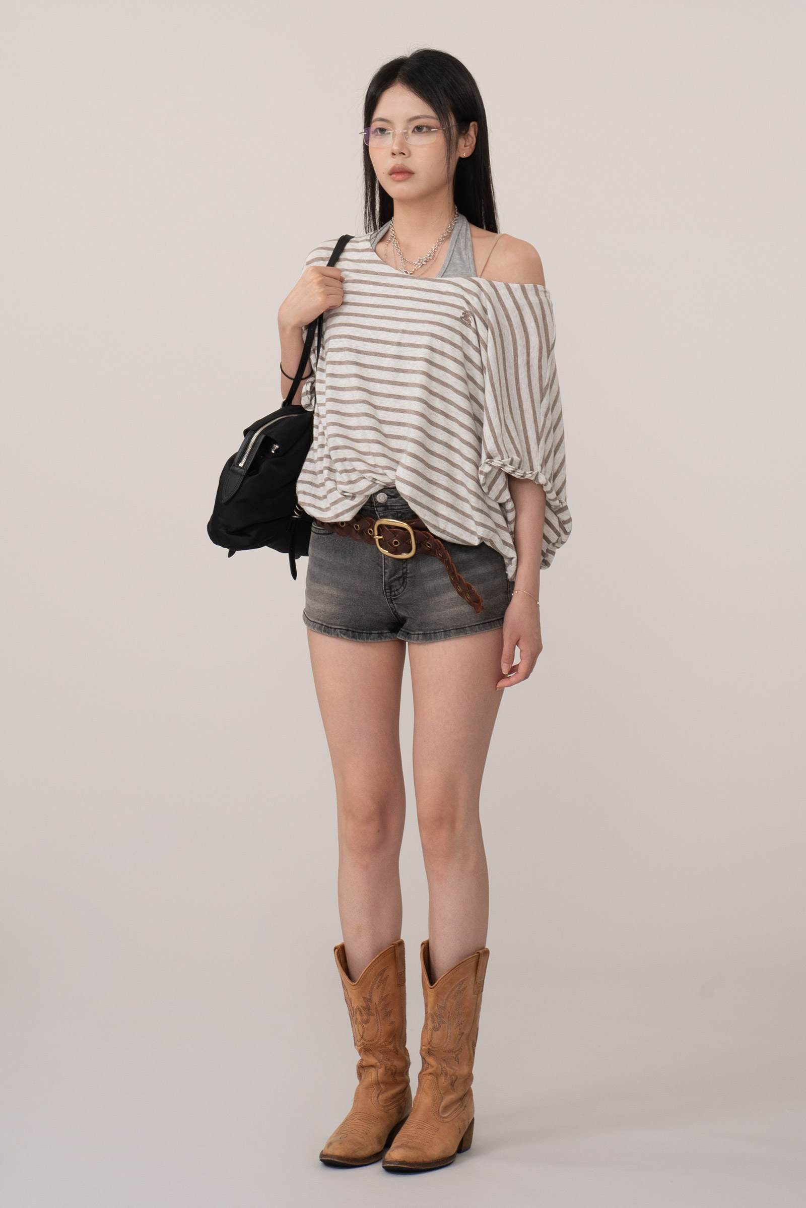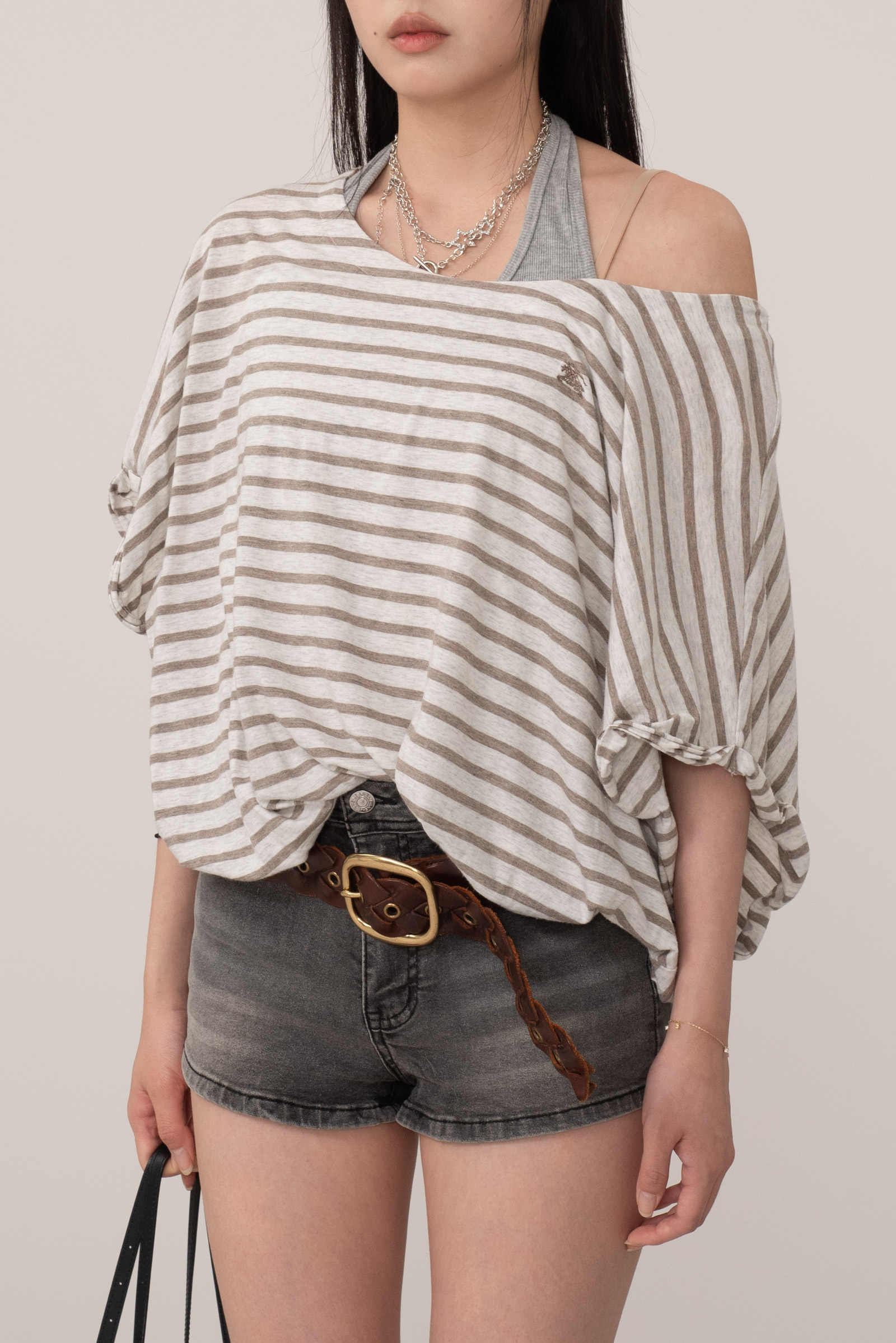 코튼과 레이온, 리오셀 블렌드 소재로, 부드럽고 유연한 착용감이 특징이며 은은한 베이지 x 멜란지 그레이 스트라이프 패턴으로 오리지널 y2k 감성 제대로죠?