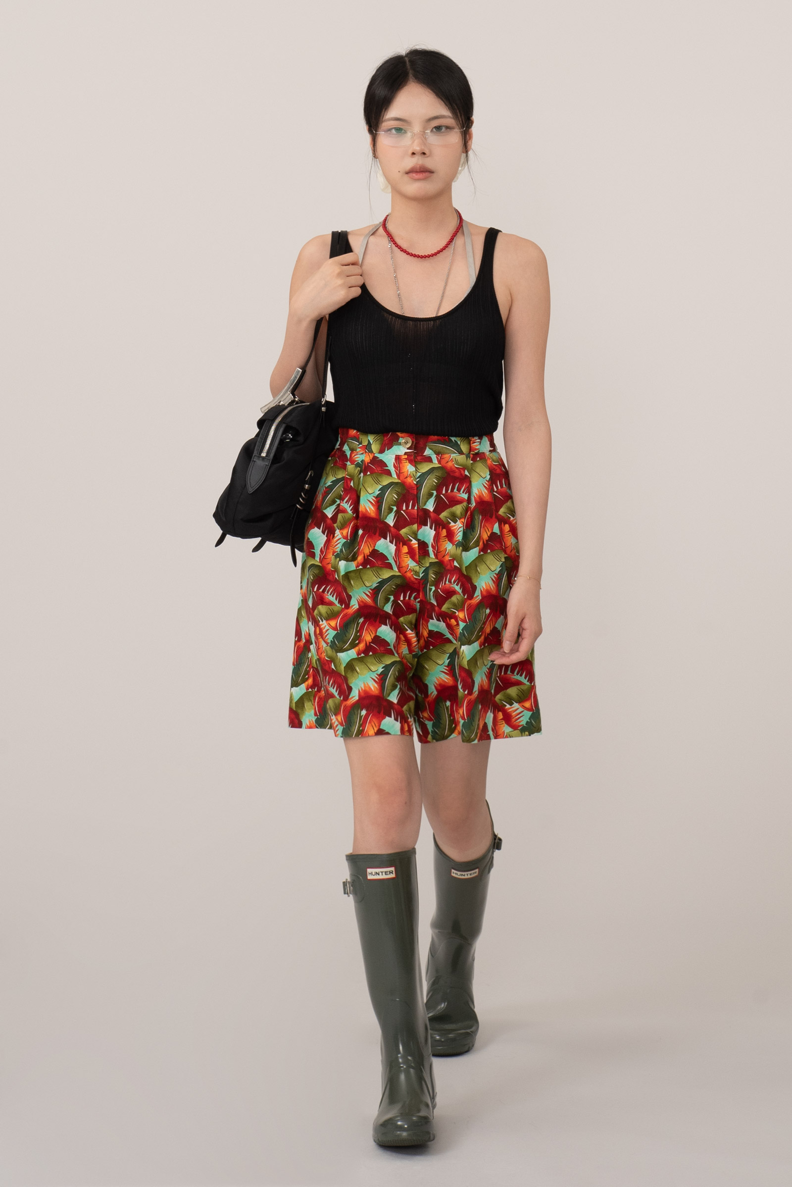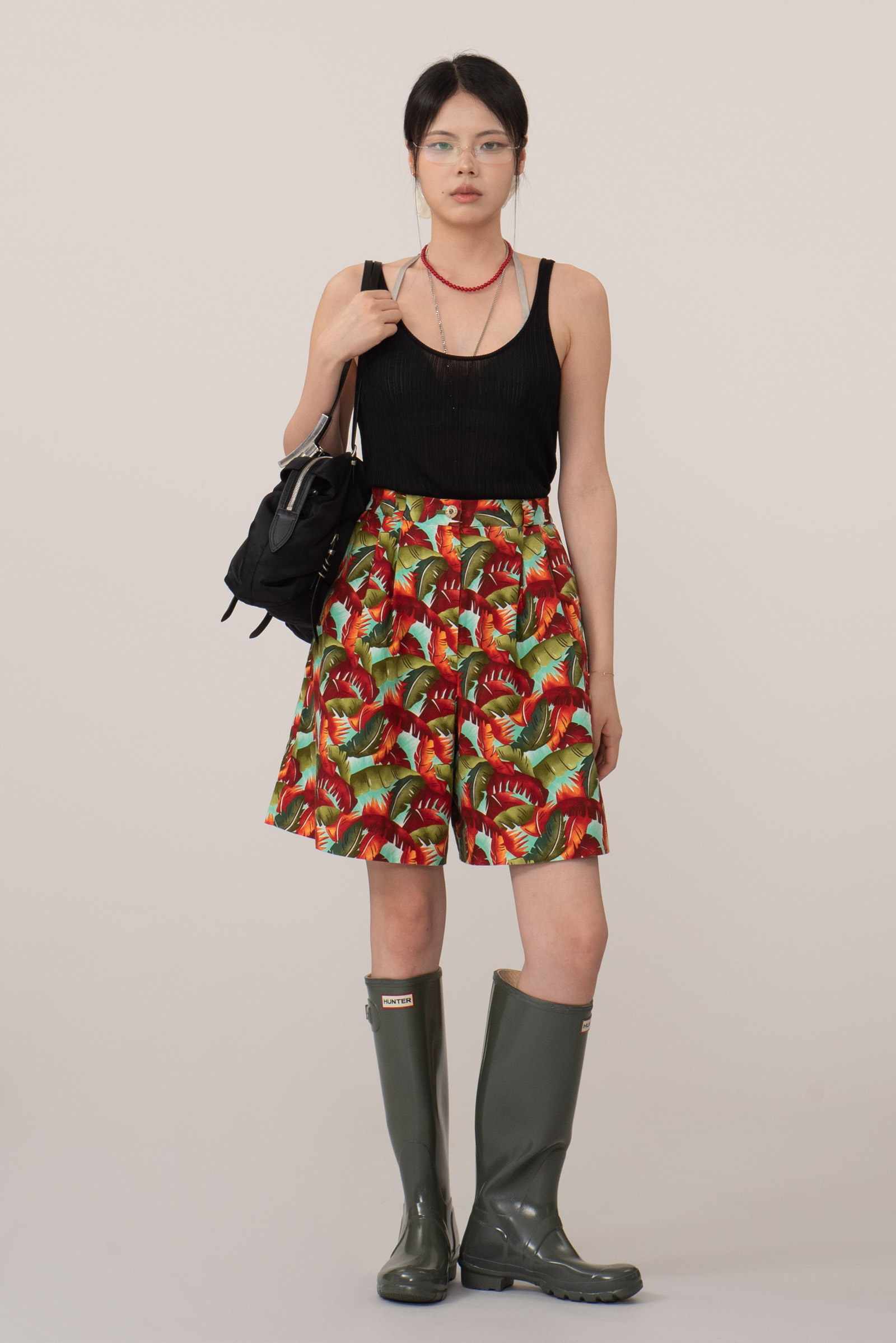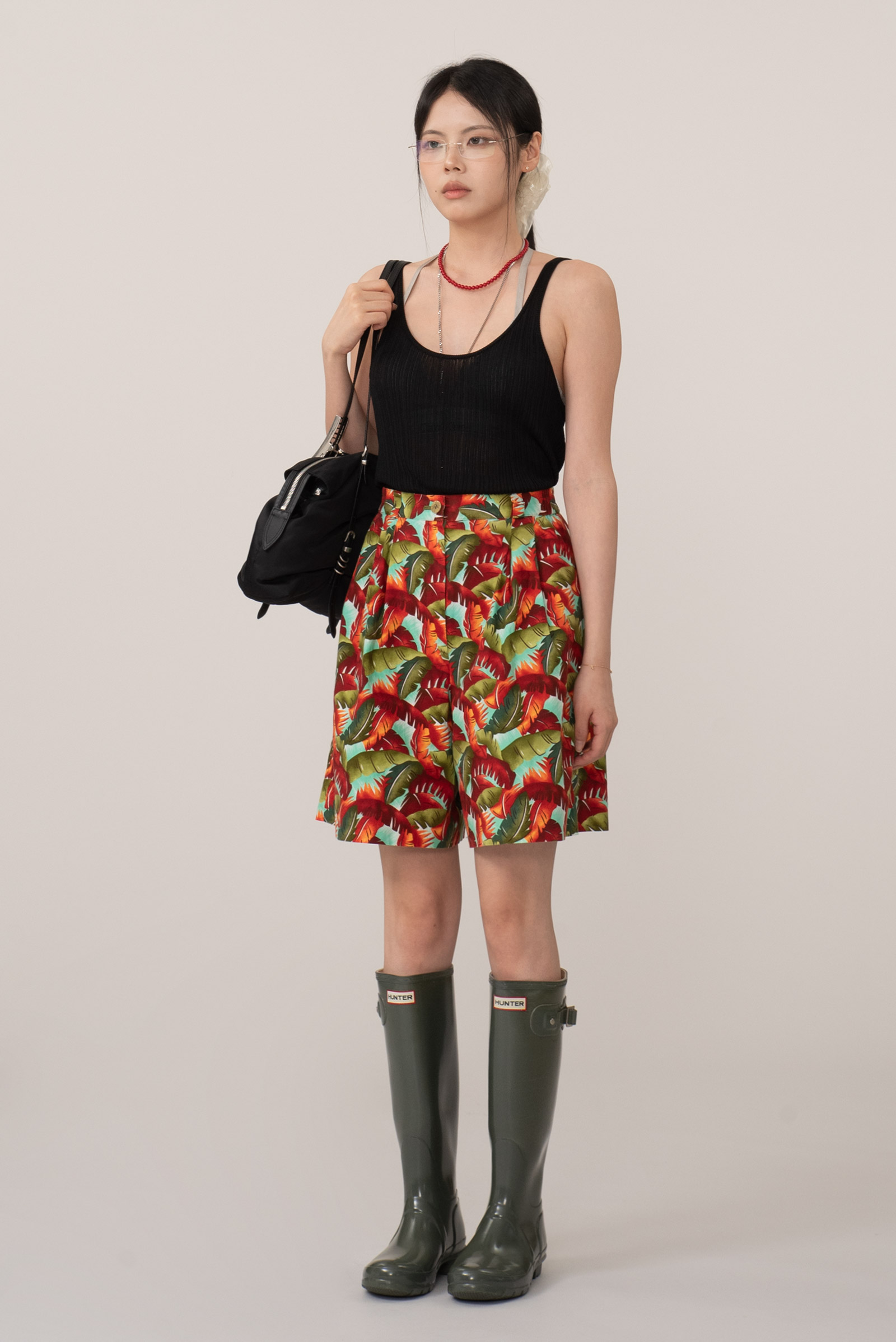 하이웨이스트로 안정적인 착용감, 허벅지 중간 정도의 기장감으로 활동적이면서도 여유 있는 A라인 실루엣, 핀턱 주름 덕분에 라인이 자연스럽고 클래식하답니다.