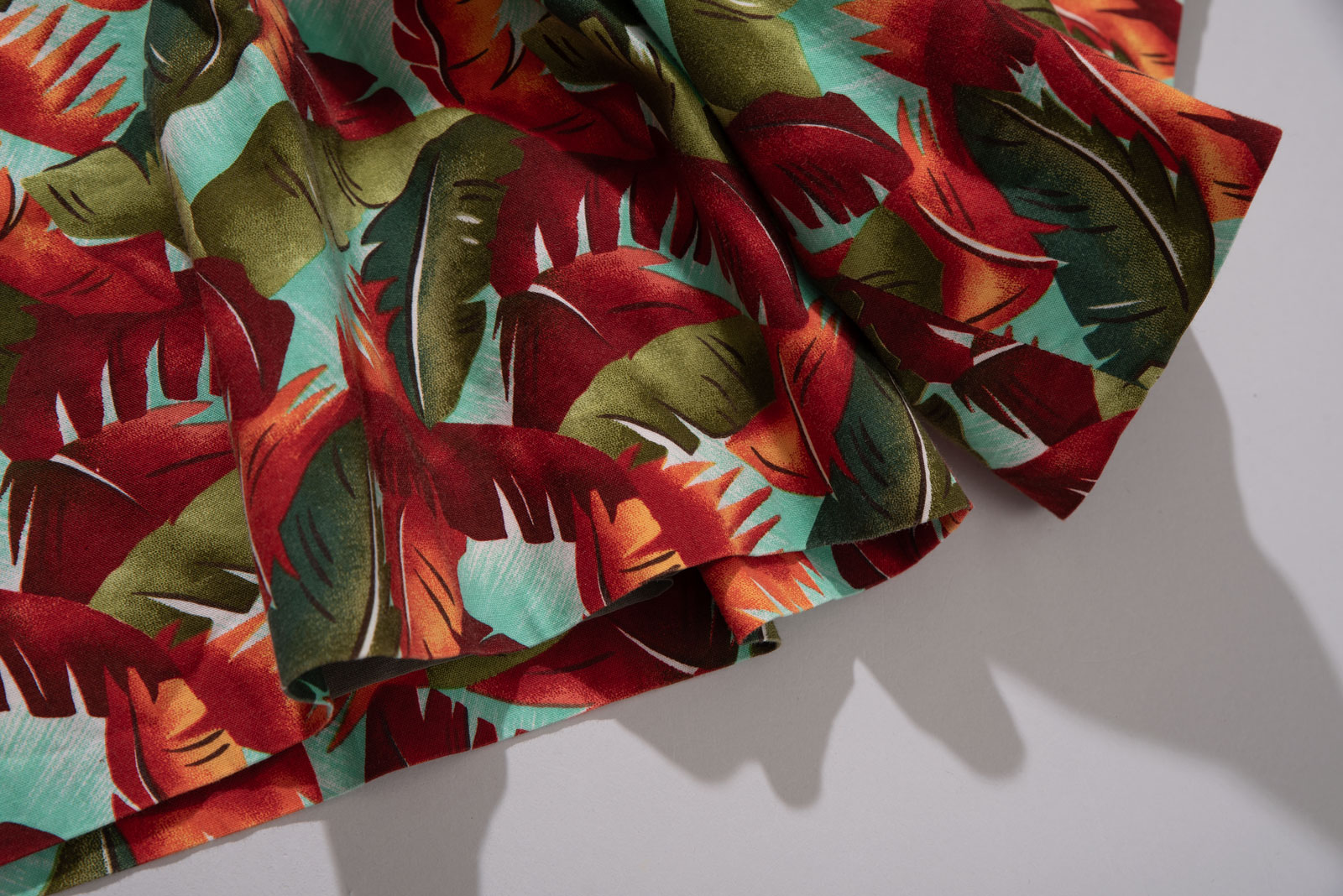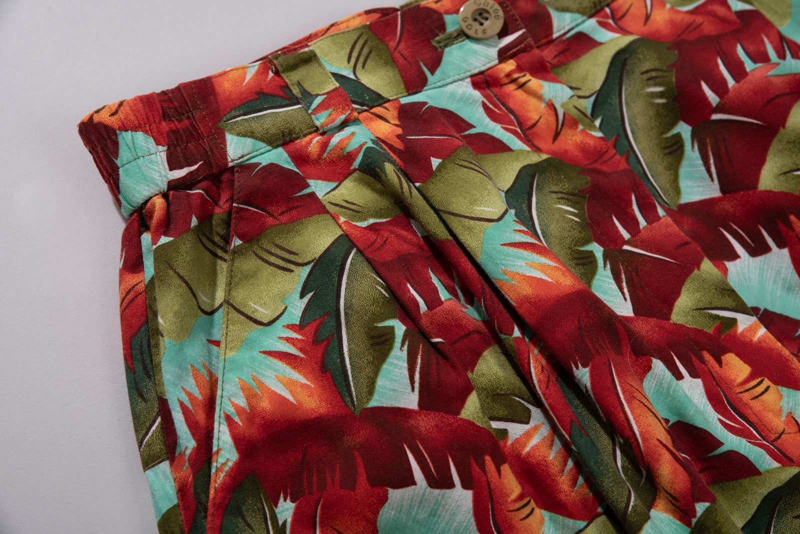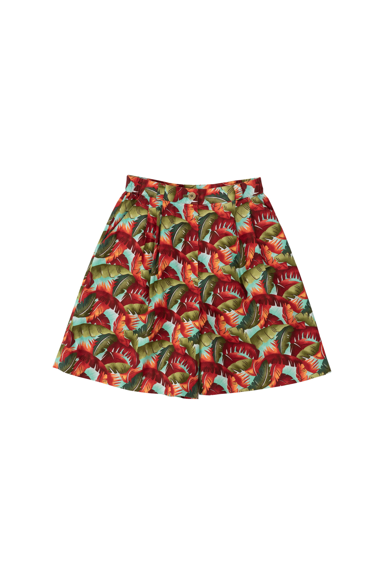 선명한 컬러감의 리프 패턴, 면 100% 원단에 폴리 안감이 들어가 있어 비침 걱정 없이 쾌적하게 착용 가능하며 섬세한 버튼 디테일과 컬러 매치도 고급스럽게 완성되어 있어요.