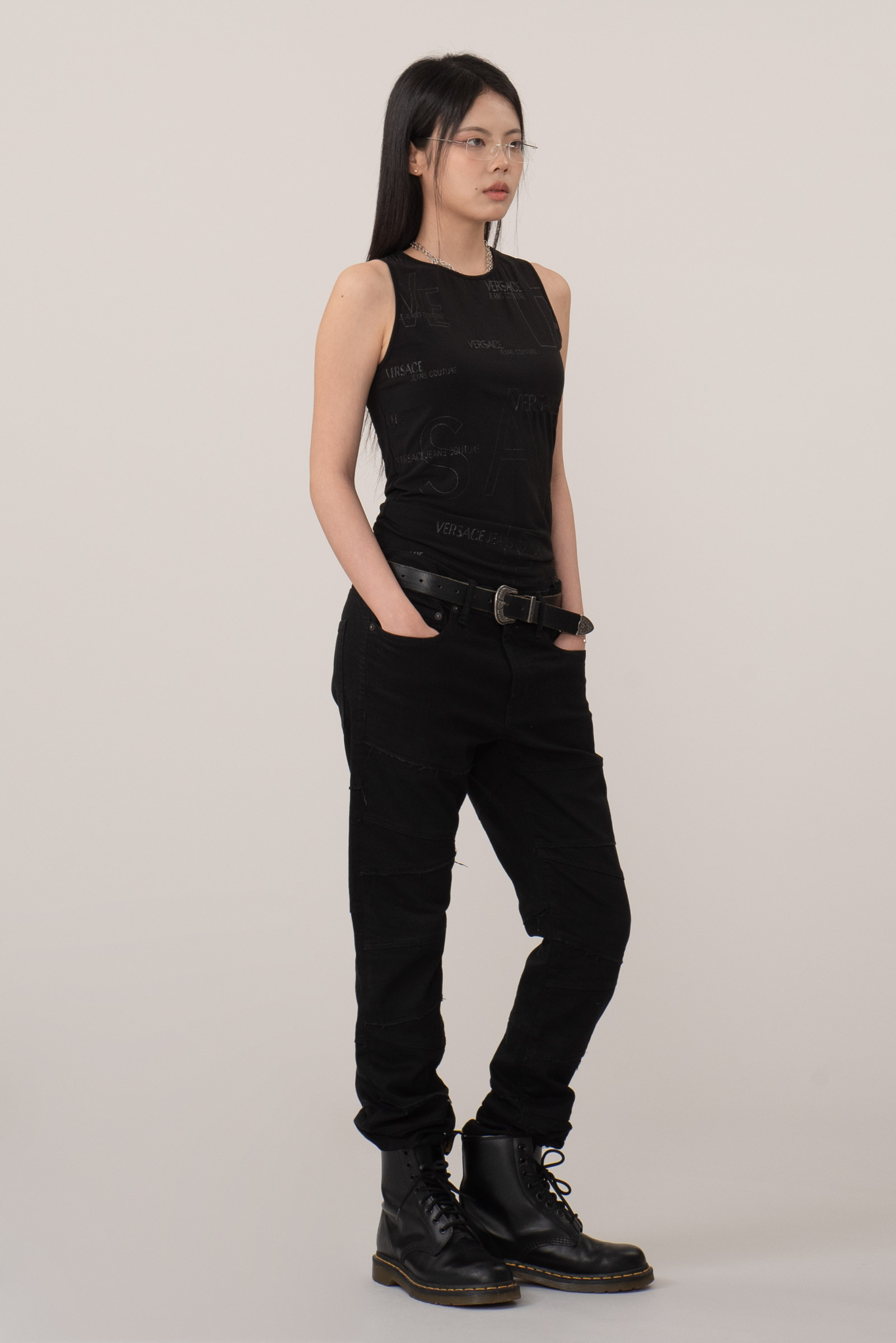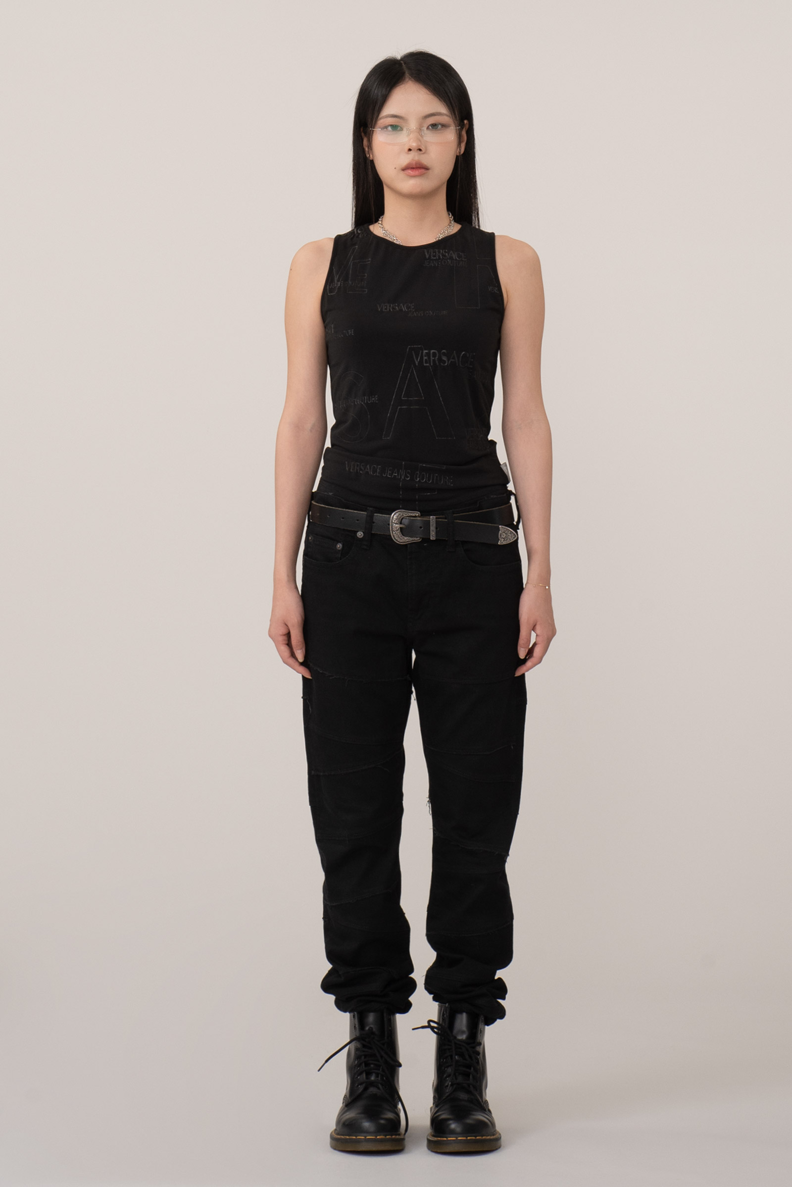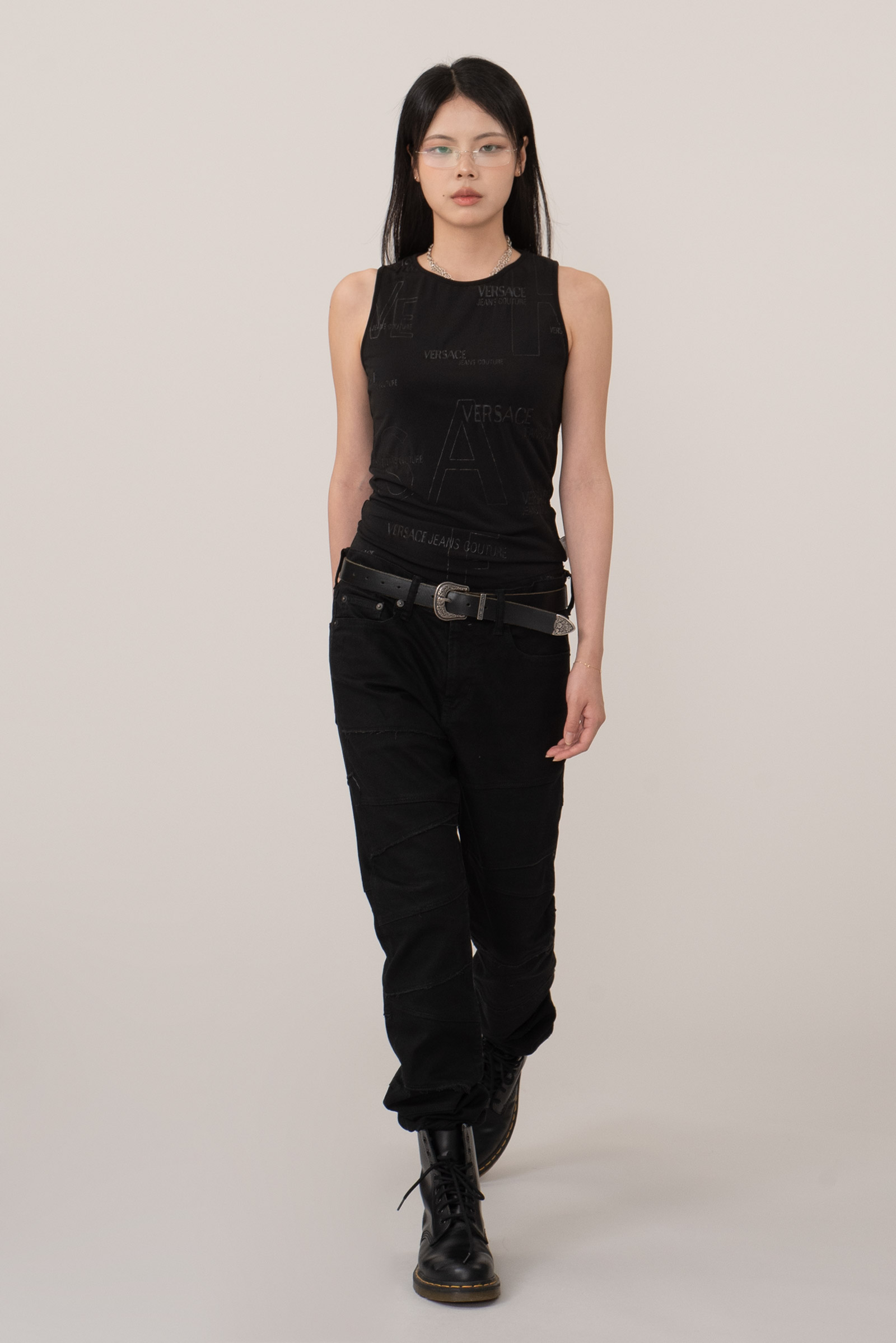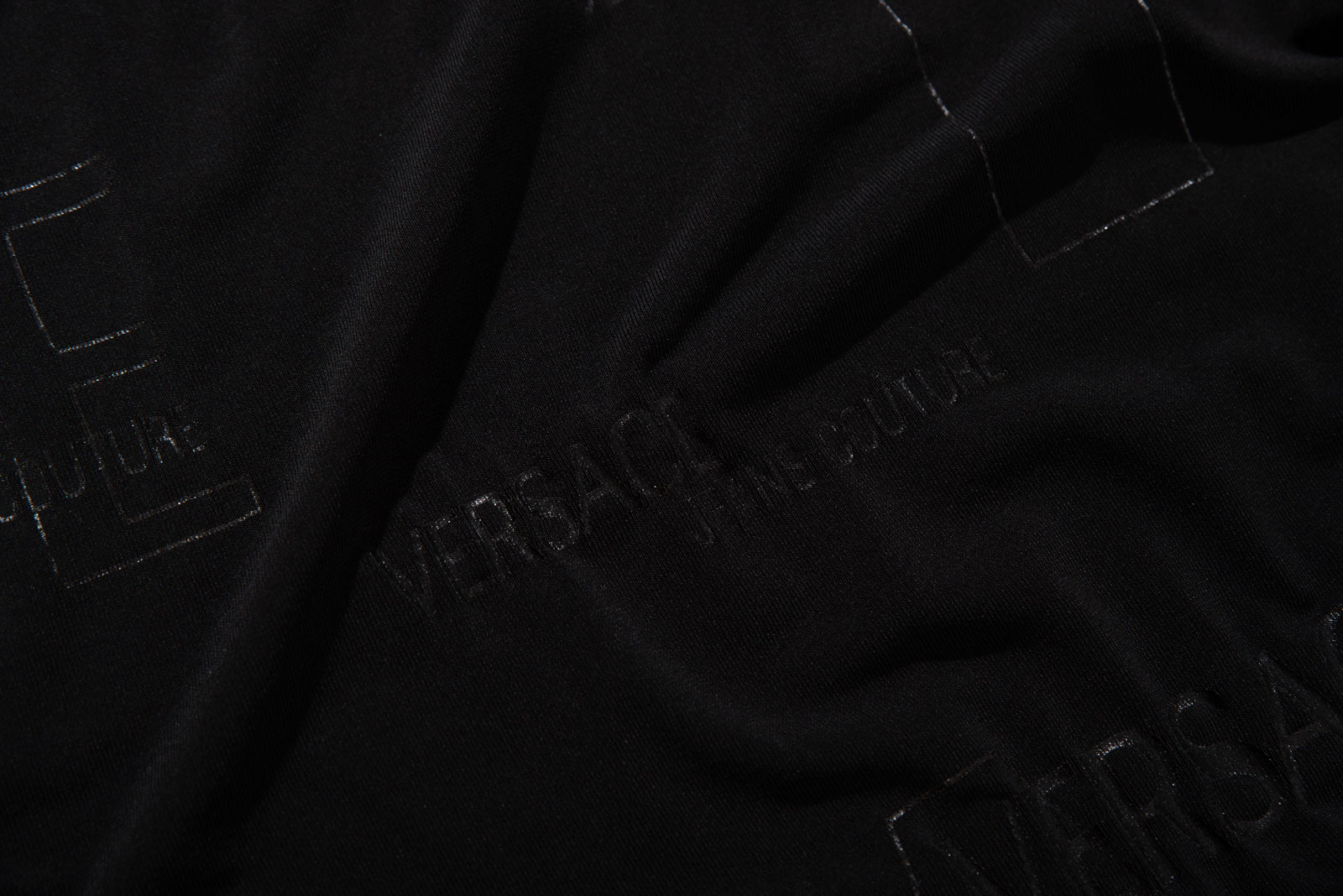 광택 없이 매트한 블랙 바탕 위에 베르사체 진 꾸뛰르 로고가 다양한 크기로 음각 프린트처럼 새겨져 있어 은은한 반사광을 주어 포인트 됩니다.
