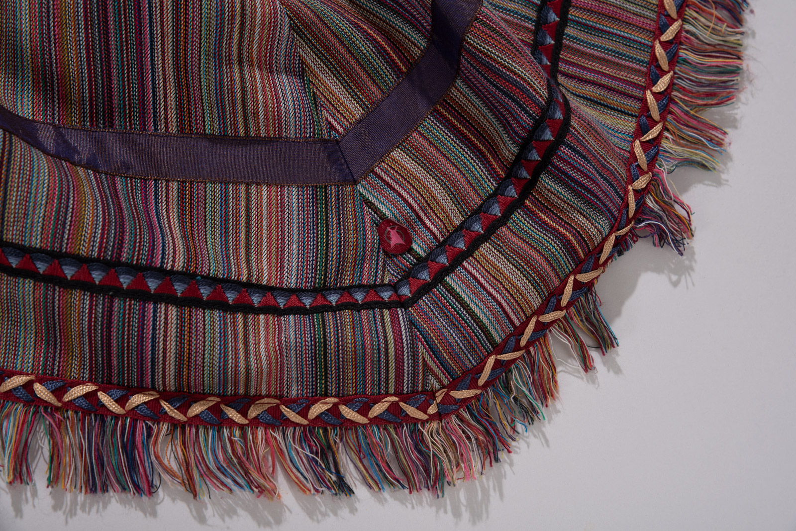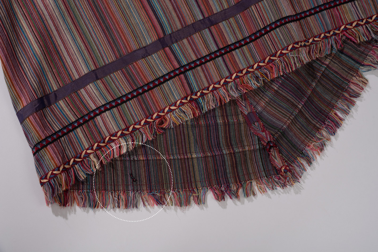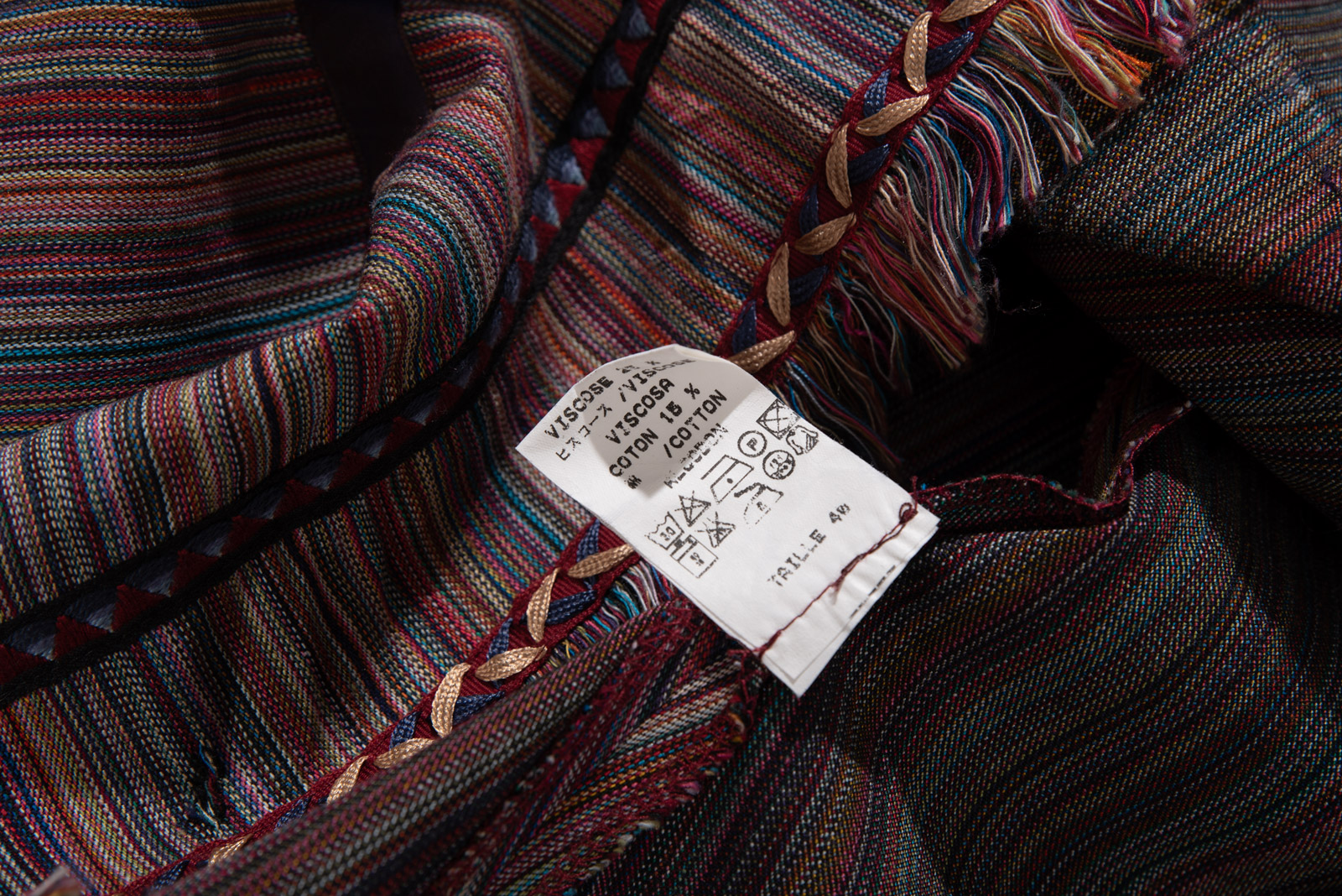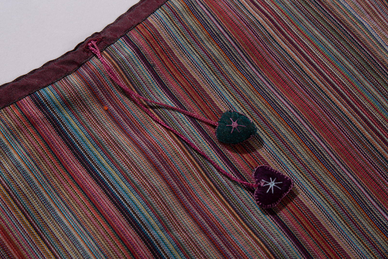 이번 스트라이프 스커트는 다양한 컬러가 섬세하게 직조된 텍스처, 프린지 디테일, 그리고 하트 모티브의 버튼과 비대칭 밑단으로 90년대 유럽 언더그라운드와 보헤미안 감성을 그대로 담고 있네요.