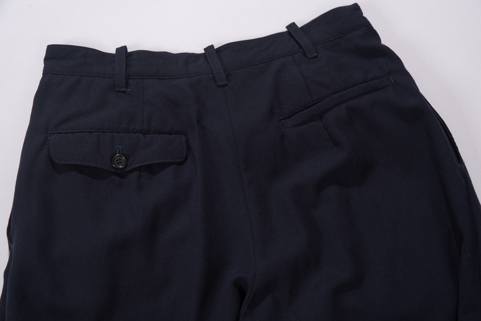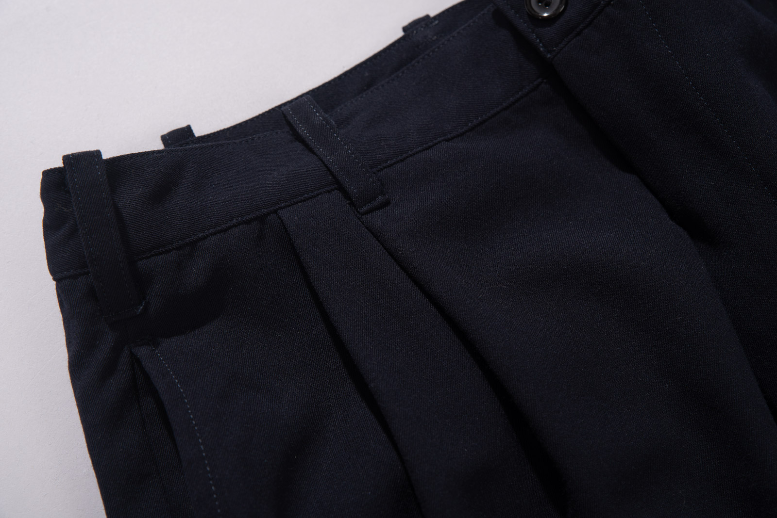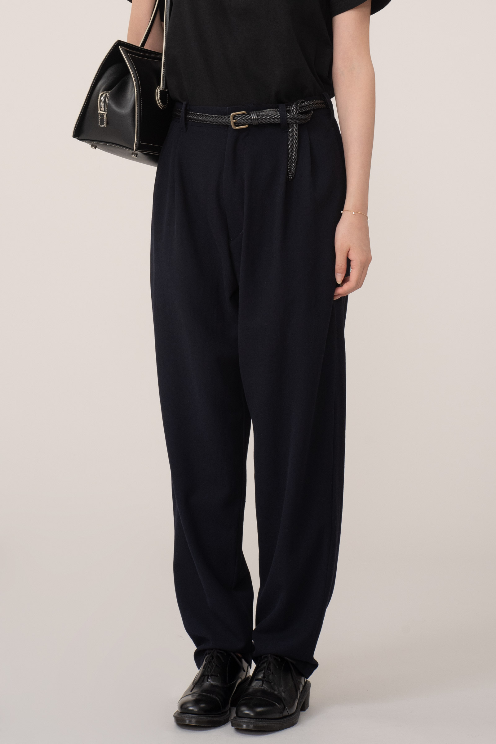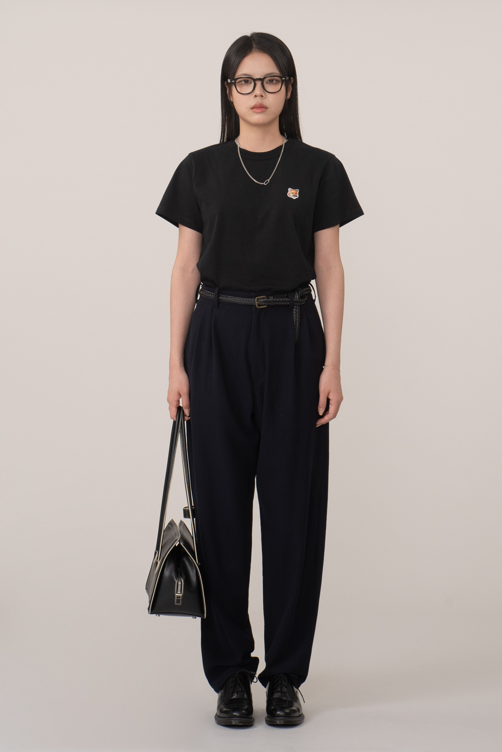 이번 제품은 앞쪽에 깊이 잡힌 투턱 디테일, 넉넉하게 떨어지는 힙과 허벅지, 자연스럽게 좁아지는 테이퍼드 라인으로 완성된 실루엣이 특징이랍니다.