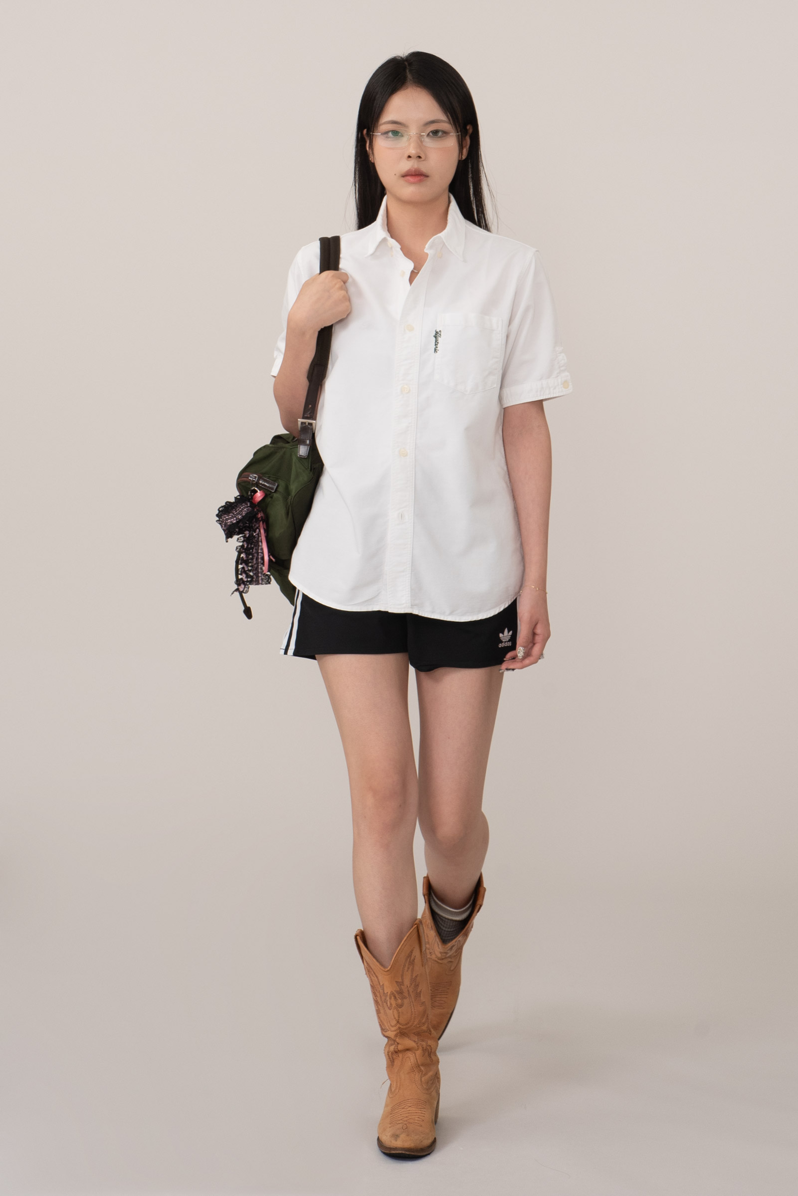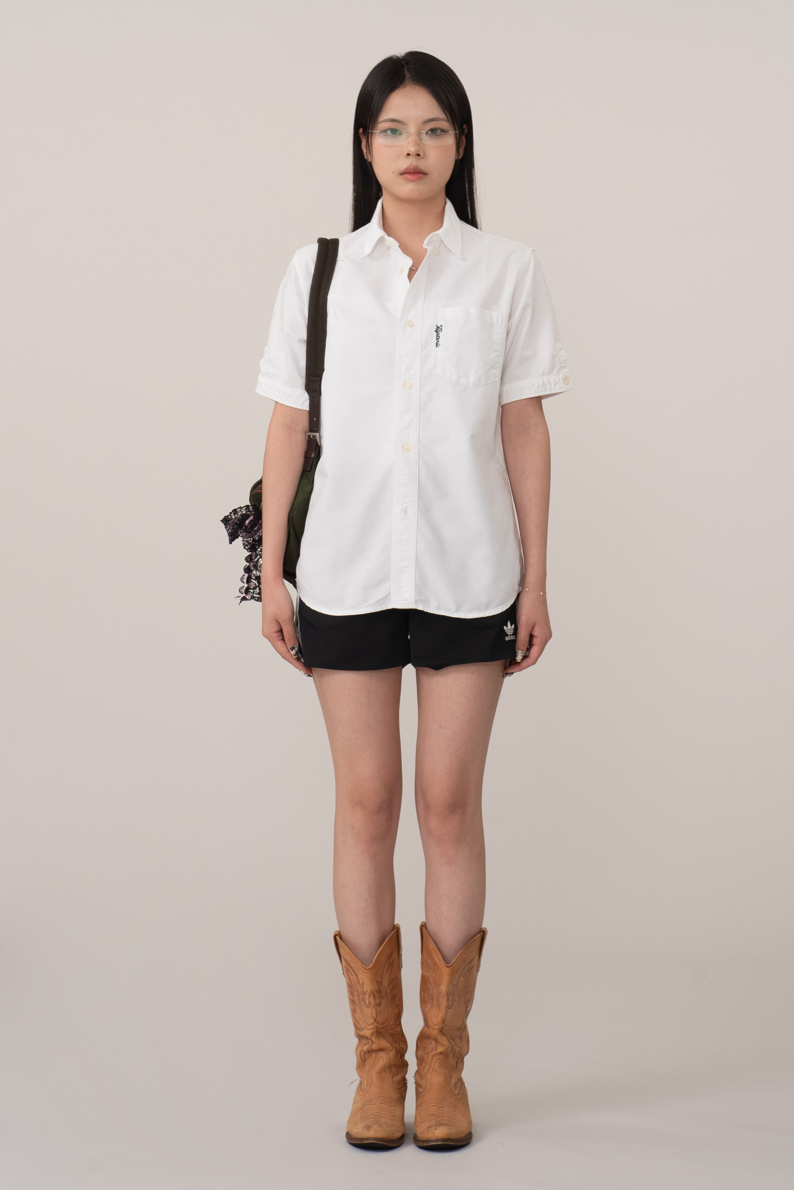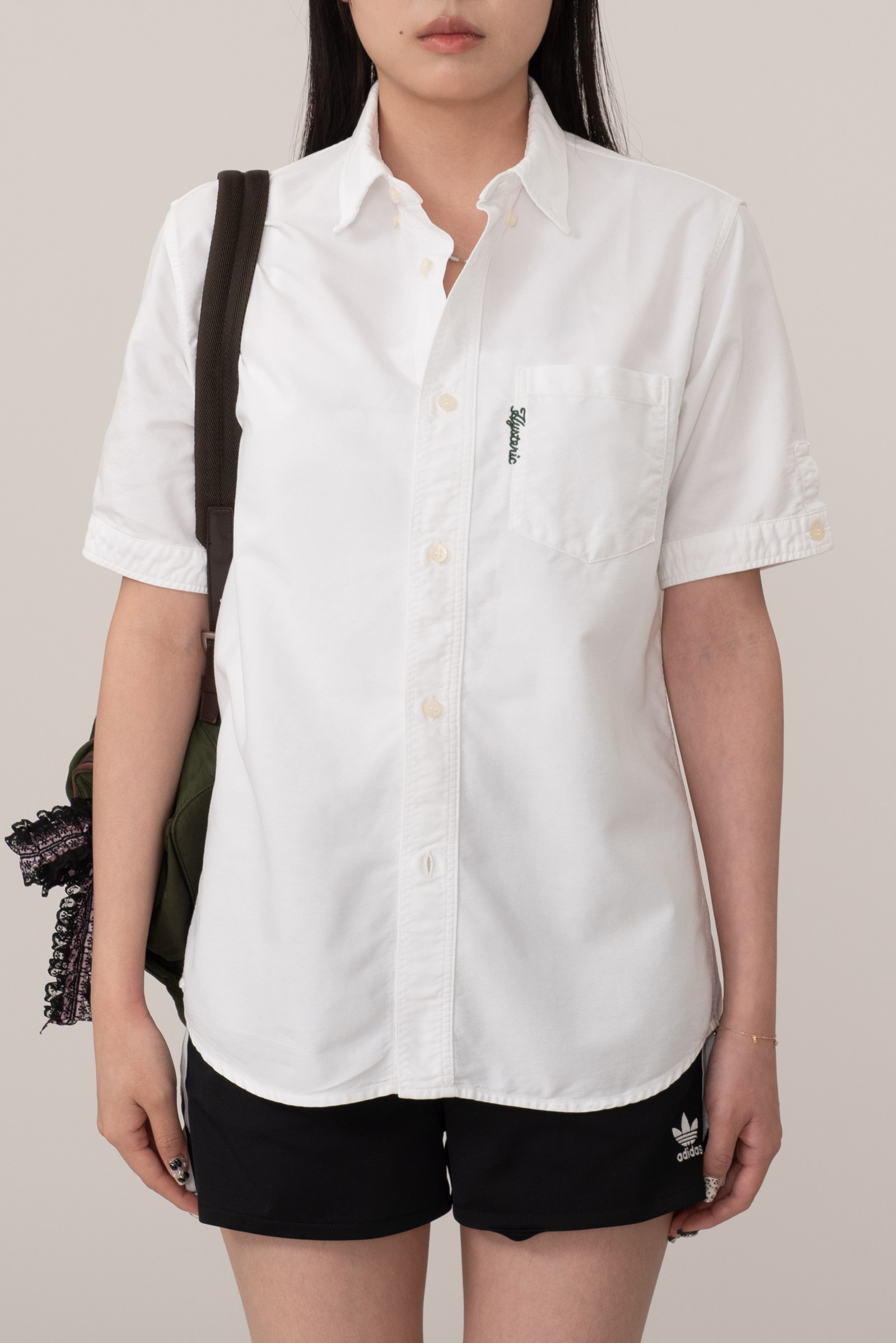 오늘 소개해 드리는 제품은 반소매 버튼다운 셔츠로, 깨끗하고 선명한 화이트 컬러와 더불어 프론트 포켓 위에 다크 그린 자수 로고, 셀비지 마감 등 반항적이고 개성 있는 기존의 히스테릭글래머와는 다르게 단정하고 심플한 옥스포드 셔츠인데요.
