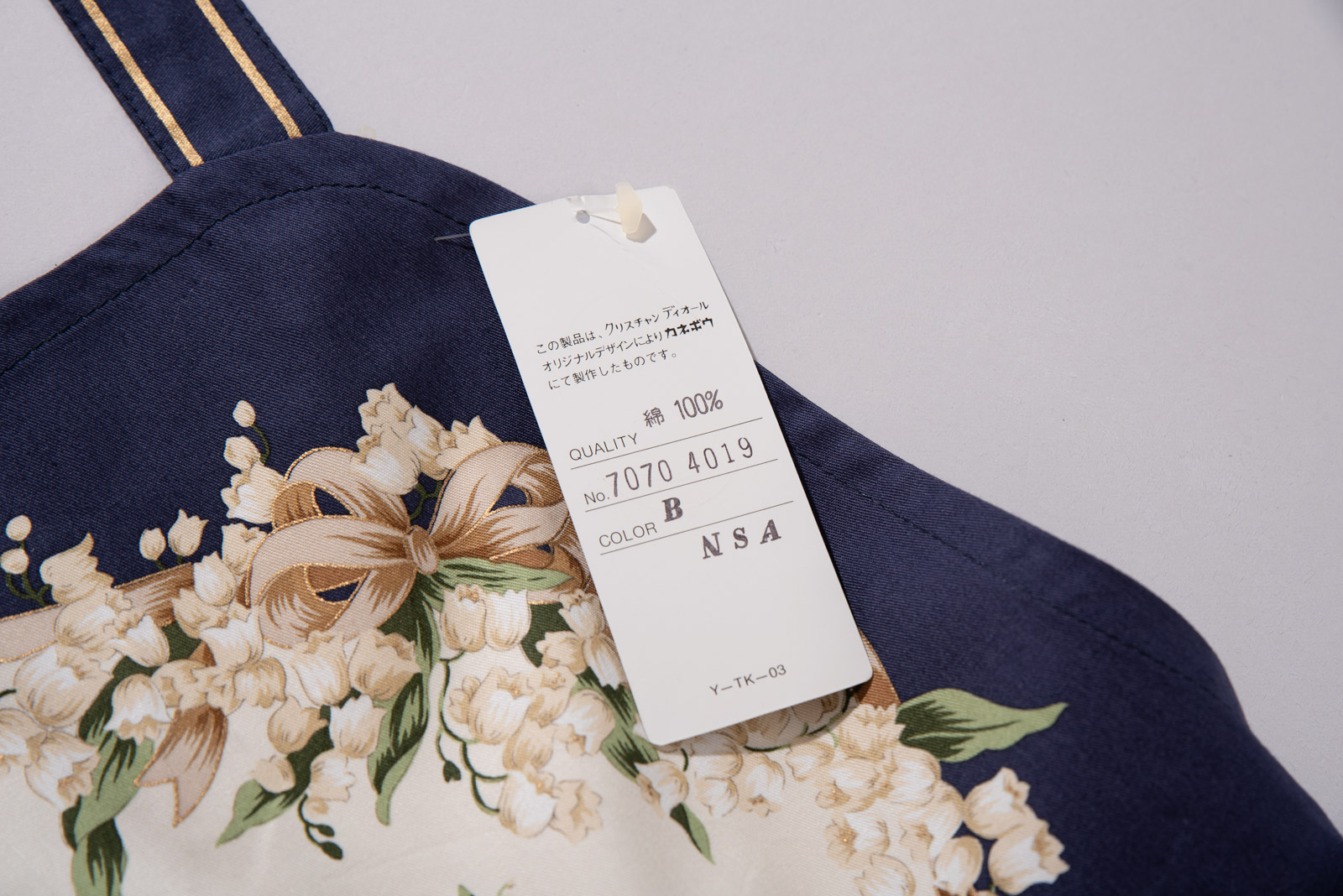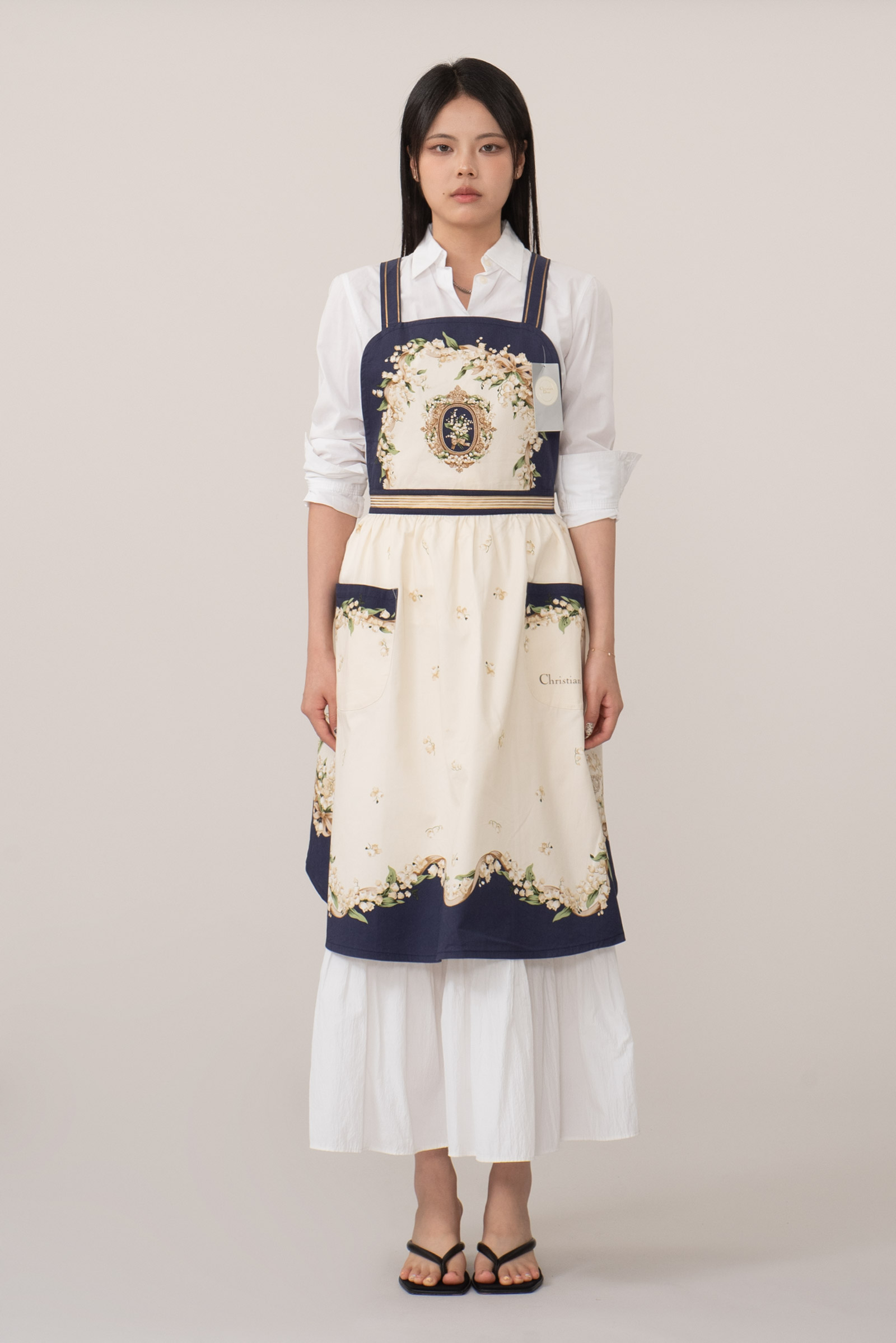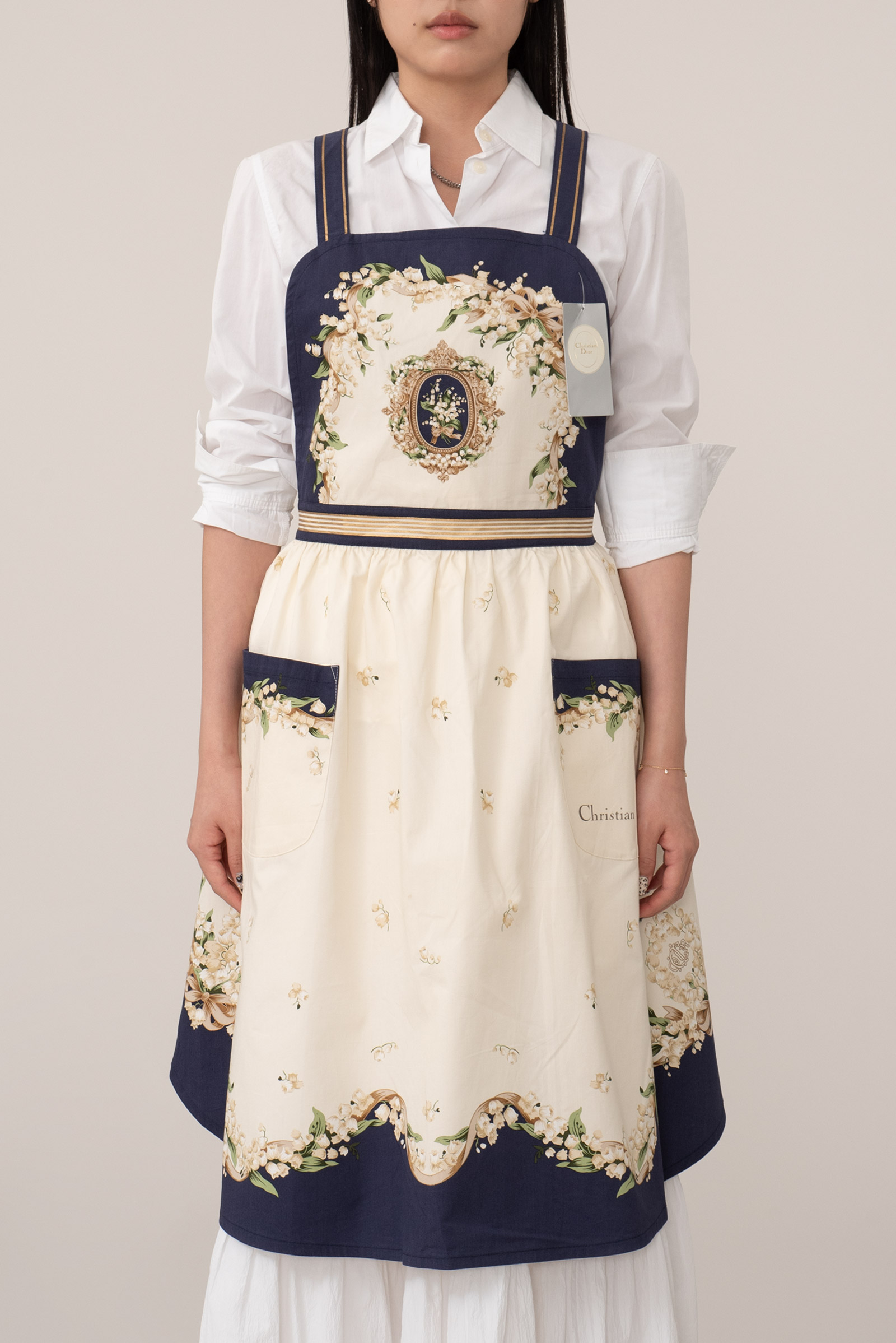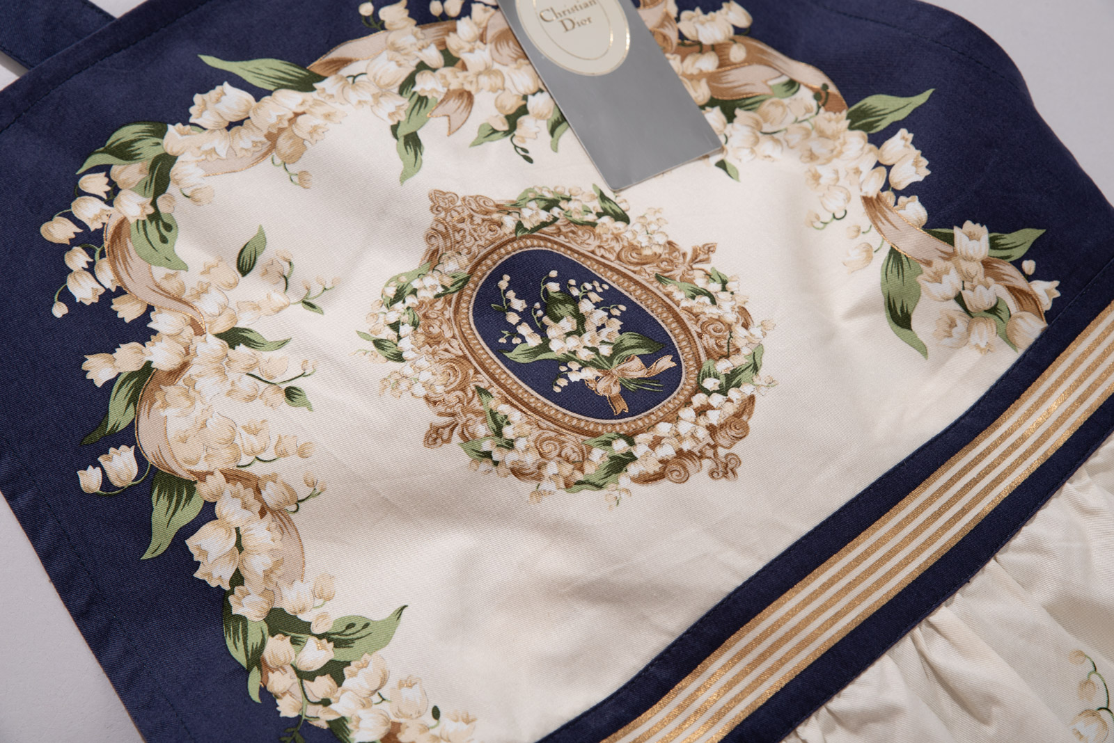 ▫comment - 크리스찬 디올의 빈티지 앞치마로, 클래식한 플로럴 패턴과 네이비/크림 투톤이 조화로운 피스입니다.