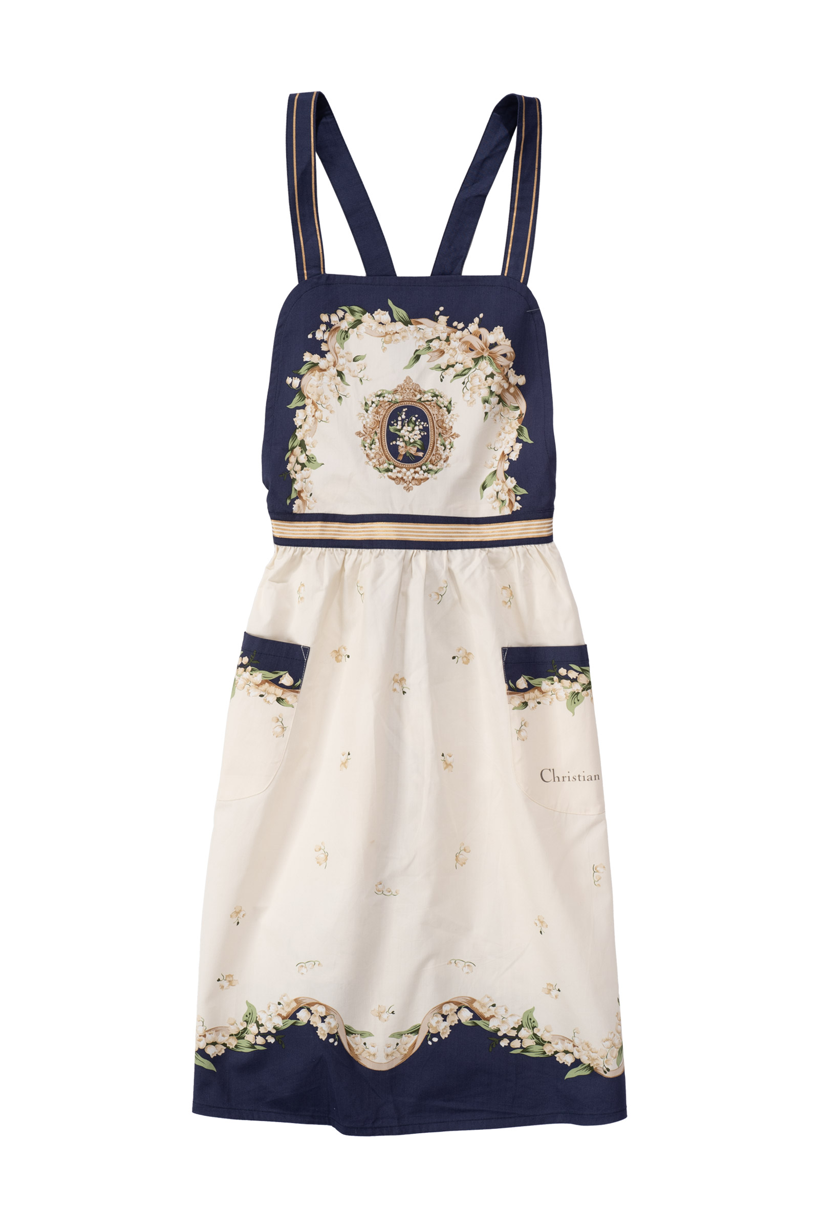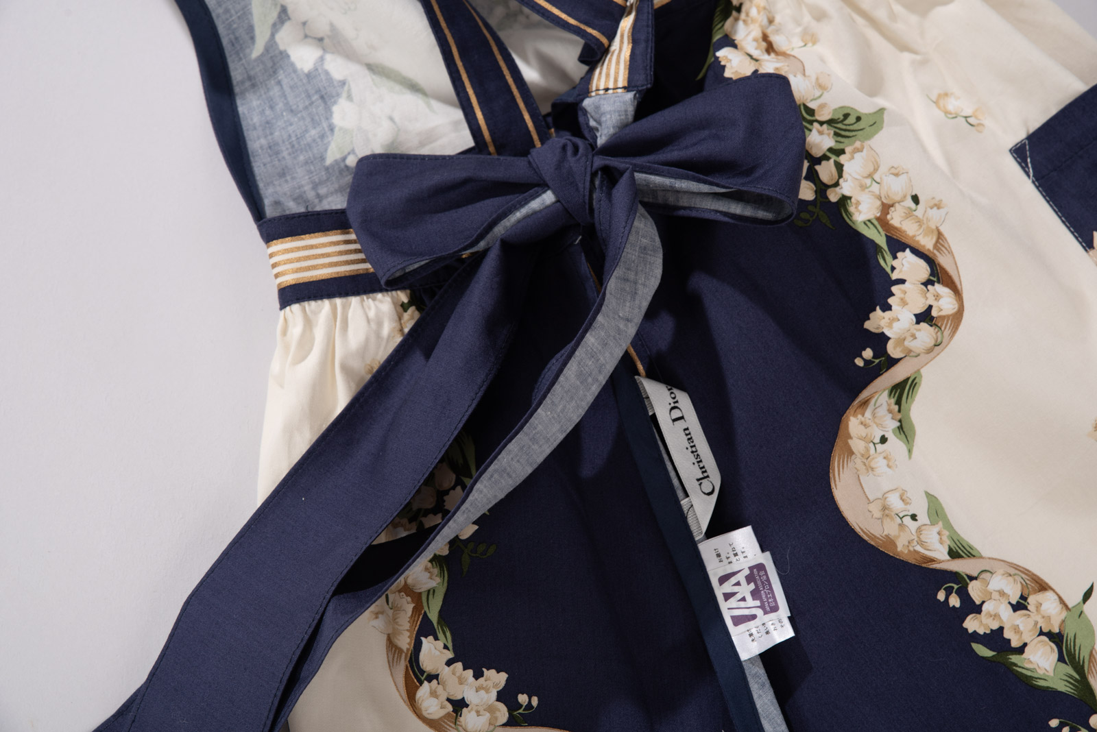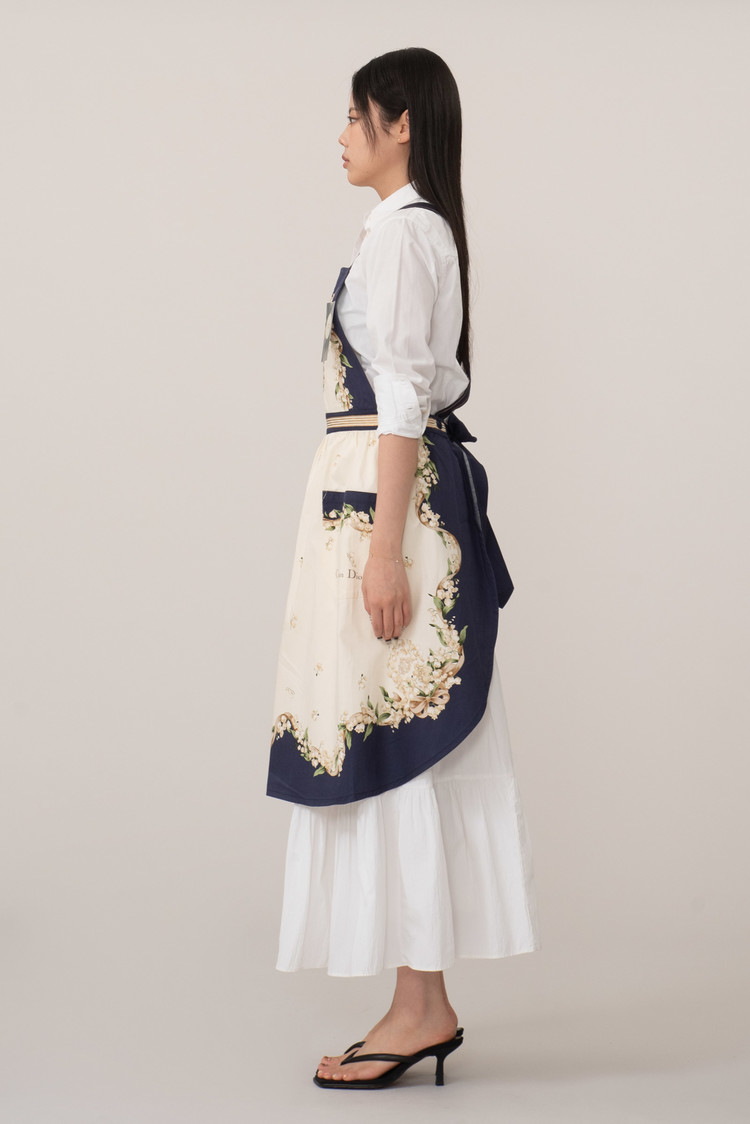 ▫comment - 크리스찬 디올의 빈티지 앞치마로, 클래식한 플로럴 패턴과 네이비/크림 투톤이 조화로운 피스입니다.
