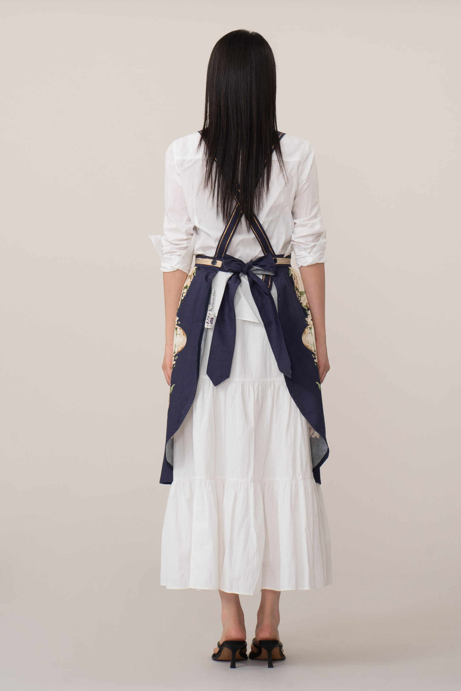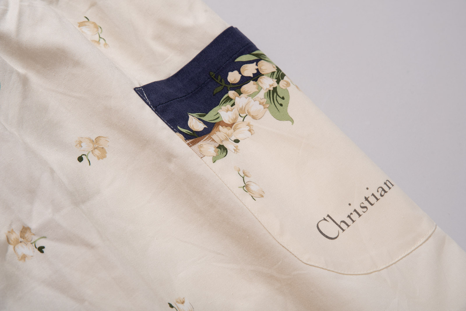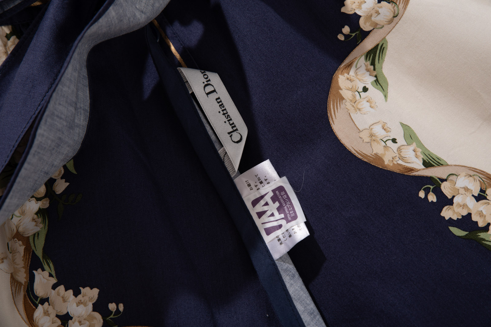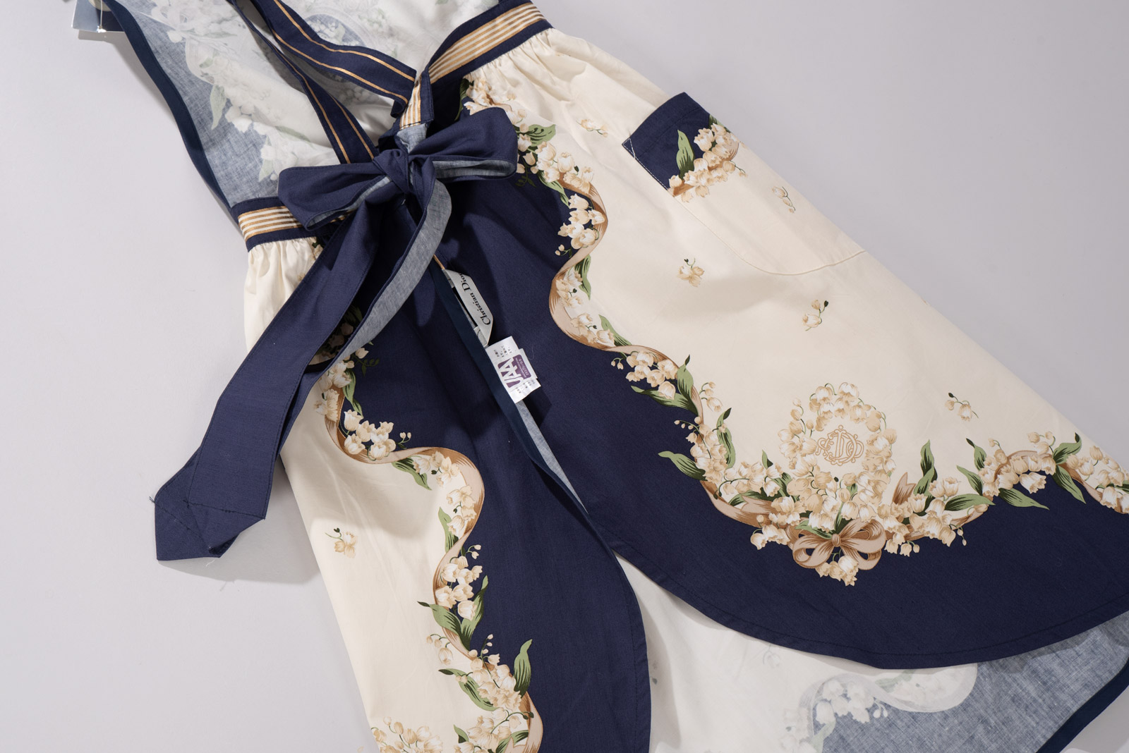 ▫comment - 크리스찬 디올의 빈티지 앞치마로, 클래식한 플로럴 패턴과 네이비/크림 투톤이 조화로운 피스입니다.