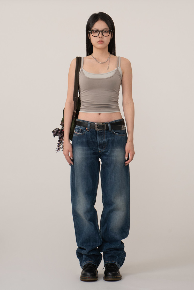 와이드 핏 진으로 디젤 특유의 스트리트 무드와 이탈리아 데님 브랜드로서의 감각이 모두 잘 드러나는 피스입니다.