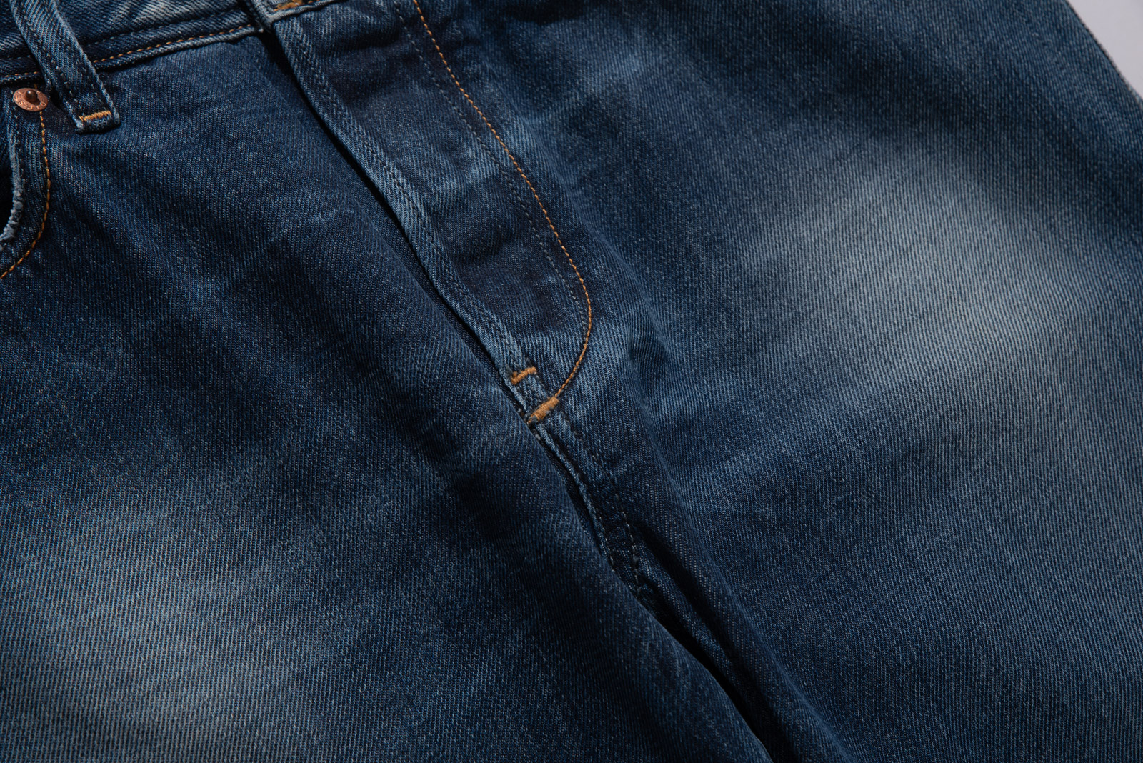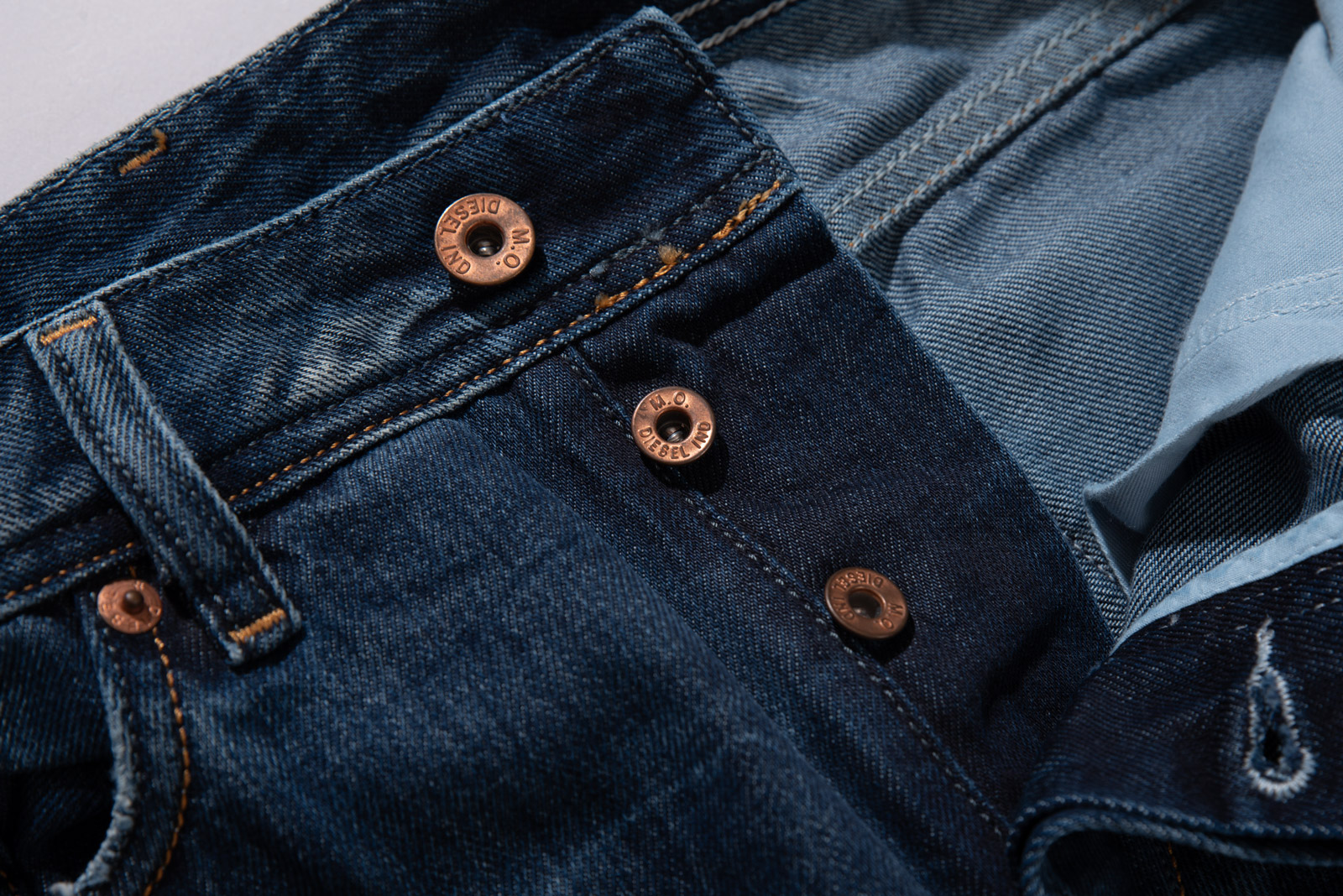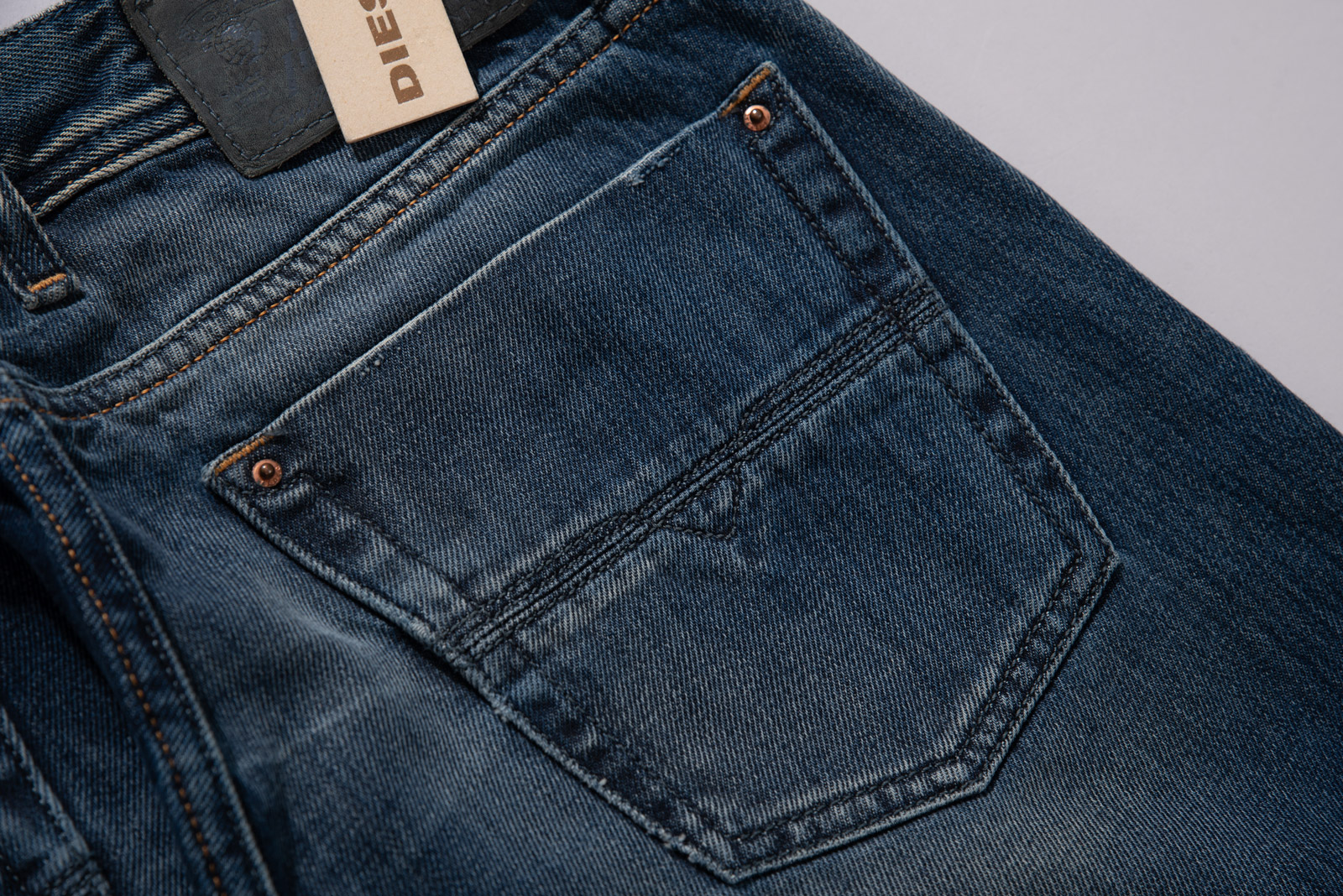 중청에 가까운 컬러와 자연스러운 워싱, 그리고 2000년대 유행했던 벌키하고 루즈한 스트레이트 실루엣이 특징이며 프론트 리벳, 버튼 플라이, 백 포켓의 입체적인 스티치 등 당시 디젤 특유의 디테일이 그대로 살아있네요.