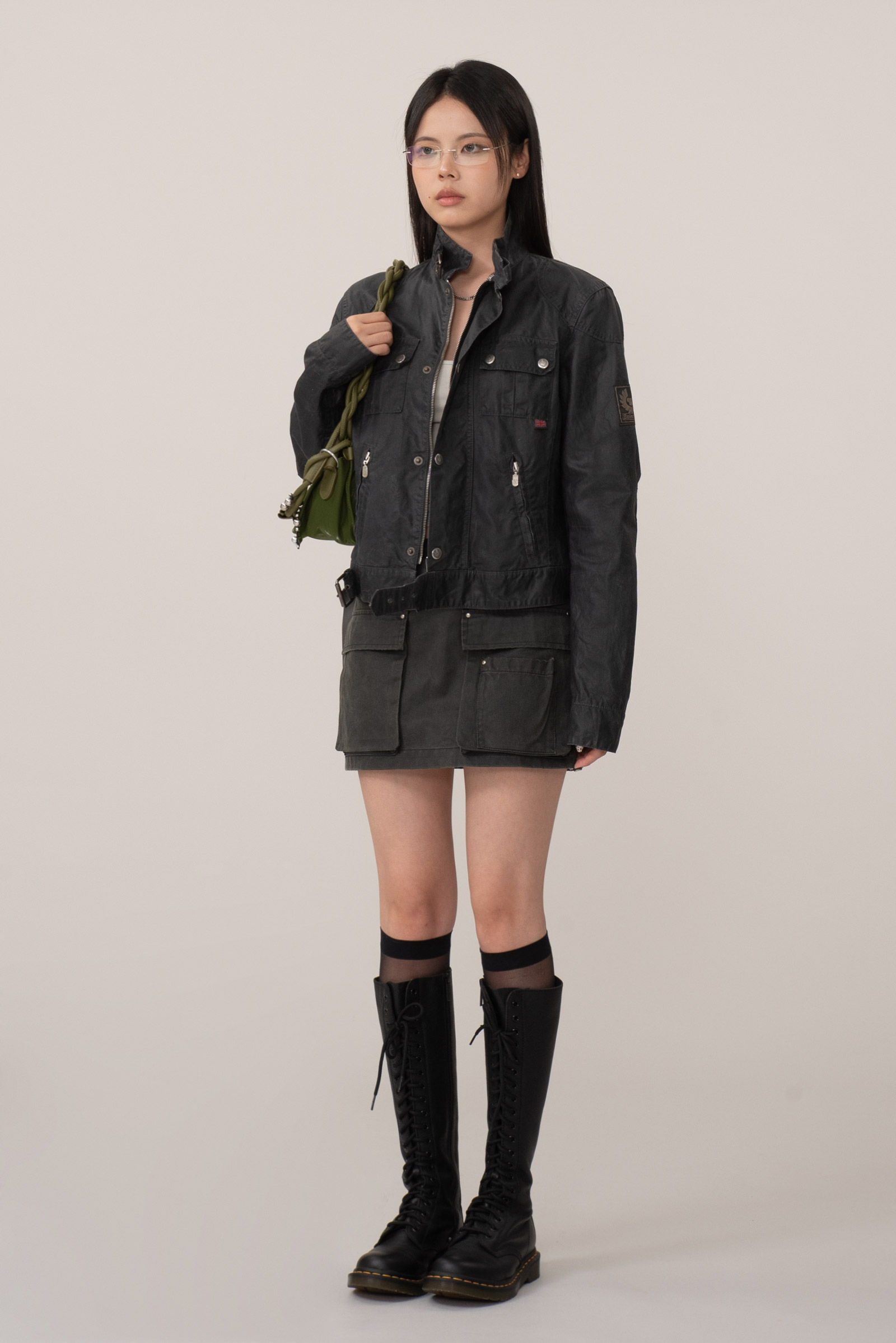 클래식한 바이커 재킷 실루엣이 미니 스커트나 부츠와도 조화롭게 어울려 데일리한 연출도 좋고 실제 오도바이 착용 시 바람막이와 아우터로서 충분히 활용할 수 있어 쓰임이 다양합니다.