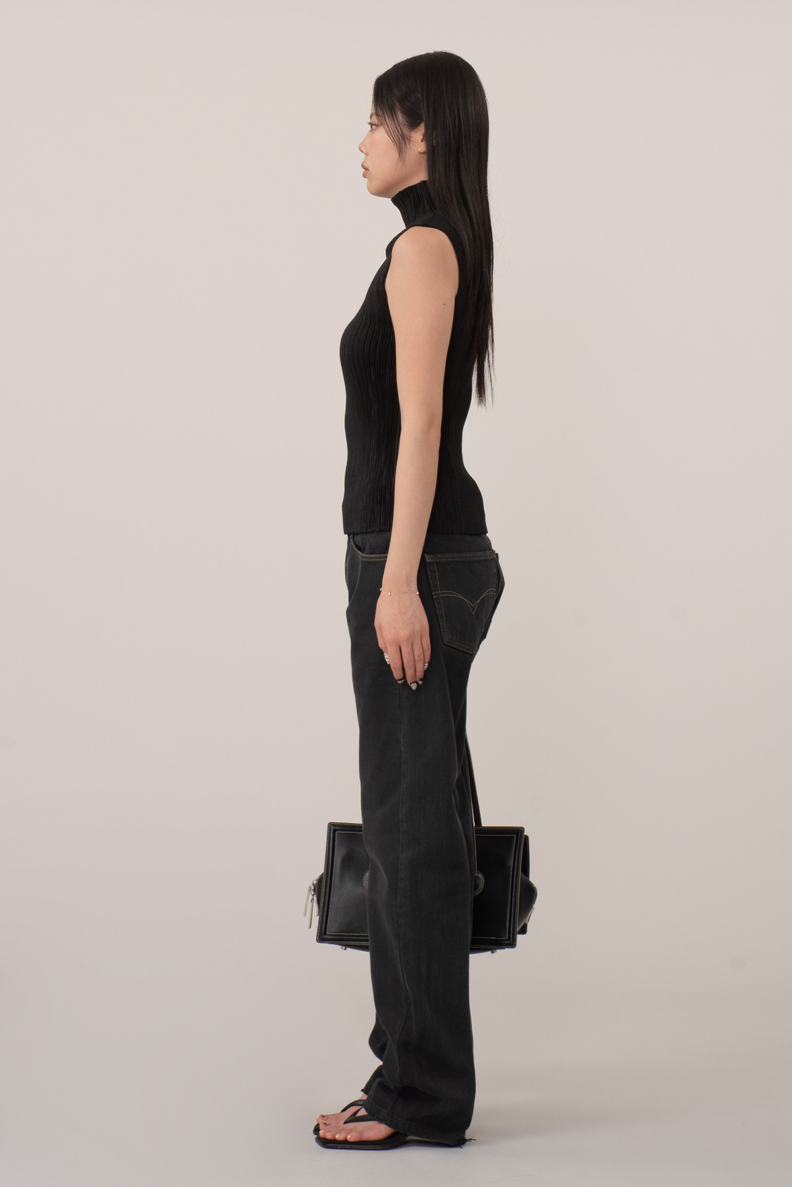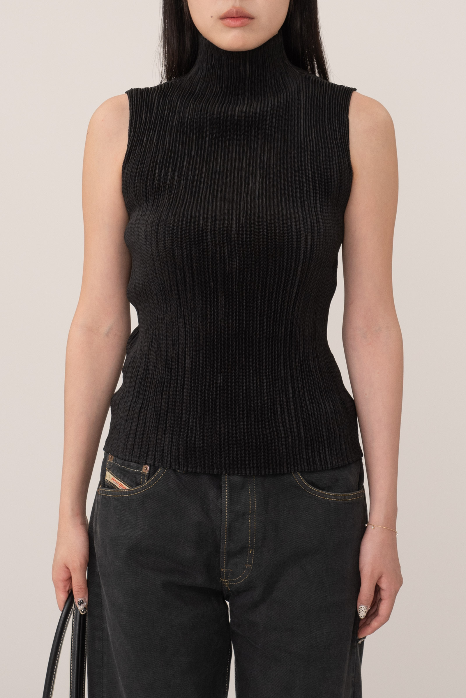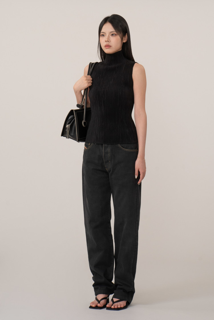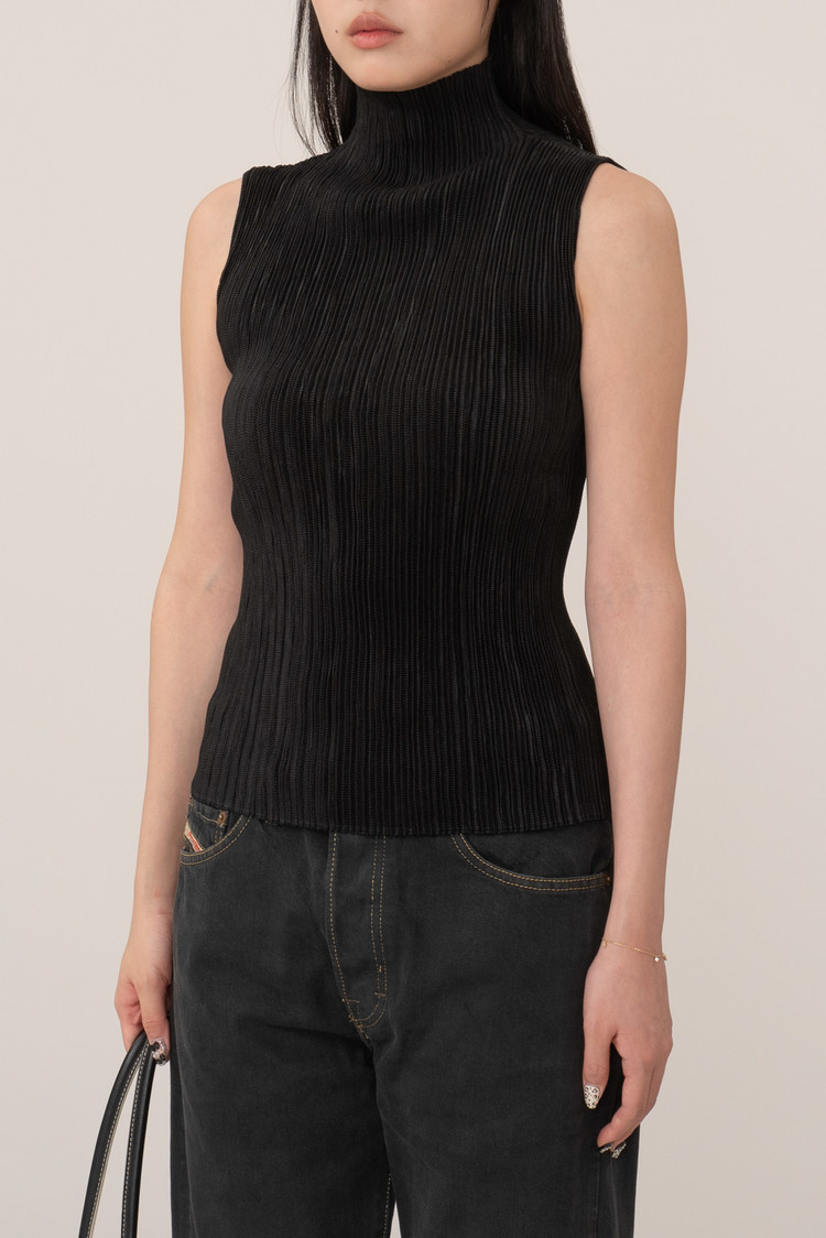 블랙 컬러의 하이넥 플리츠 니트 탑이라 클래식하면서도 미니멀해 단독 혹은 레이어드 모두 활용도가 높고 오랜 시간 변형 없이 입을 수 있다는 점도 장점이랍니다.