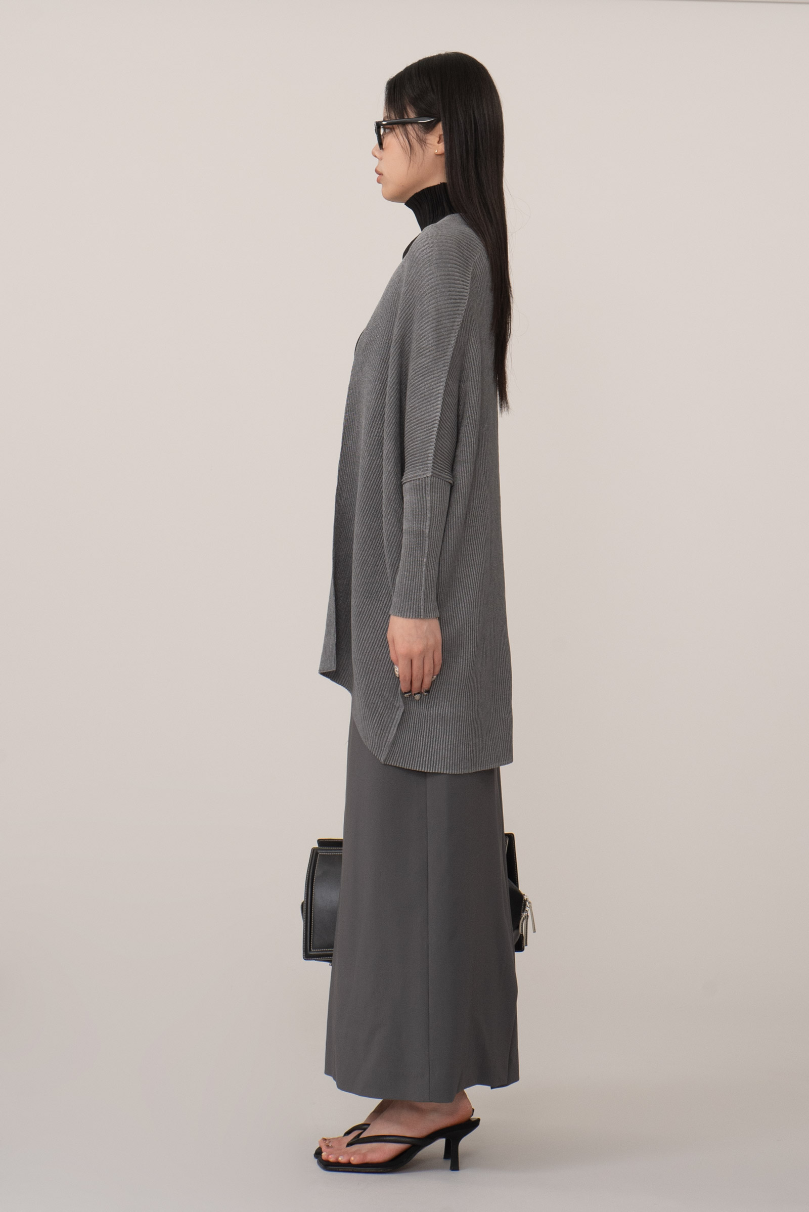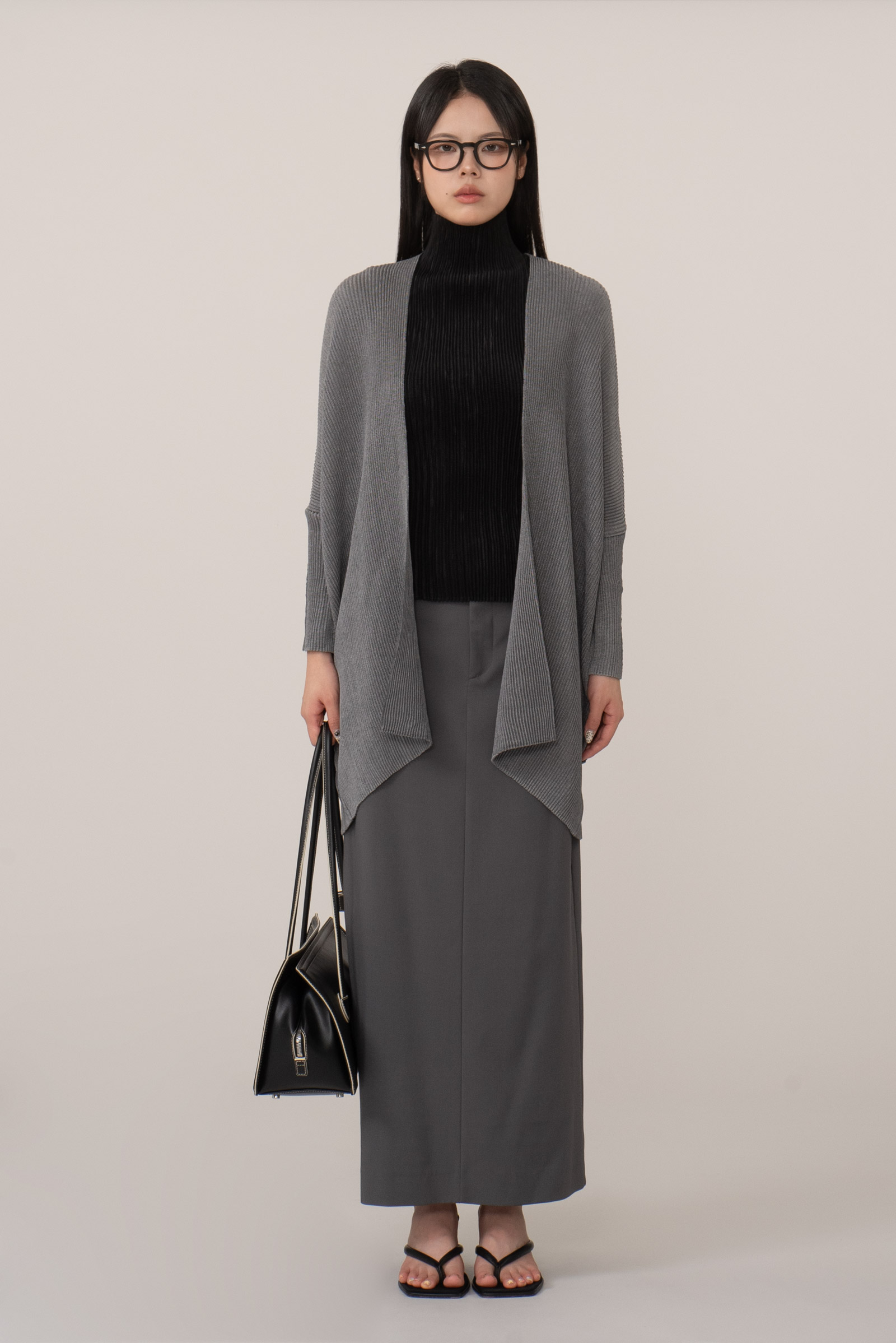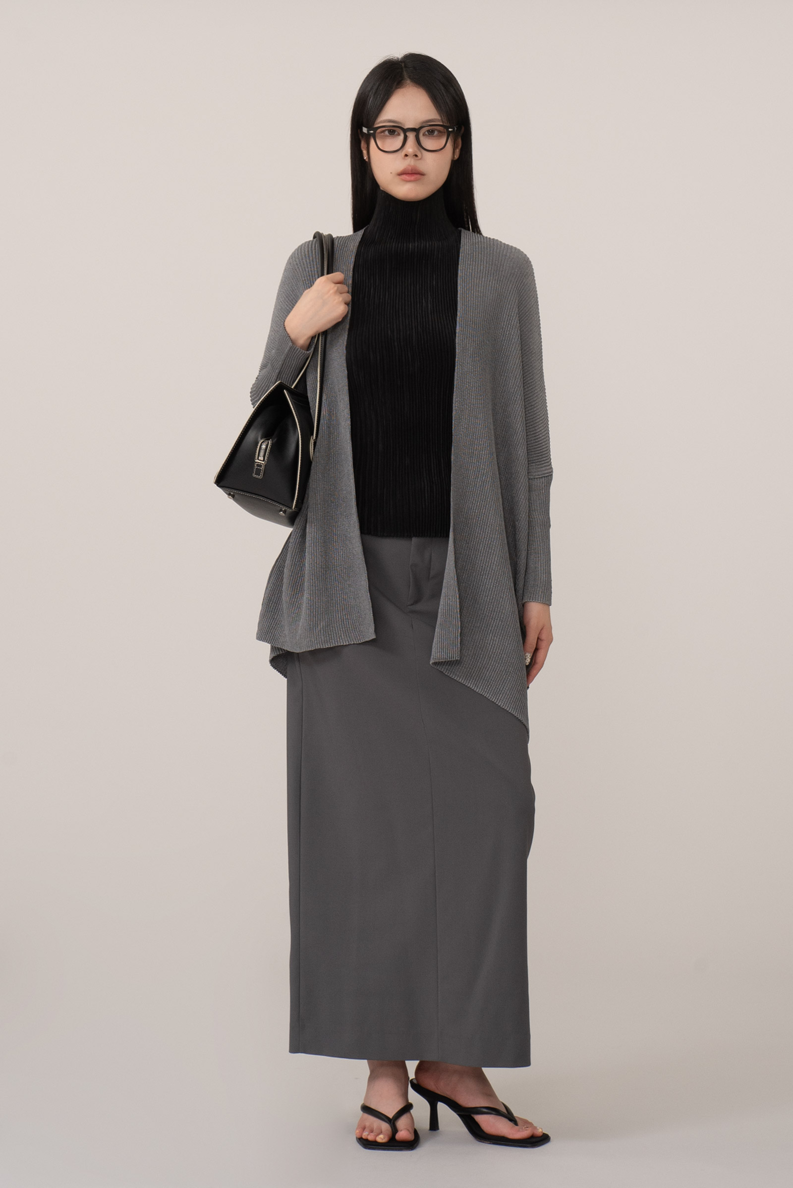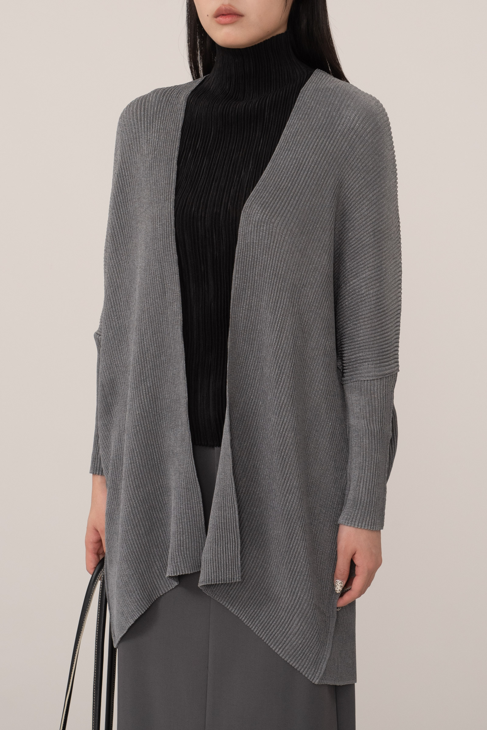 그레이 컬러의 플리츠 가디건이라 클래식하면서도 미니멀해 단독 혹은 레이어드 모두 활용도가 높고 오랜 시간 변형 없이 입을 수 있다는 점도 장점이랍니다.