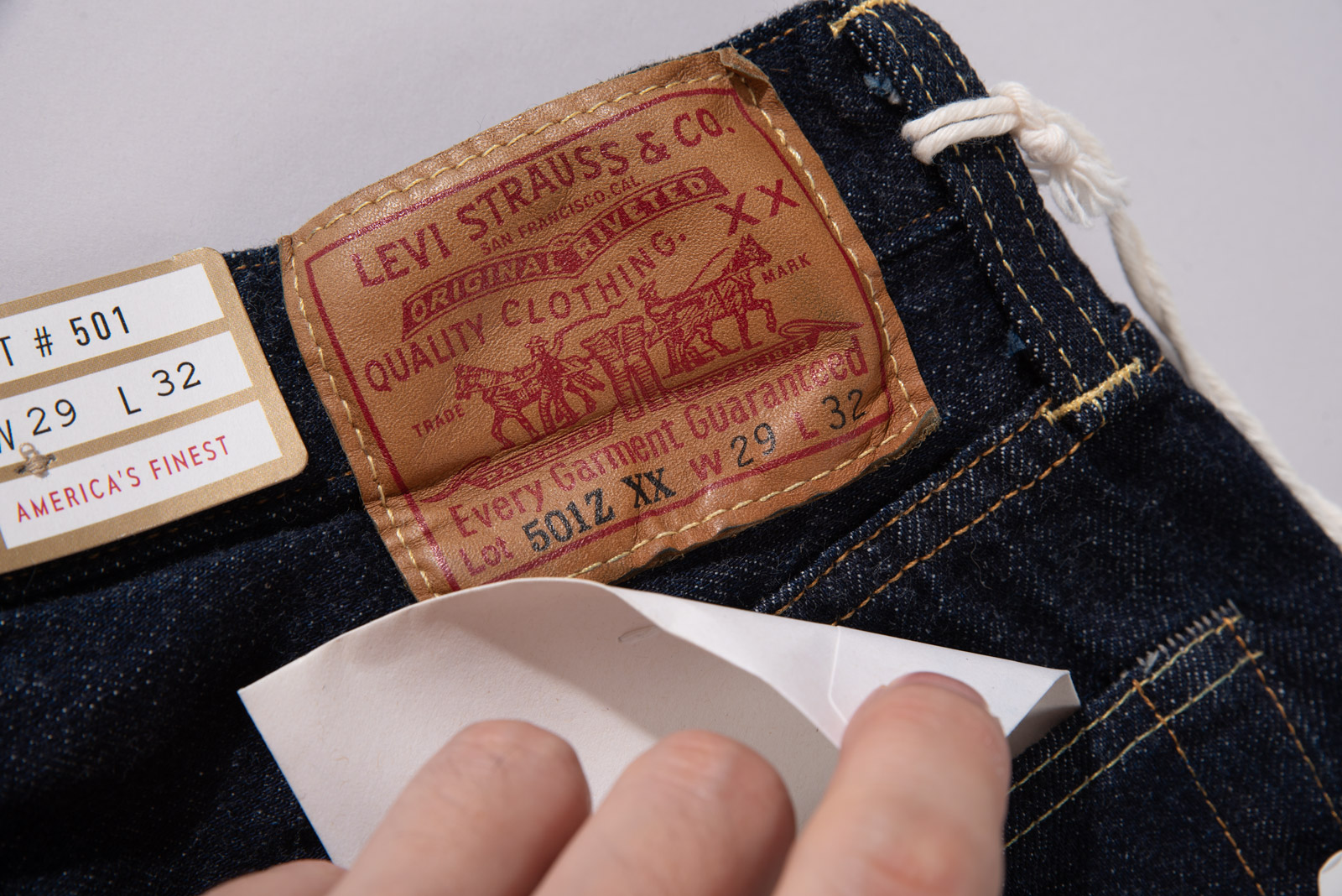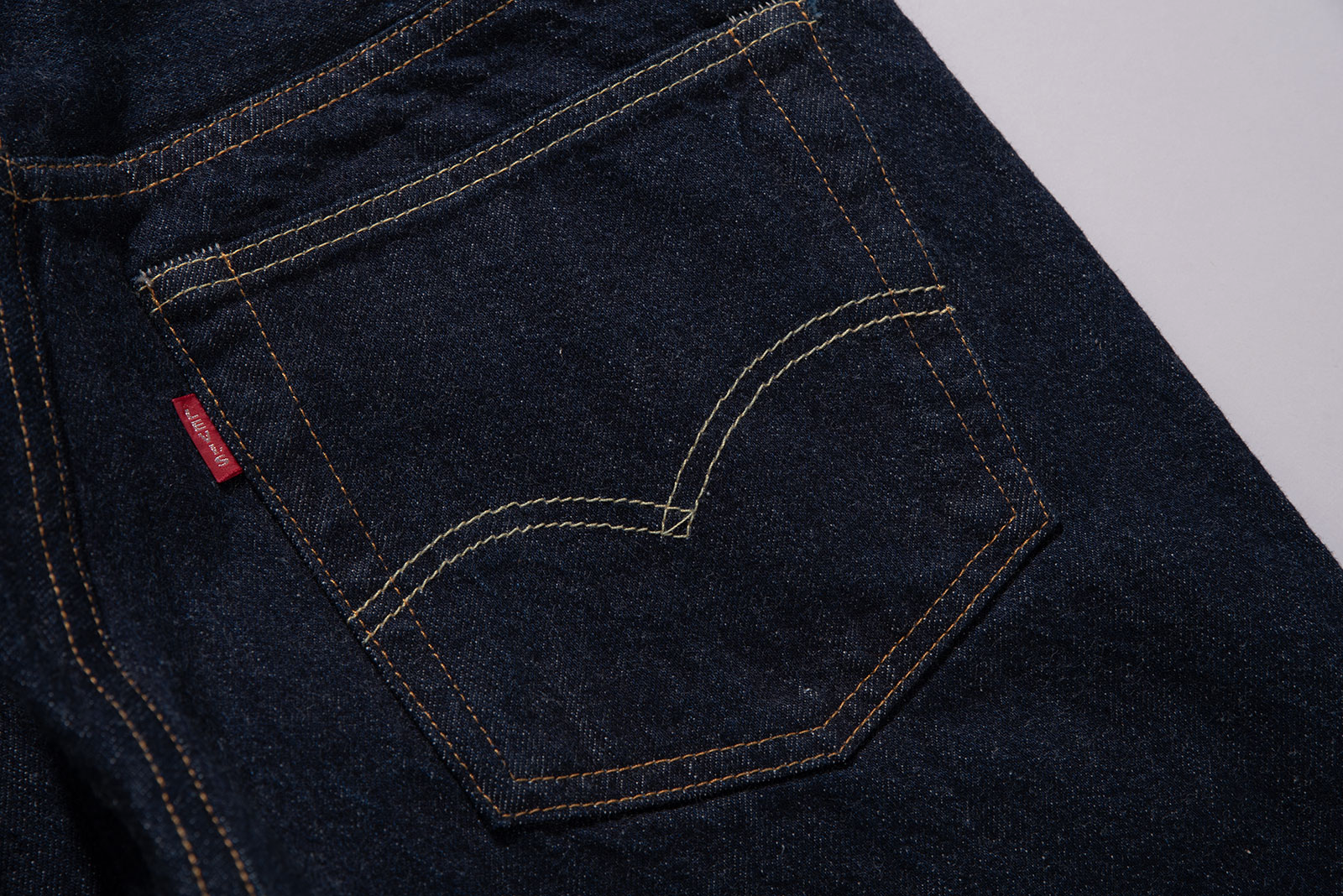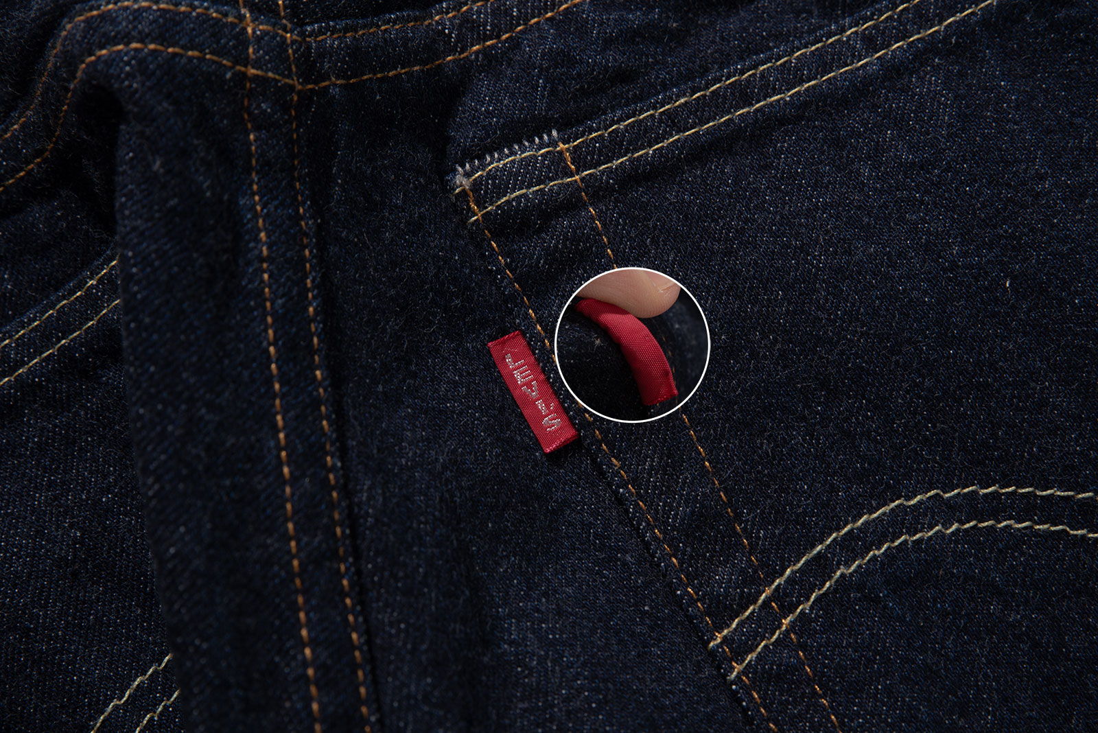 LVC의 특징인 대문자 레드 탭과 투호스 패치, 히든 리벳, 체인 스티치, 빈티지 규격의 백 포켓 아큐에잇까지.