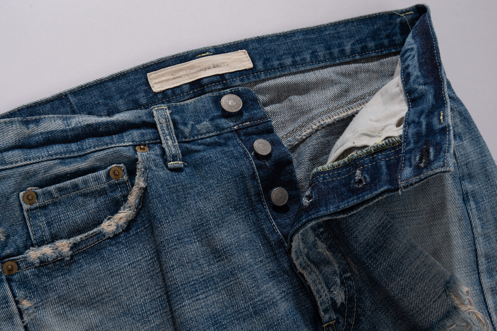 버튼 플라이가 적용된 프론트에서 전통적인 빈티지 데님의 아이덴티티를 즐기실 수 있고 자연스러운 페이드와 크랙 등 y2k 무드로 딱이죠.