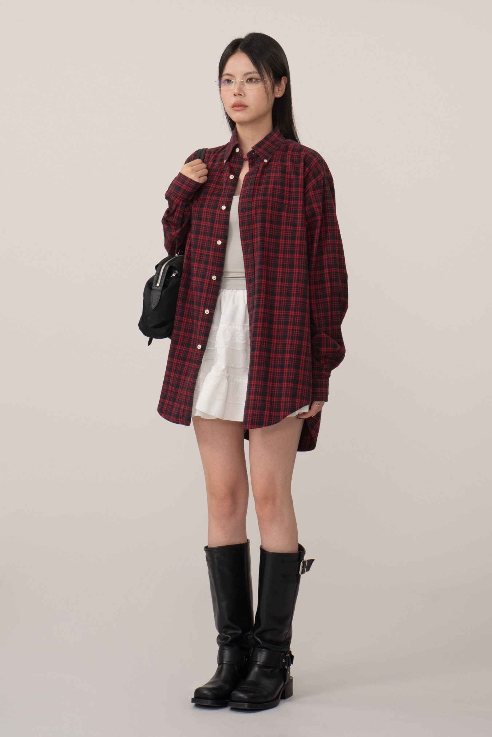 부담스러울 수 있는 컬러지만 블랙 체크 패턴이 자잘하게 들어가 있어서 무난하게 입기 좋고 넉넉하고 큰 사이즈이지만 차분하게 떨어지는 핏 감이라 부한 느낌 없어 여리한 느낌..ㅎ.ㅎ