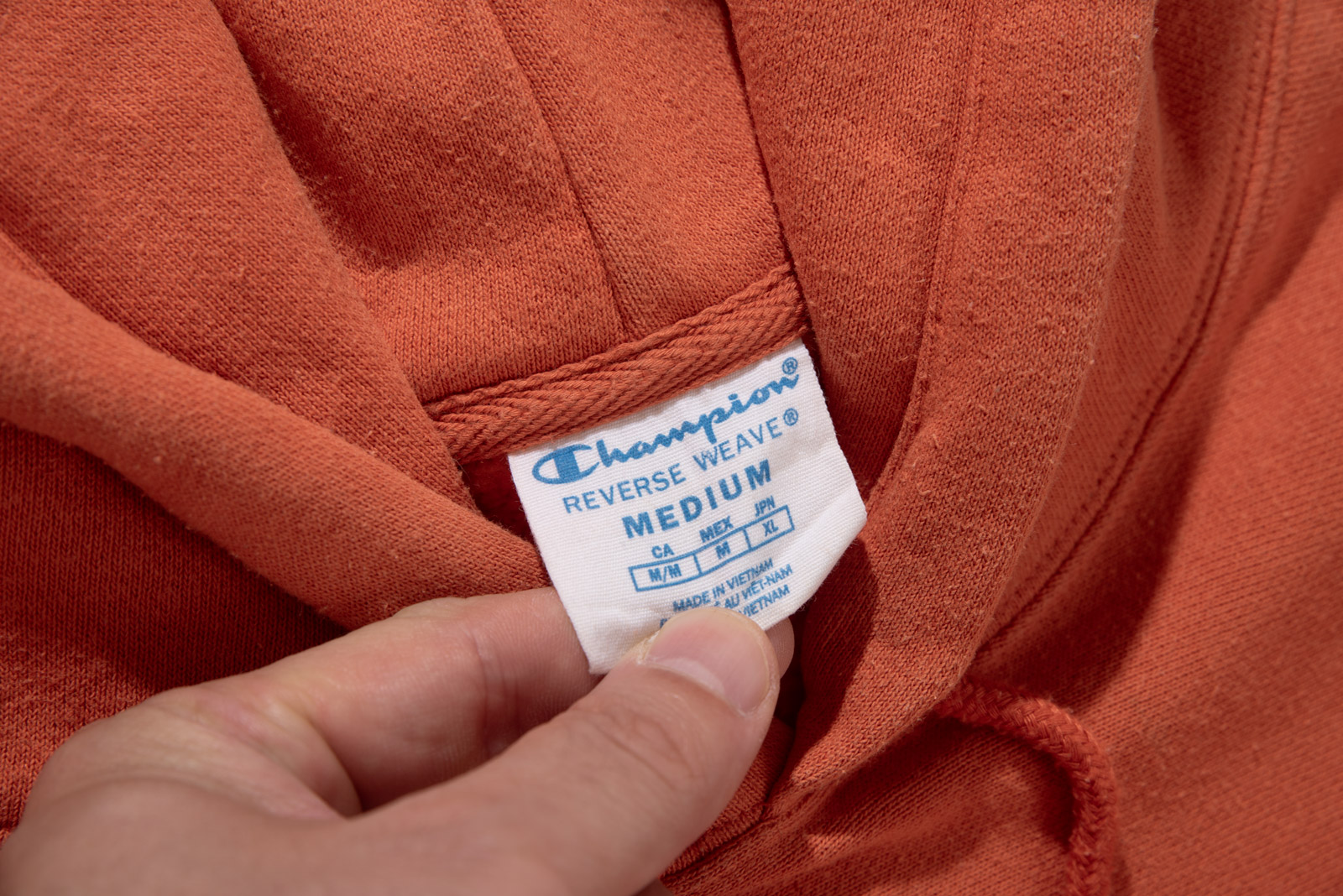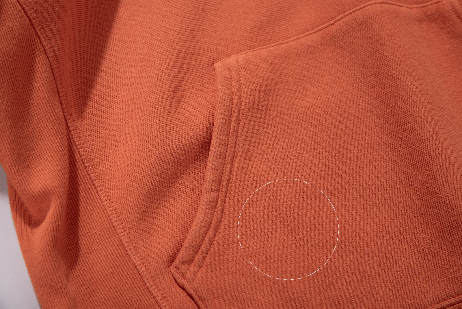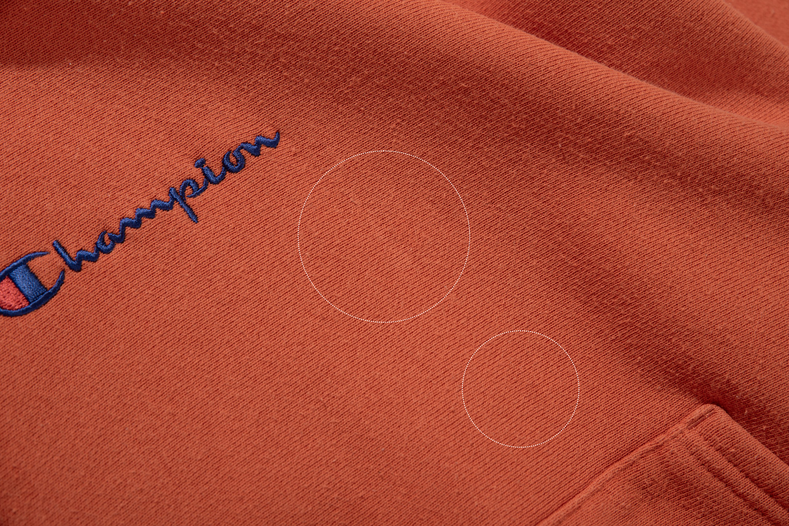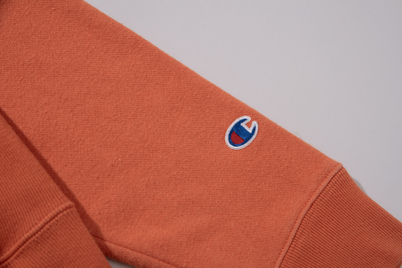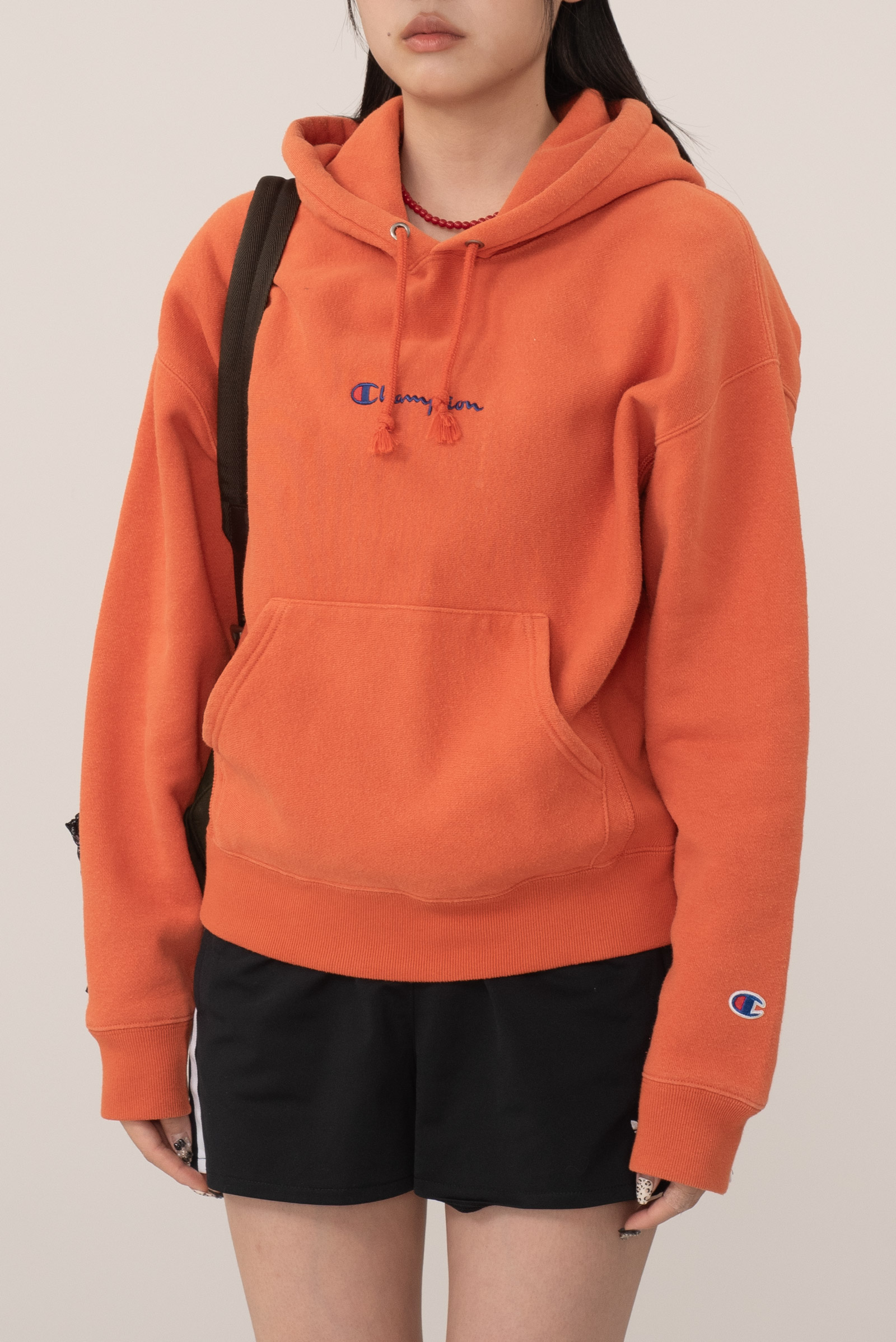 비비드한 오렌지 톤 컬러가 일반적인 블랙, 그레이 계열과 달라 희소성을 띠고 가슴이 아닌 전면 중앙에 챔피온 자수가 들어가 있어서 훨씬 유니크하답니다.