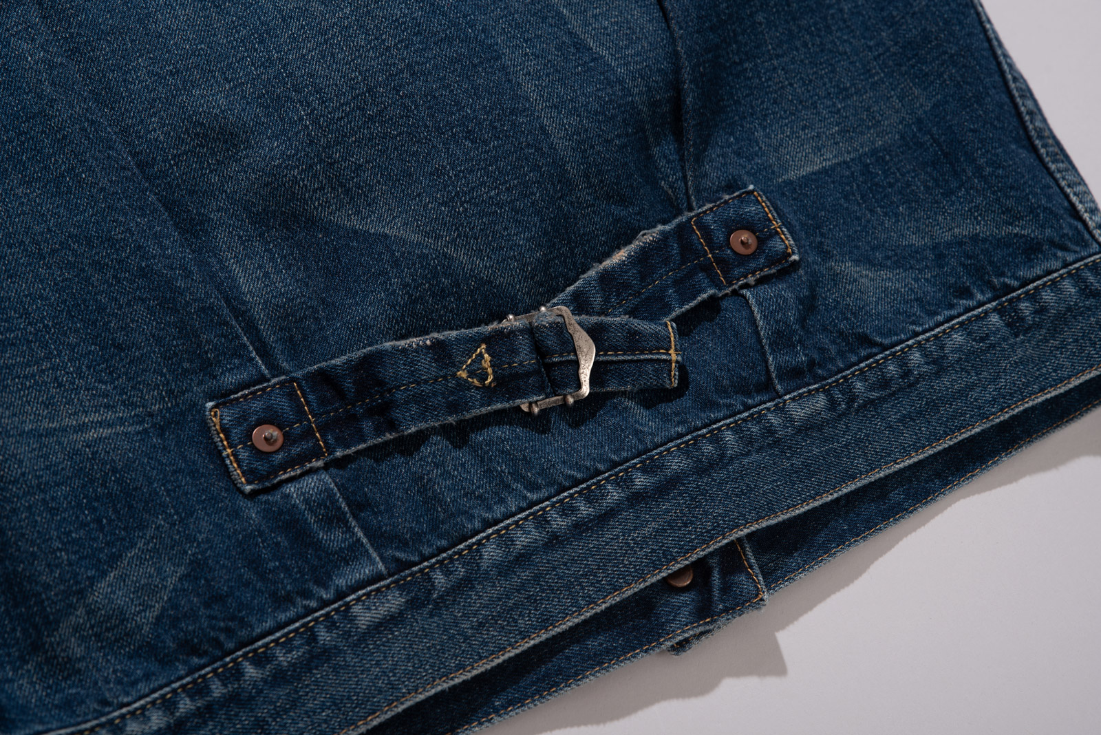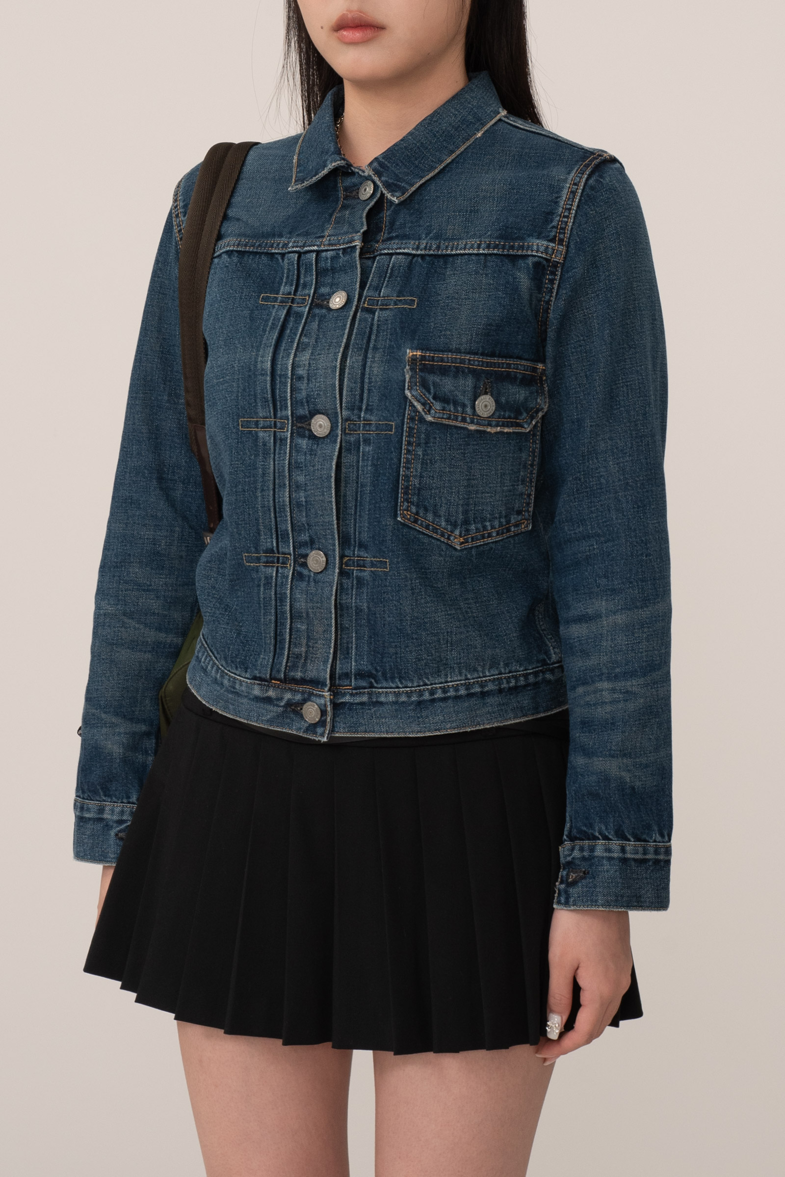 앞서 설명드렸던 것처럼 가공으로 부드러워진 최상급 데님 원단으로 편안하게 착용 가능하며 잘 익은 컬러감까지 재현이 된 개체라 너무 예뻐요.