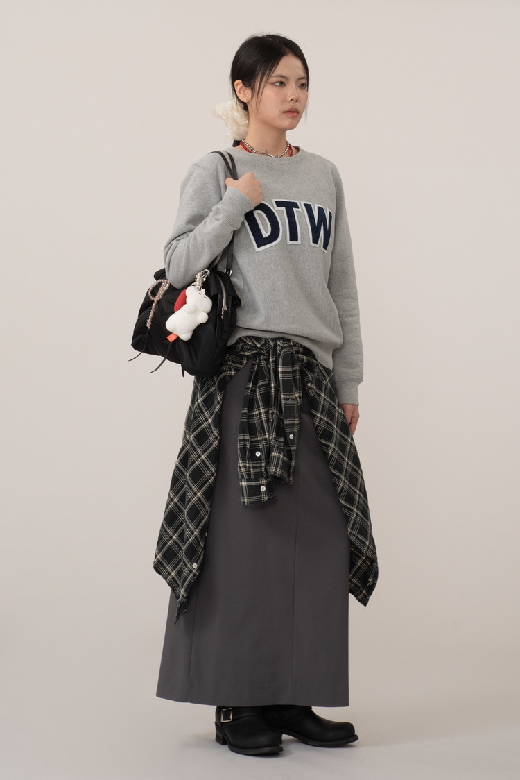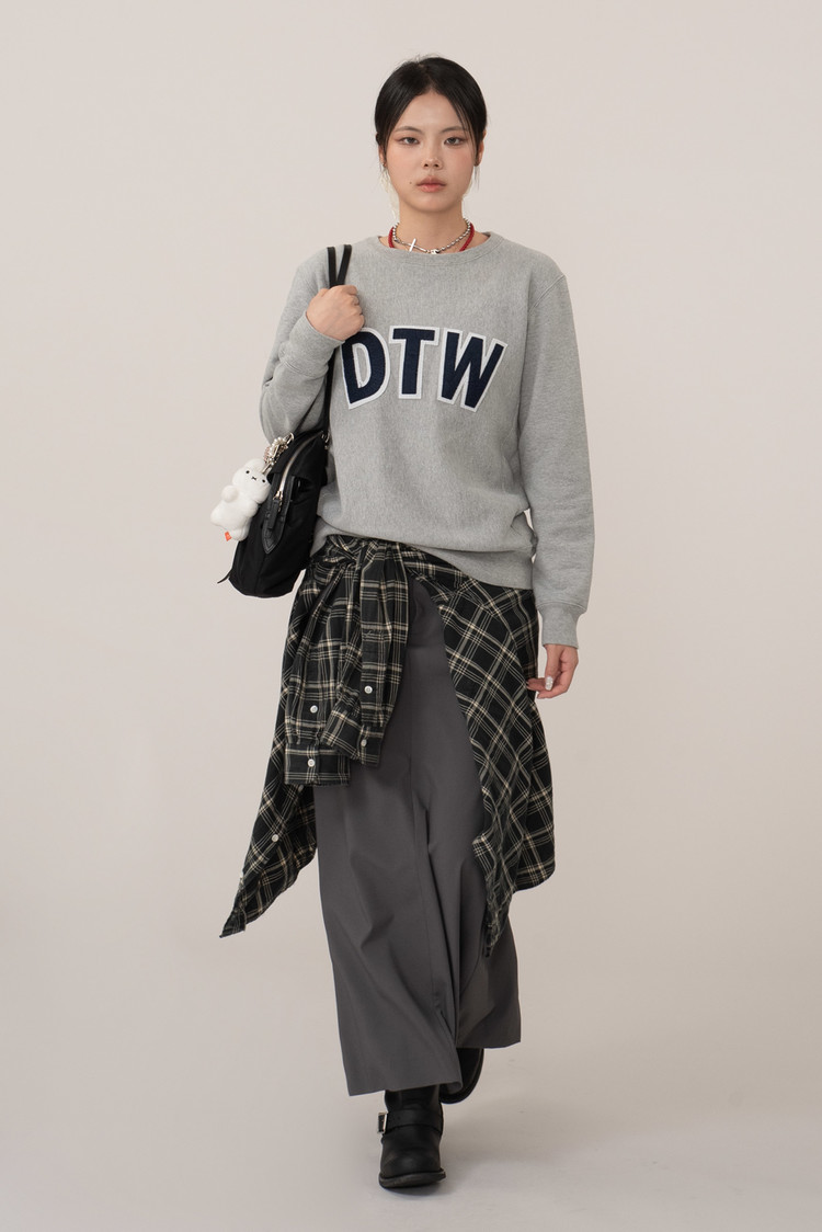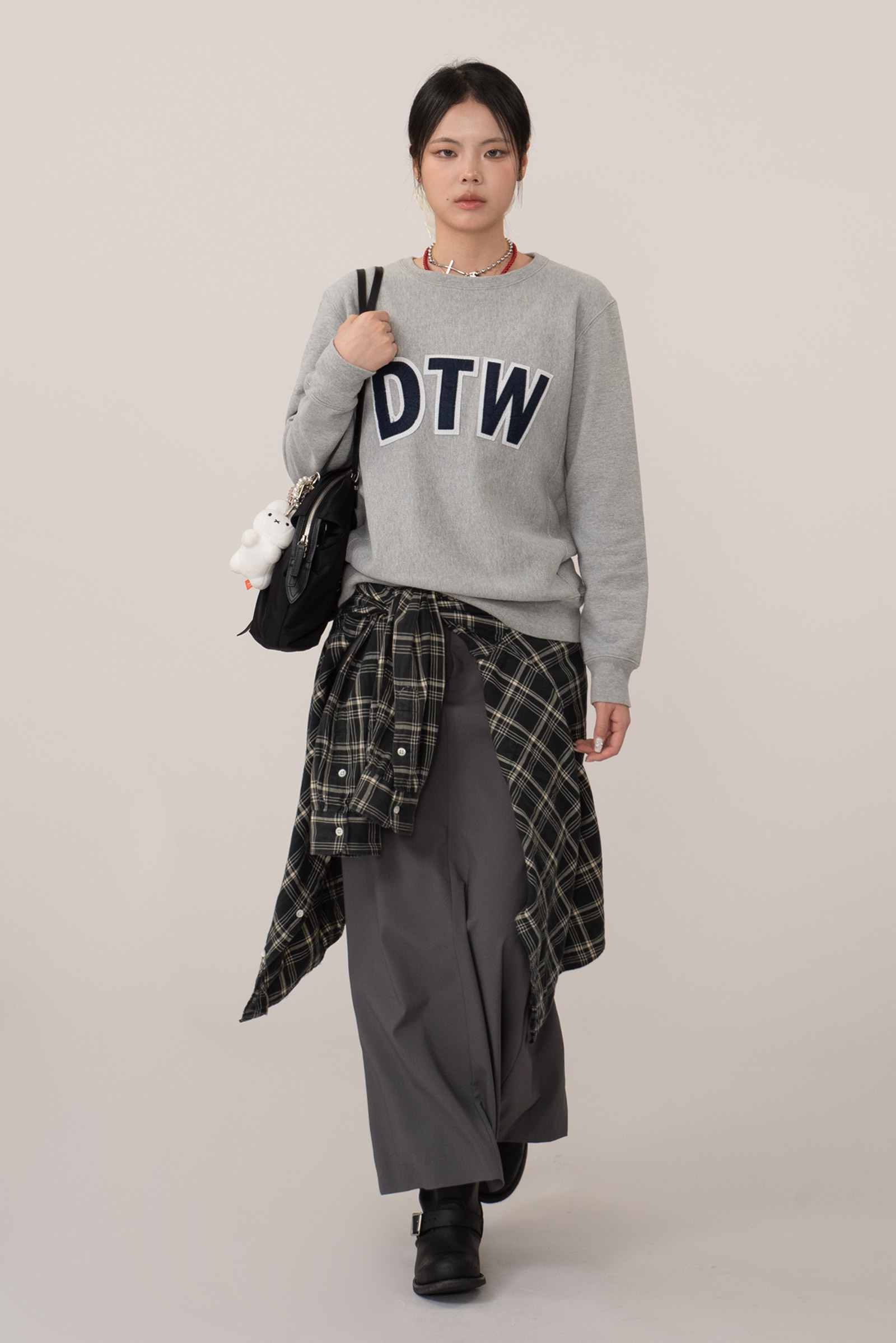 전면의 DTW 패치 로고는 빈티지 스포츠 웨어에서 영감을 받은 펠트 아플리케 기법으로 제작되어 입체감 있는 질감이 특징이며 톤 다운된 멜란지 그레이 바탕에 네이비 로고를 매치해 베이직하면서도 존재감을 드러낸답니다.