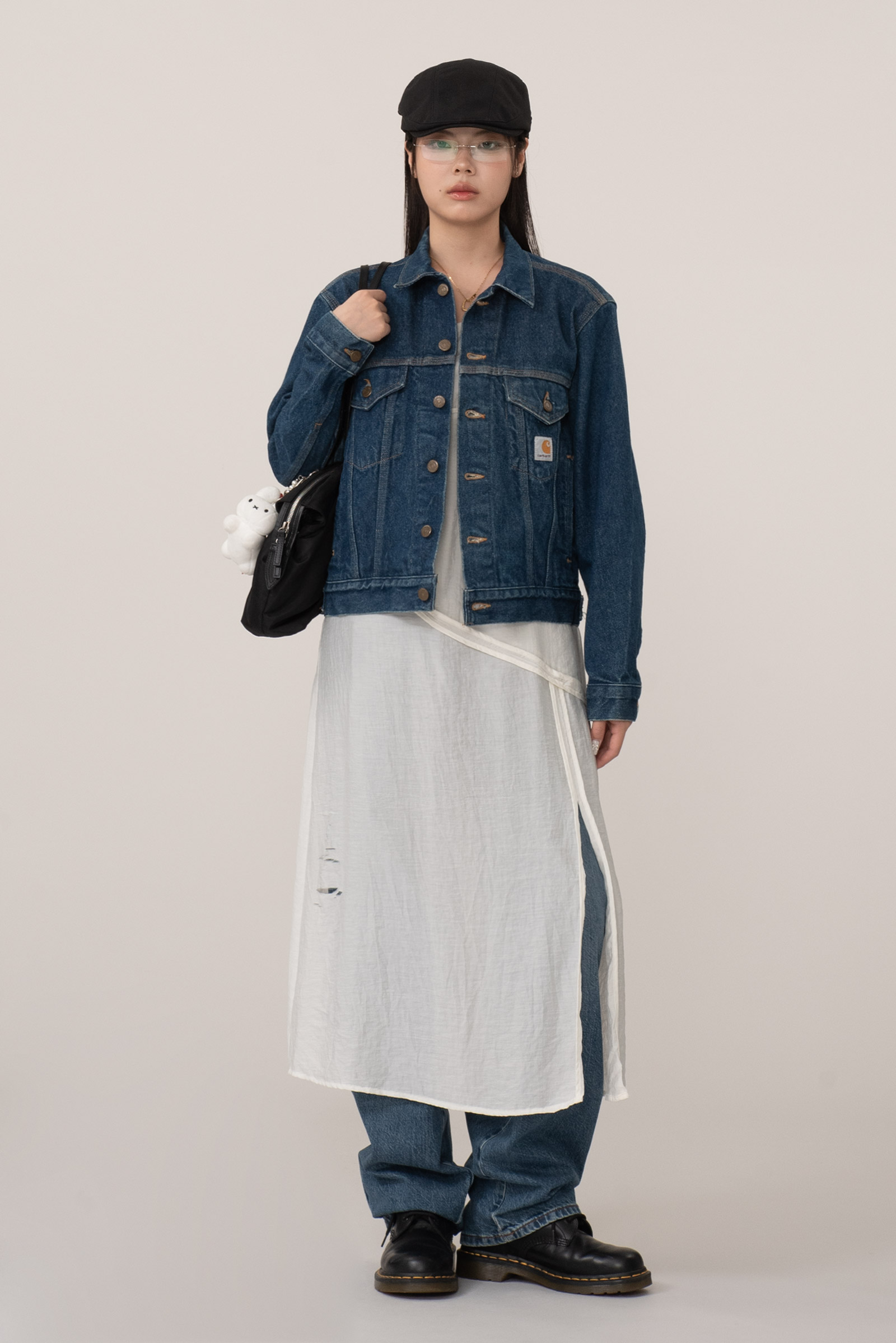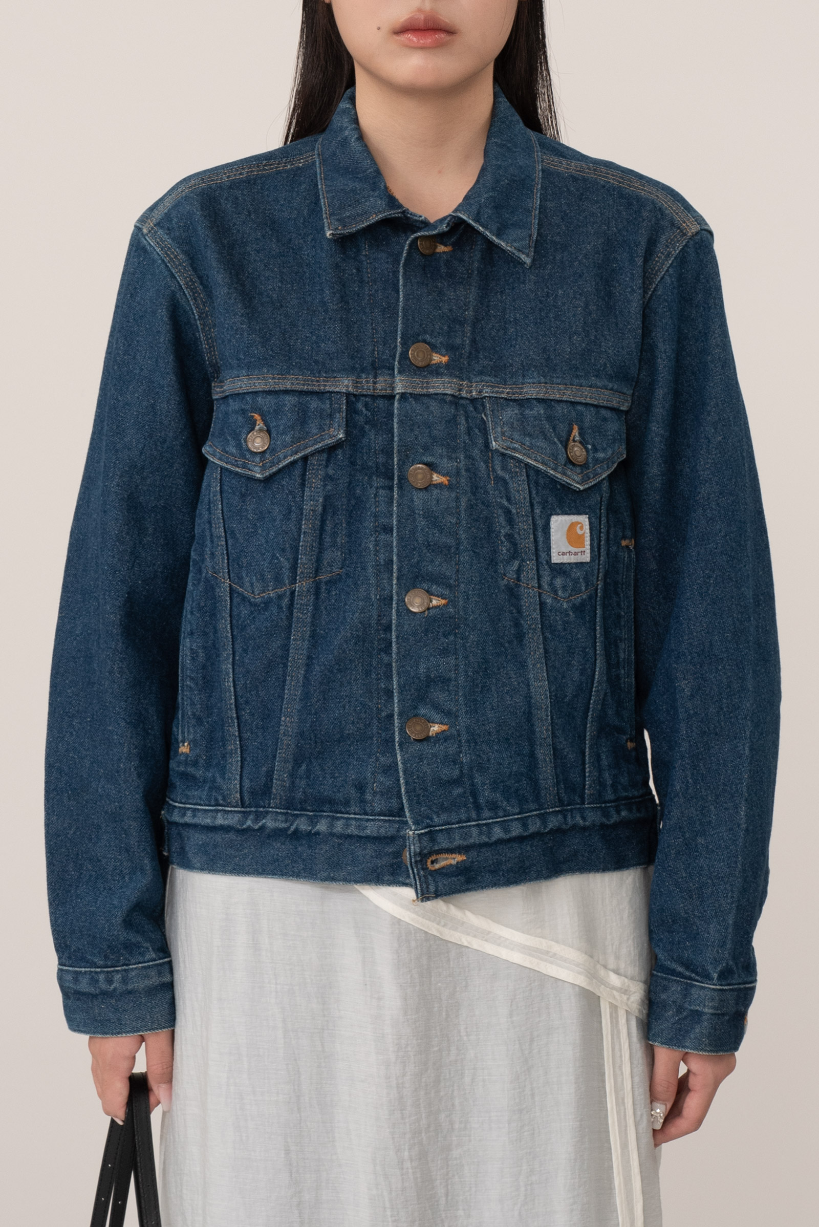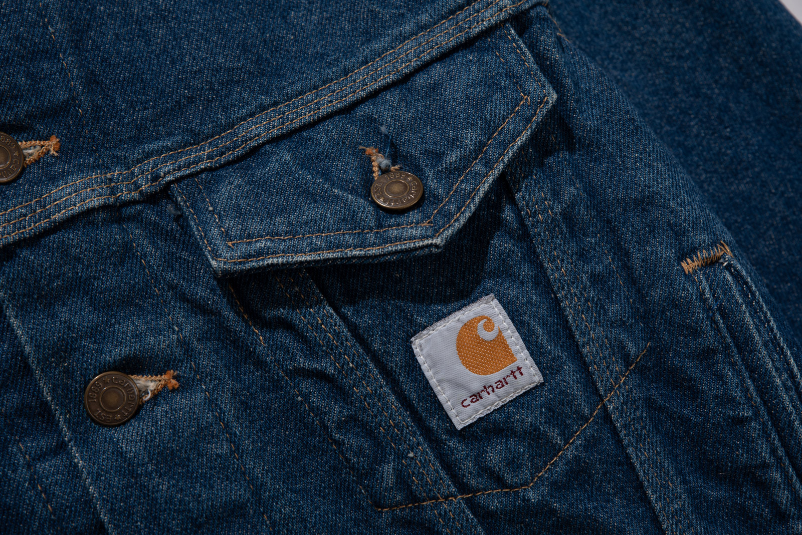 칼하트는 디트로이트에서 시작된 브랜드로 노동자들을 위한 튼튼한 작업복을 제작하며 성장했는데 이 재킷은 그런 헤리티지를 현대적으로 계승한 모델로 복각 느낌의 전통적인 트러커 스타일과 빈티지 워싱 데님이 결합되어 있답니다.