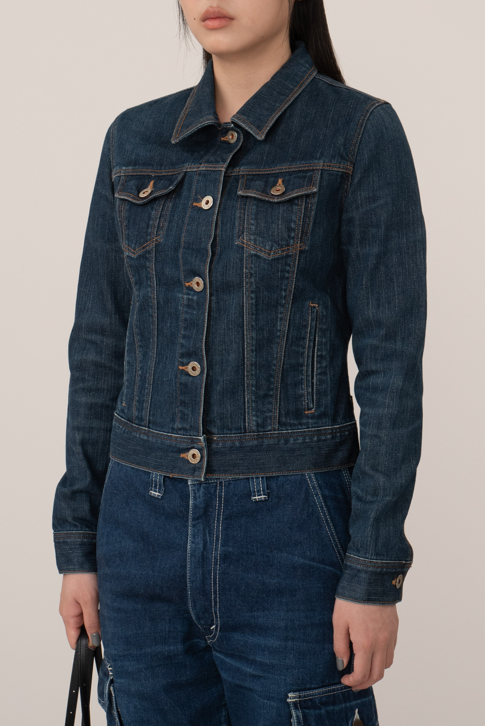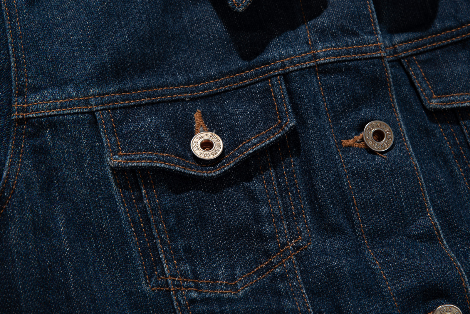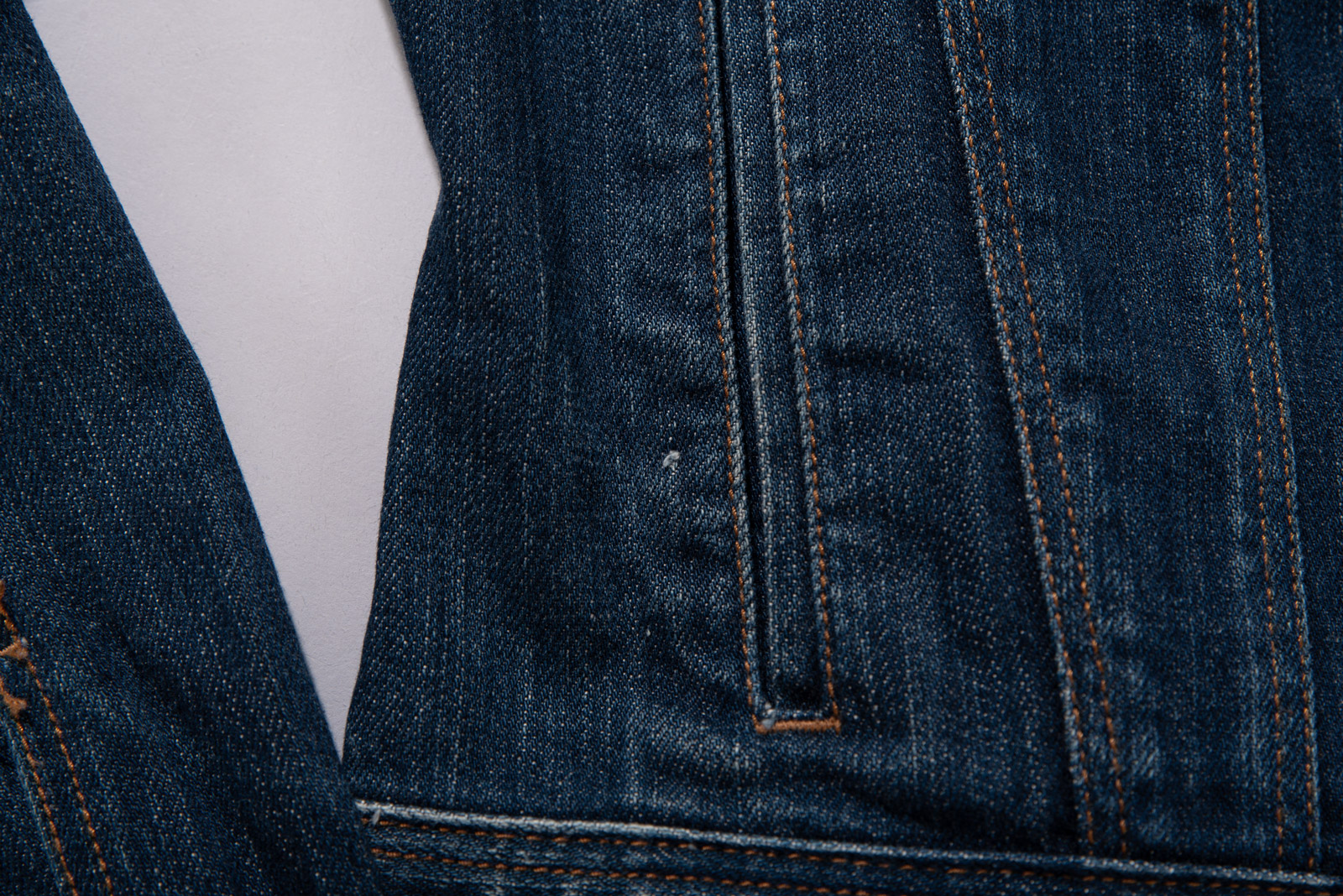 슬림하고 여유 있는 기장의 소매와 자연스럽지만 매니악 하지 않은 워싱, 오리지널리티를 살린 주황색 스티치와 베이직한 핏 감이라 유행 없이 두고두고 착용 가능하며 편안하게 착용되는 두께감과 비교적 부드러운 데님이라 부담 없이 연출되어요.