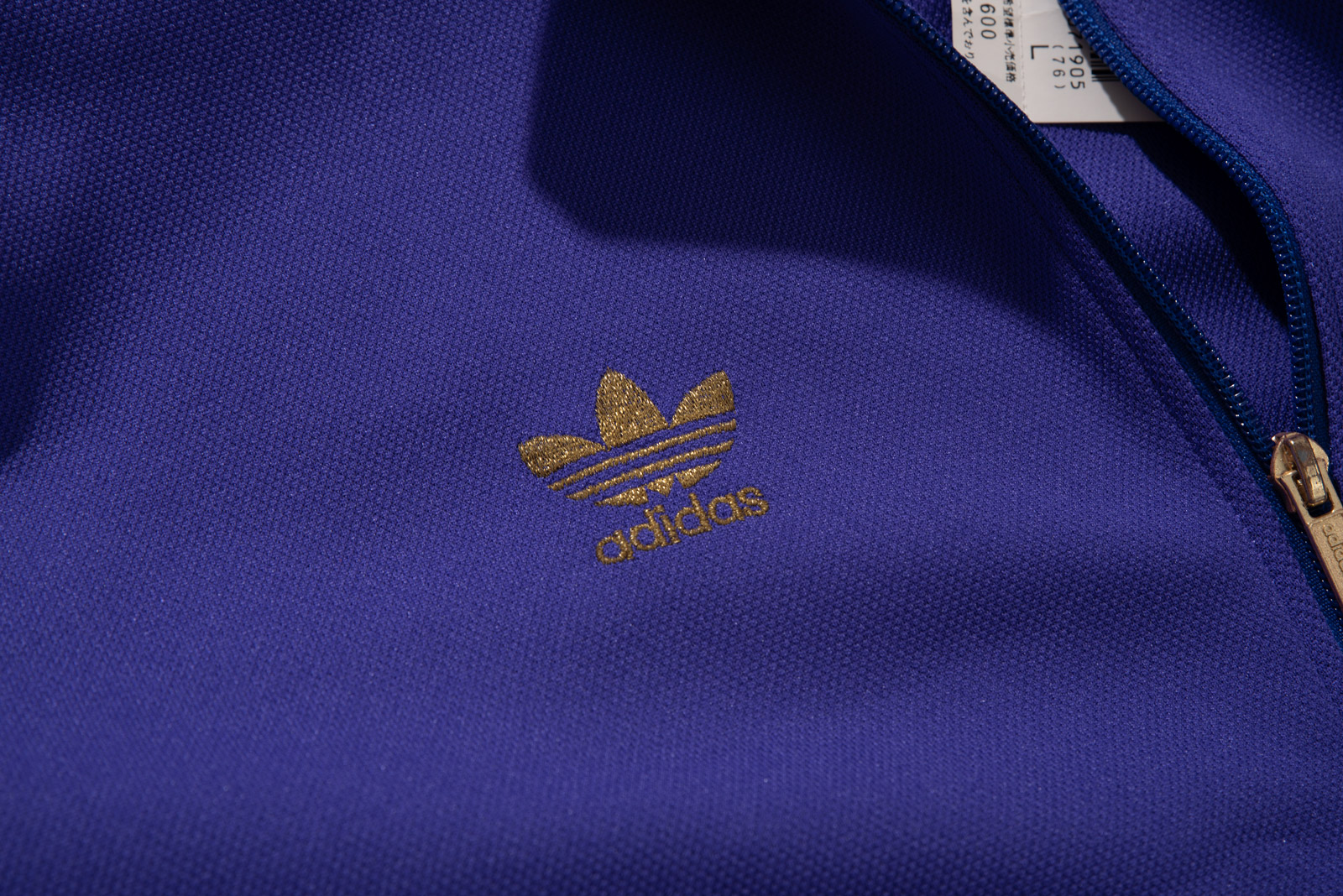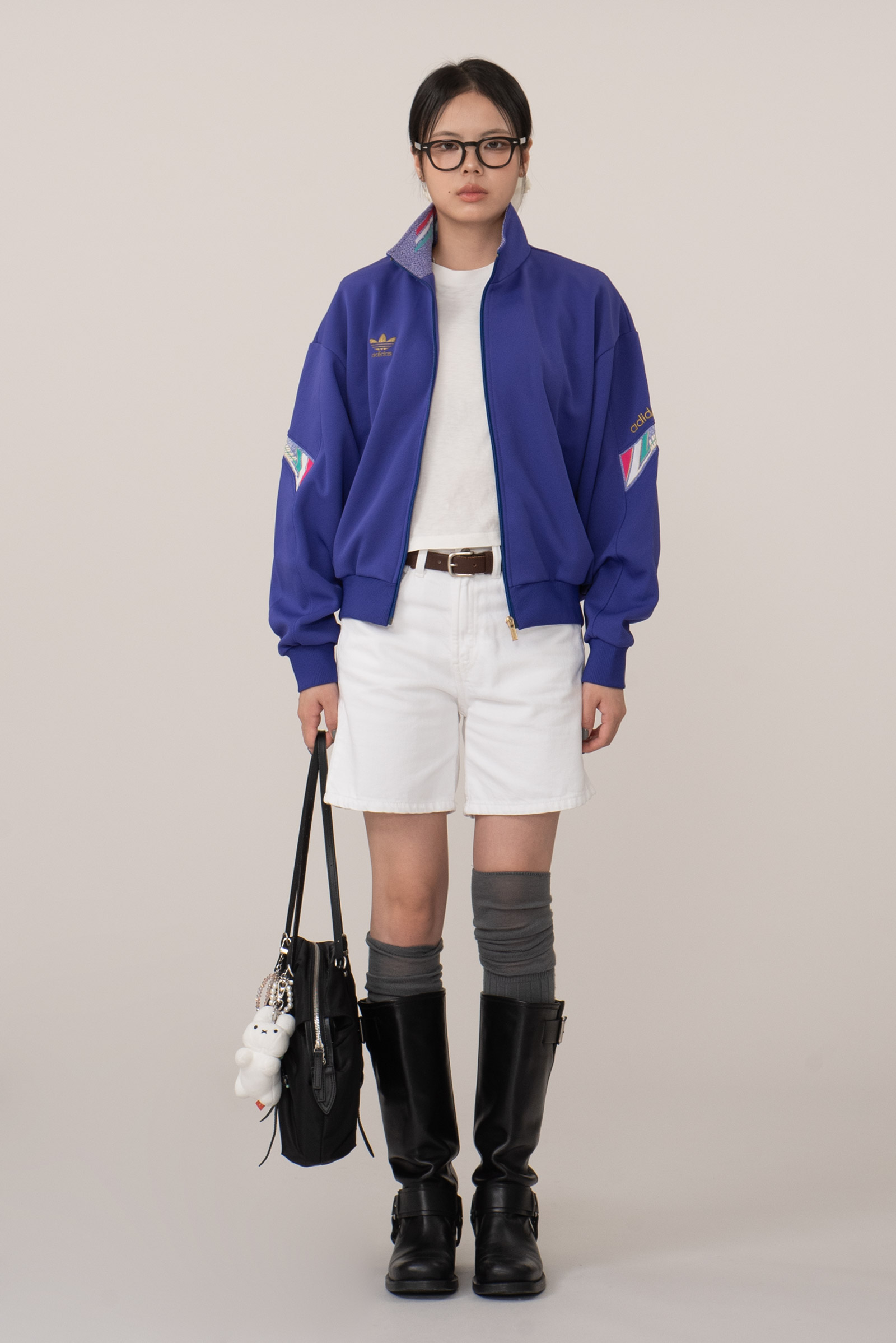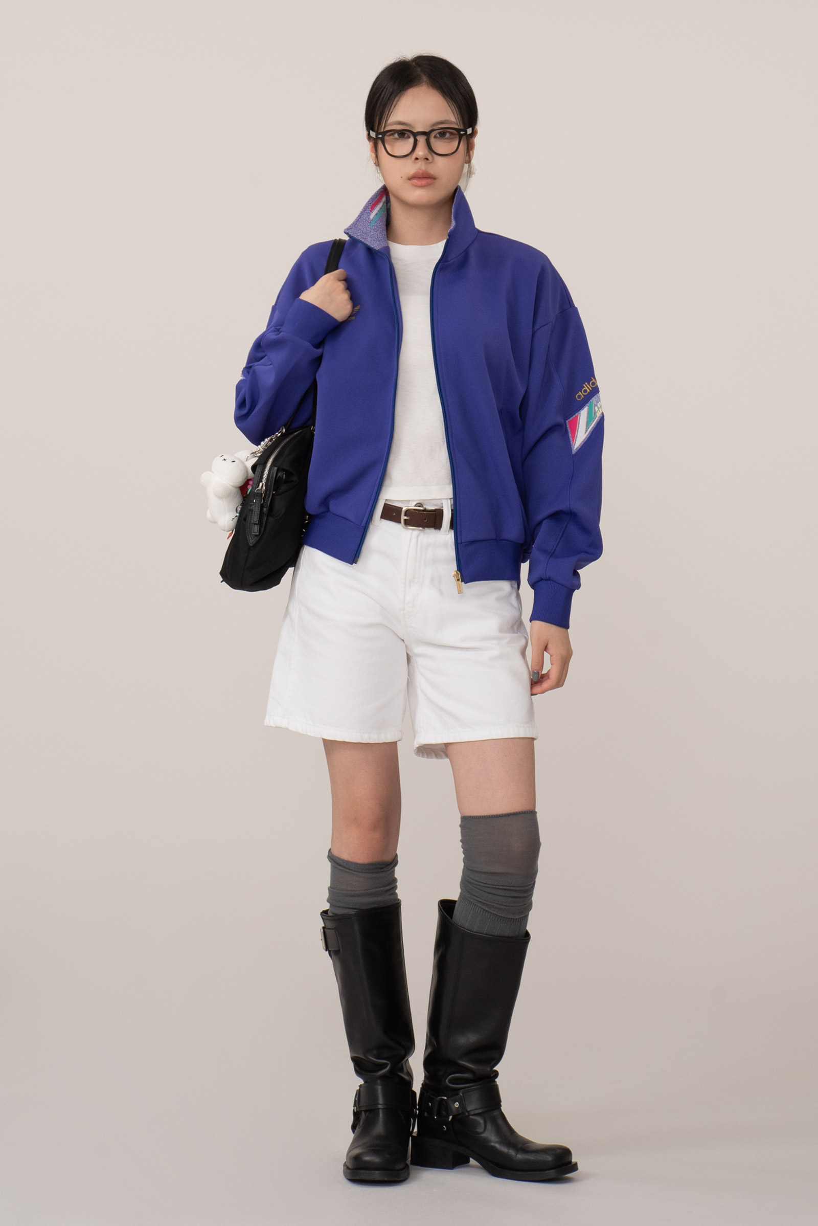 시원하고 선명한 컬러, 카라 안쪽과 팔뚝에 들어간 지오메트릭 패턴+아디다스 로고 위빙 디테일은 80~90년대 일본 스포츠 웨어의 감성을 잘 드러내고 있으며 금색 실사로 된 트레포일 로고 역시 굉장히 유니크해요.