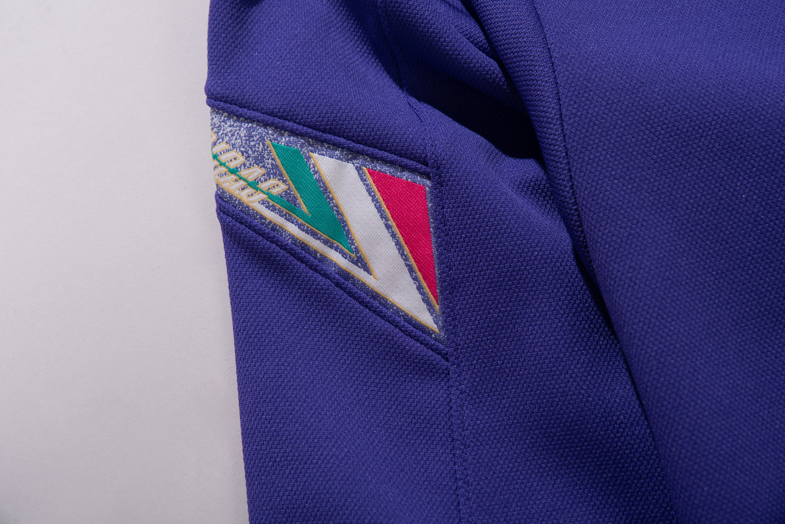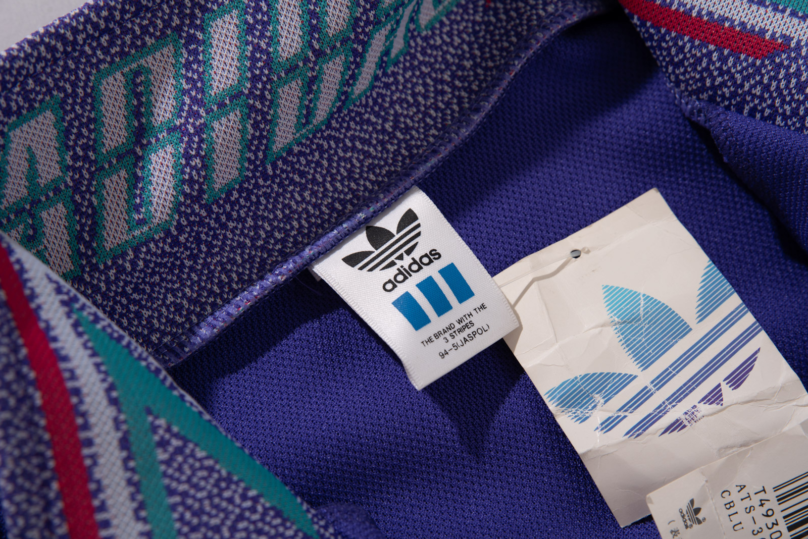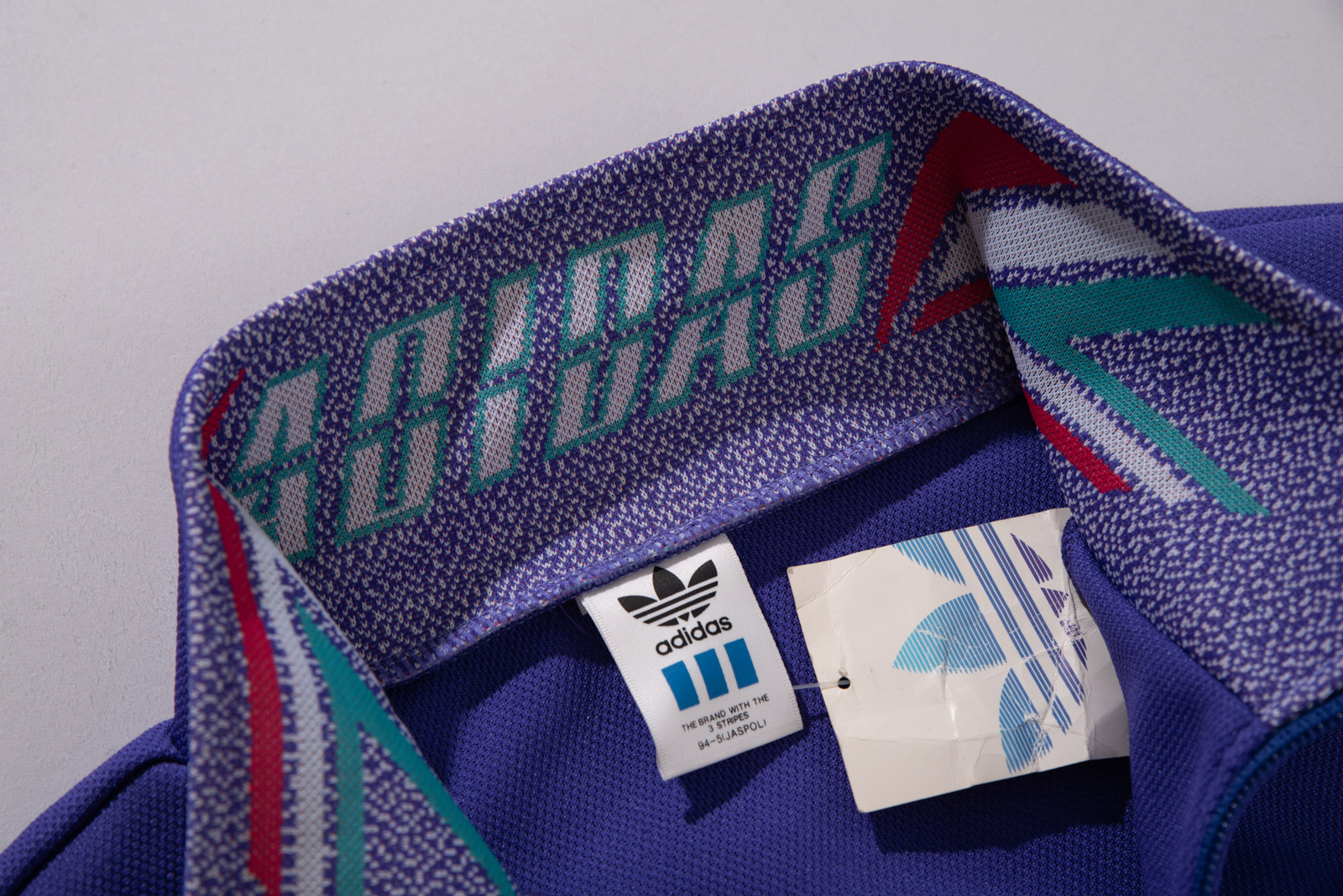 시원하고 선명한 컬러, 카라 안쪽과 팔뚝에 들어간 지오메트릭 패턴+아디다스 로고 위빙 디테일은 80~90년대 일본 스포츠 웨어의 감성을 잘 드러내고 있으며 금색 실사로 된 트레포일 로고 역시 굉장히 유니크해요.