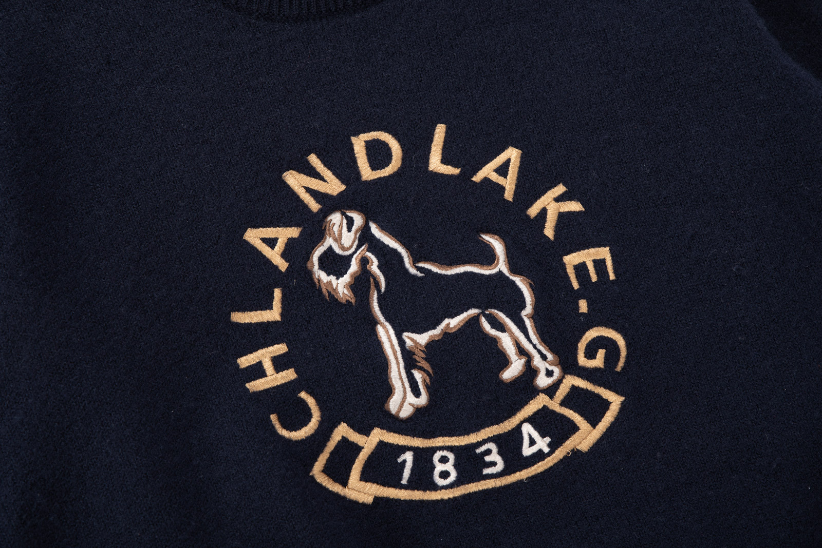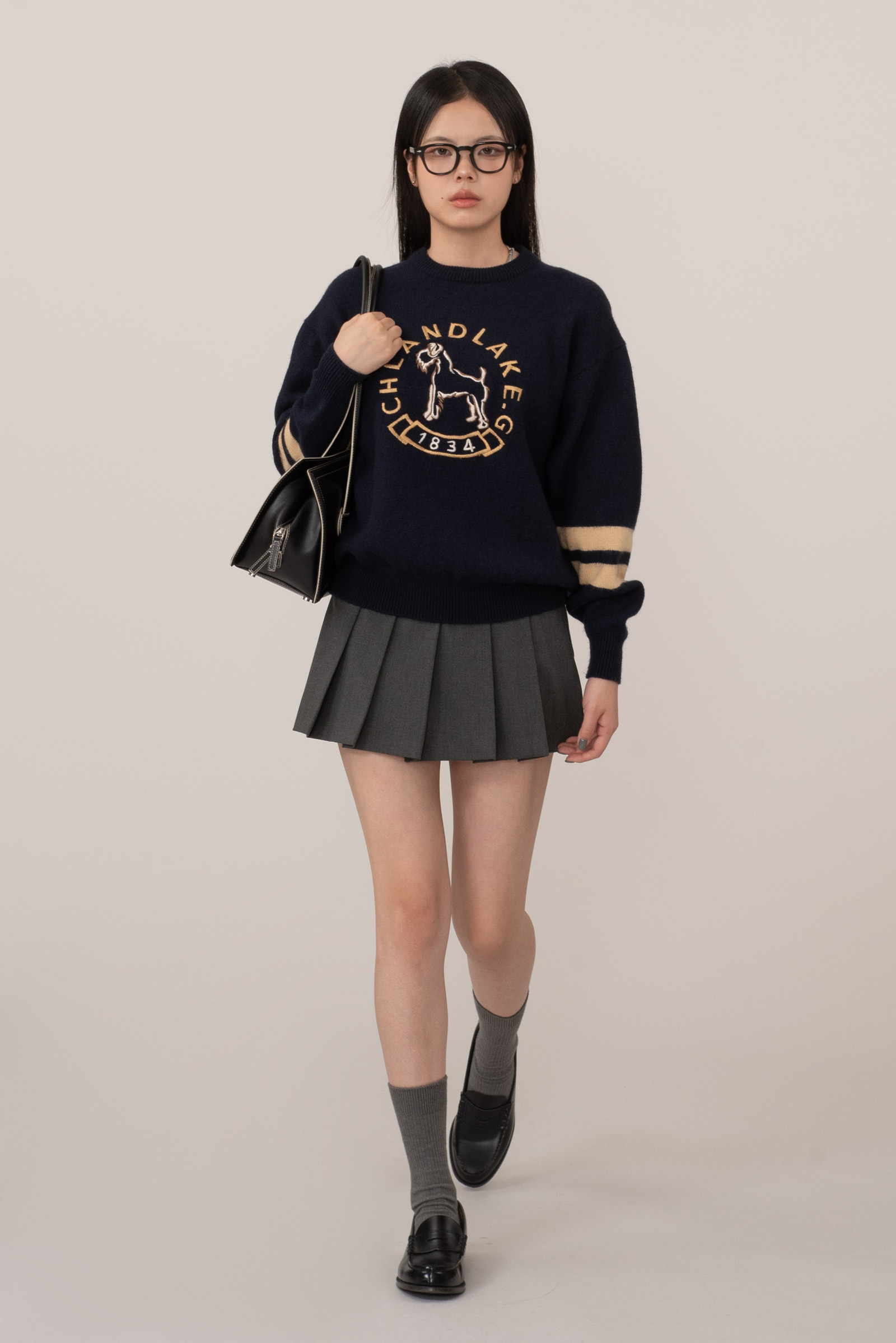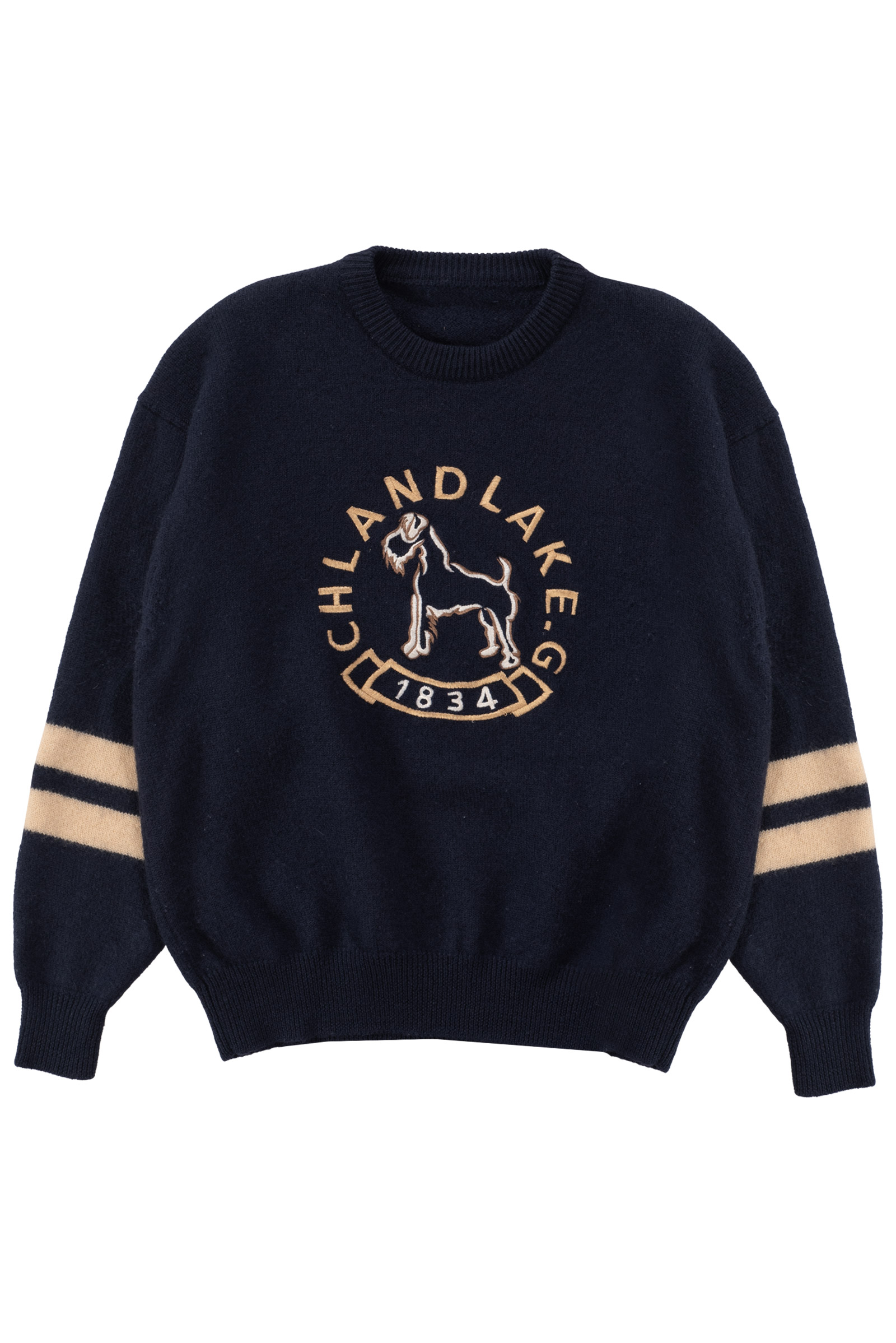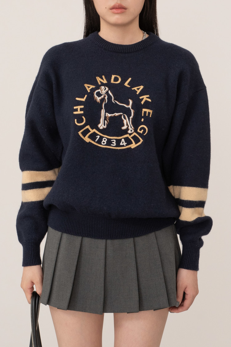 두툼하고 밀도 있는 100% 울 소재로 변형이 적으며 안정감 있게 입을 수 있고 네이비 컬러에 빈티지 감성 가득한 레터링+마스코트 디자인으로 편안하게 착용되어요.