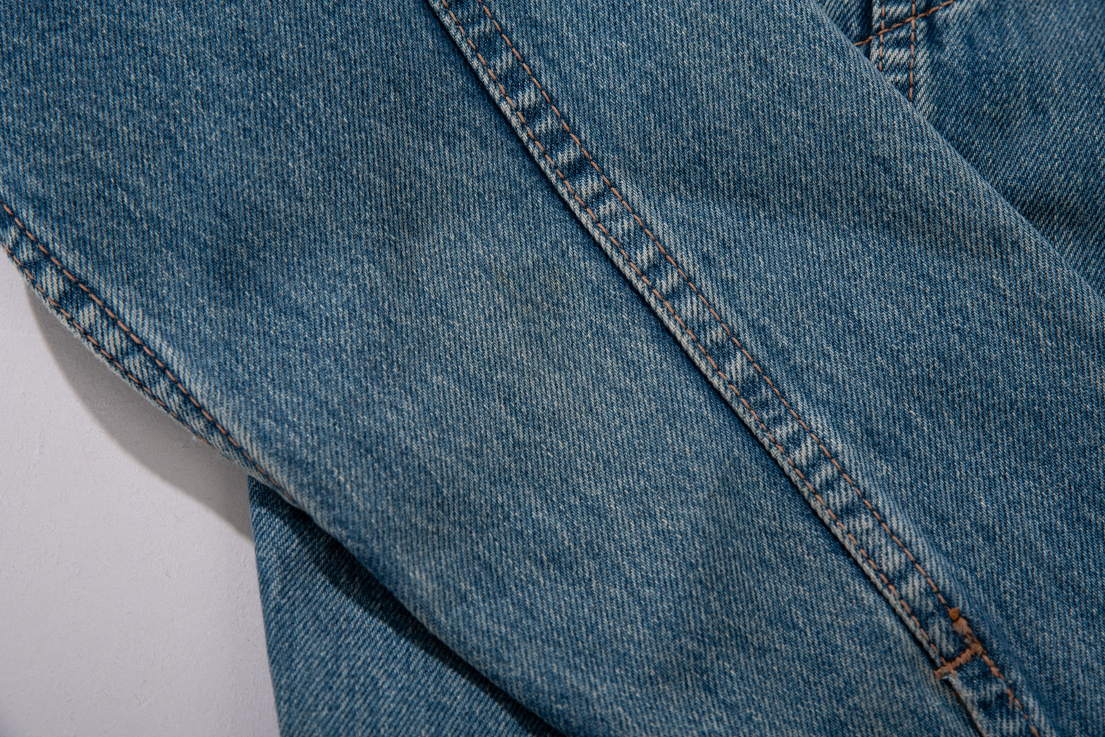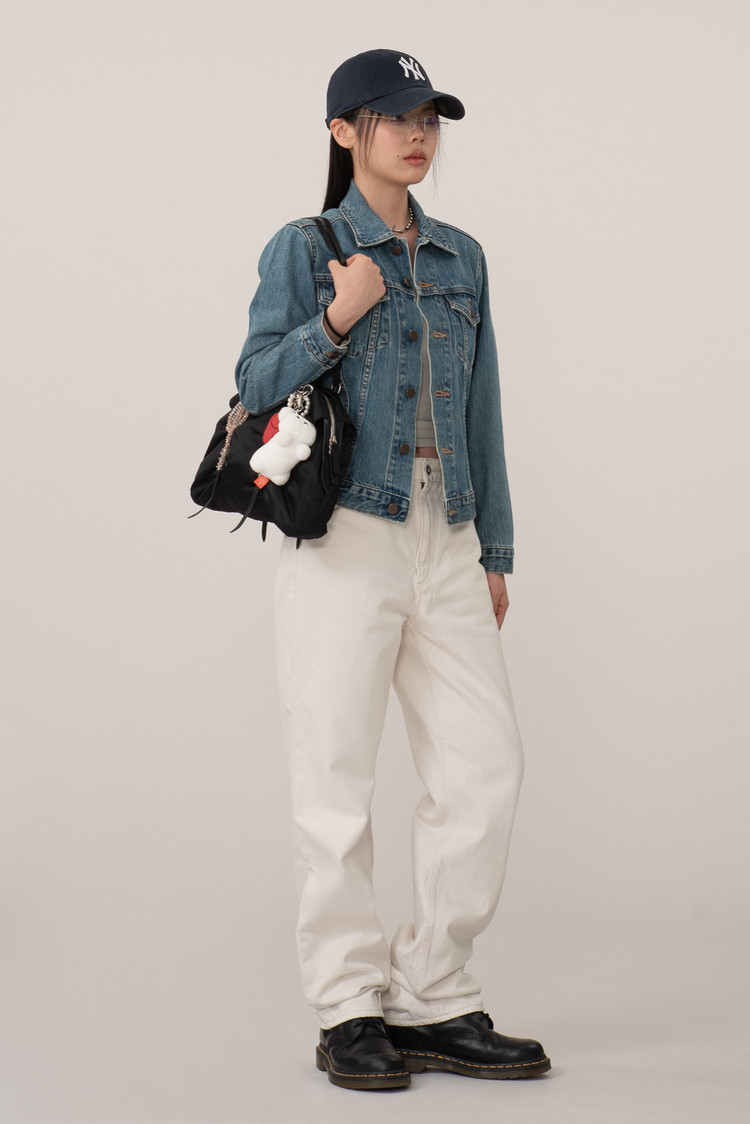 무광 황동 버튼과 오렌지 스티치 조합, 세로로 곧게 떨어지는 바디 핏이 리바이스 오리지널의 균형감을 유지하면서도 일본적 정제미를 더했답니다.