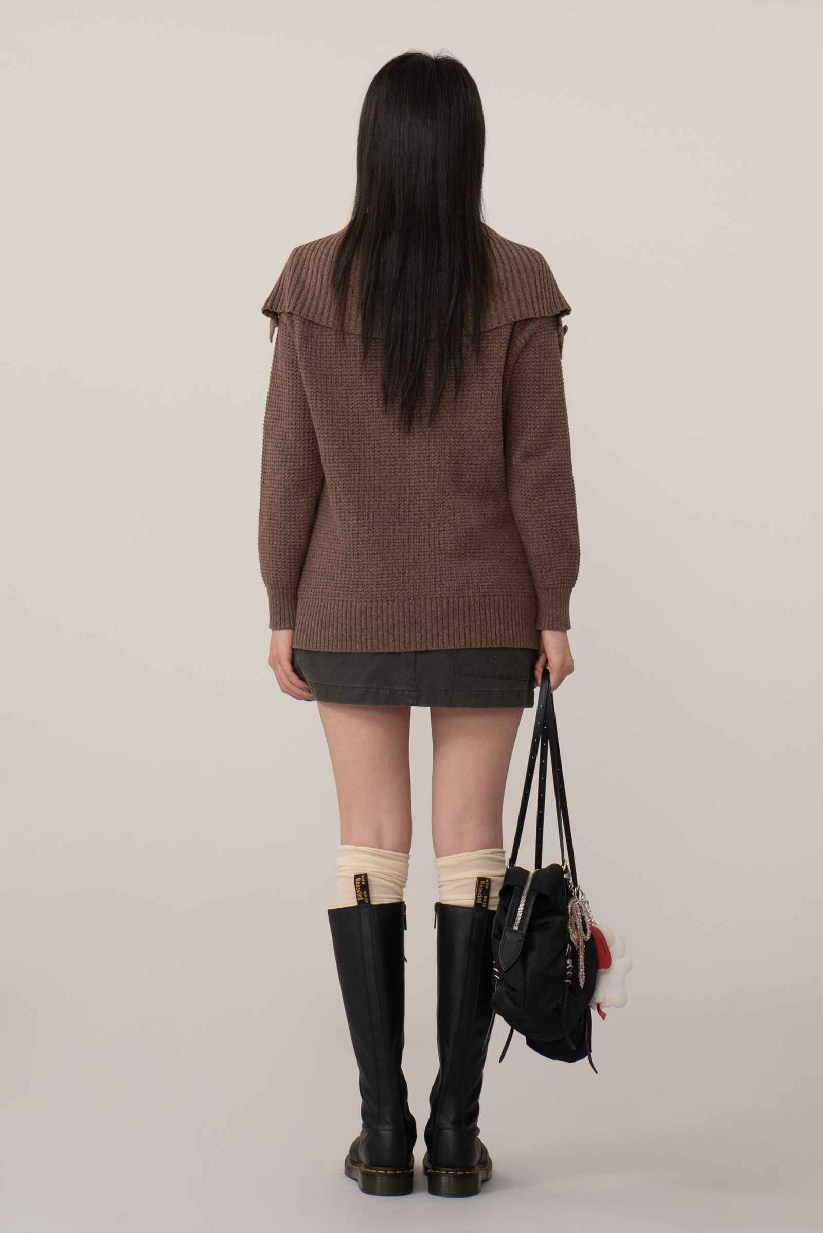 어디에나 균형 있는 레이어링이 가능한 기장감, 전체적인 색상을 통일하며 안정된 인상을 주며 깊이 있는 브라운 컬러가 성숙한 인상을 더합니다.
