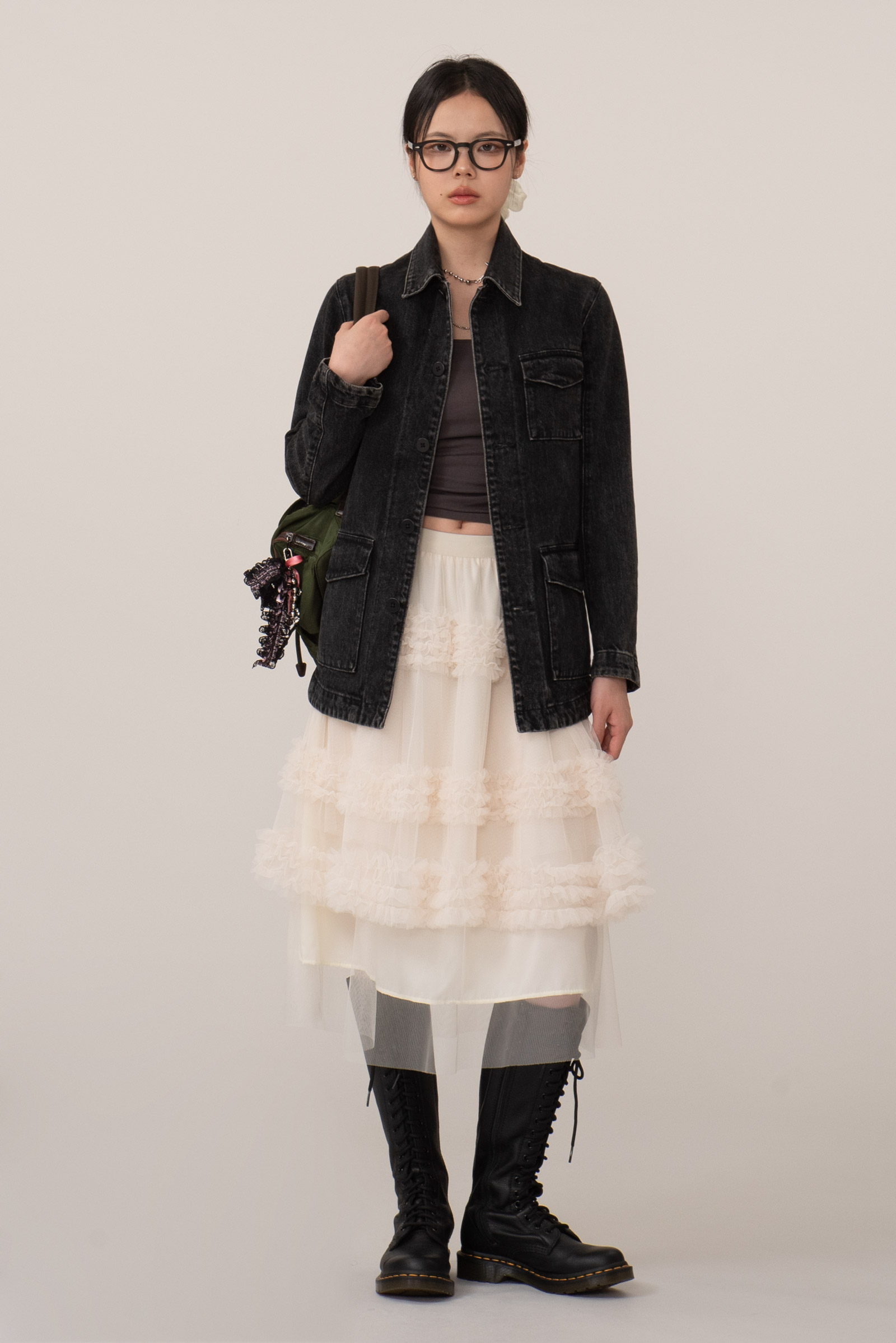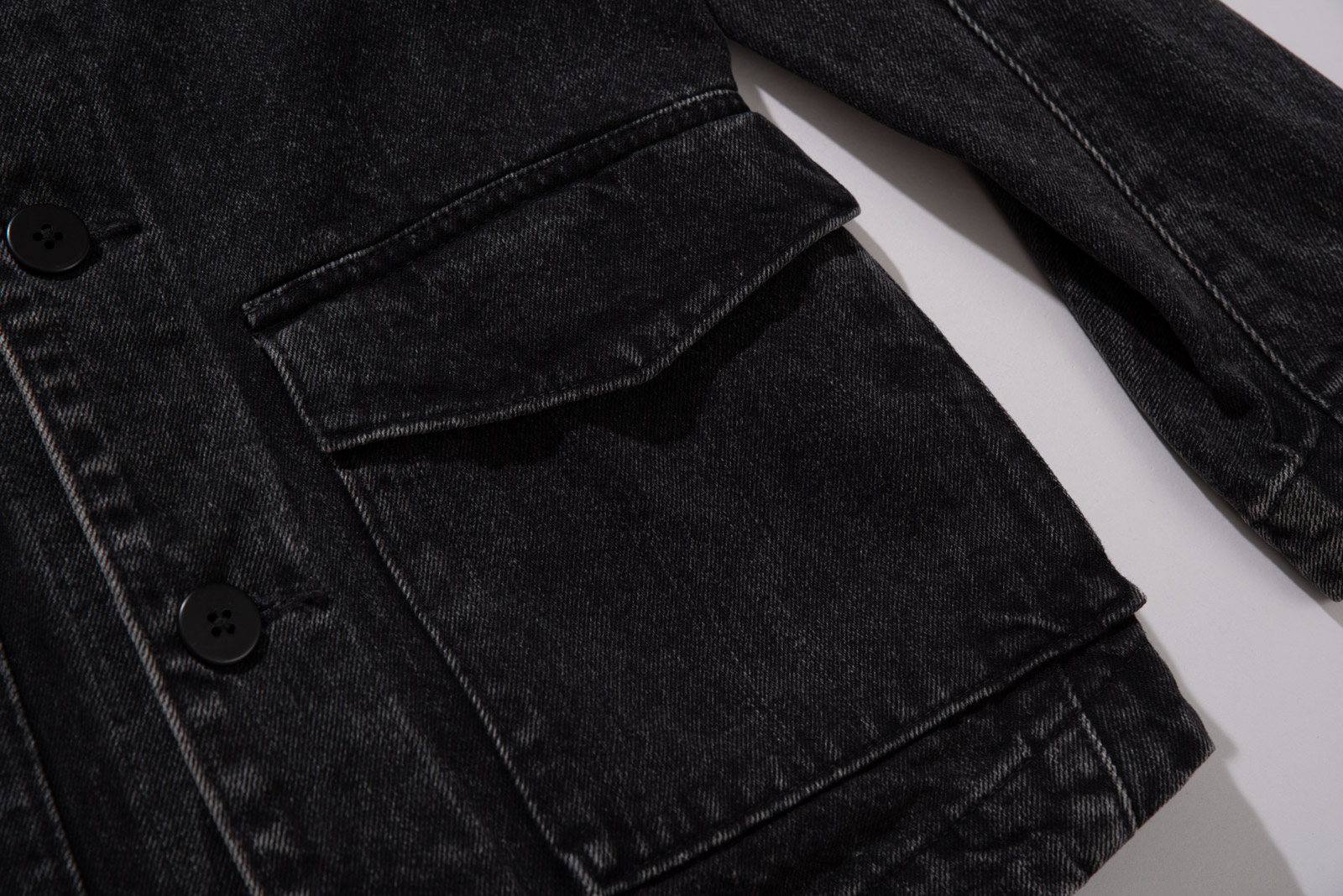 유럽식 차용의 미니멀한 워크자켓 형태로, 좌측 체스트 플랩 포켓과 하단 대형 포켓이 밸런스를 맞춰주며 브랜드를 드러내지 않고 엔지니어드 라인 특유의 디자인으로 존재감을 표현하는 방식이라 전체적으로 절제된 인상을 준답니다.