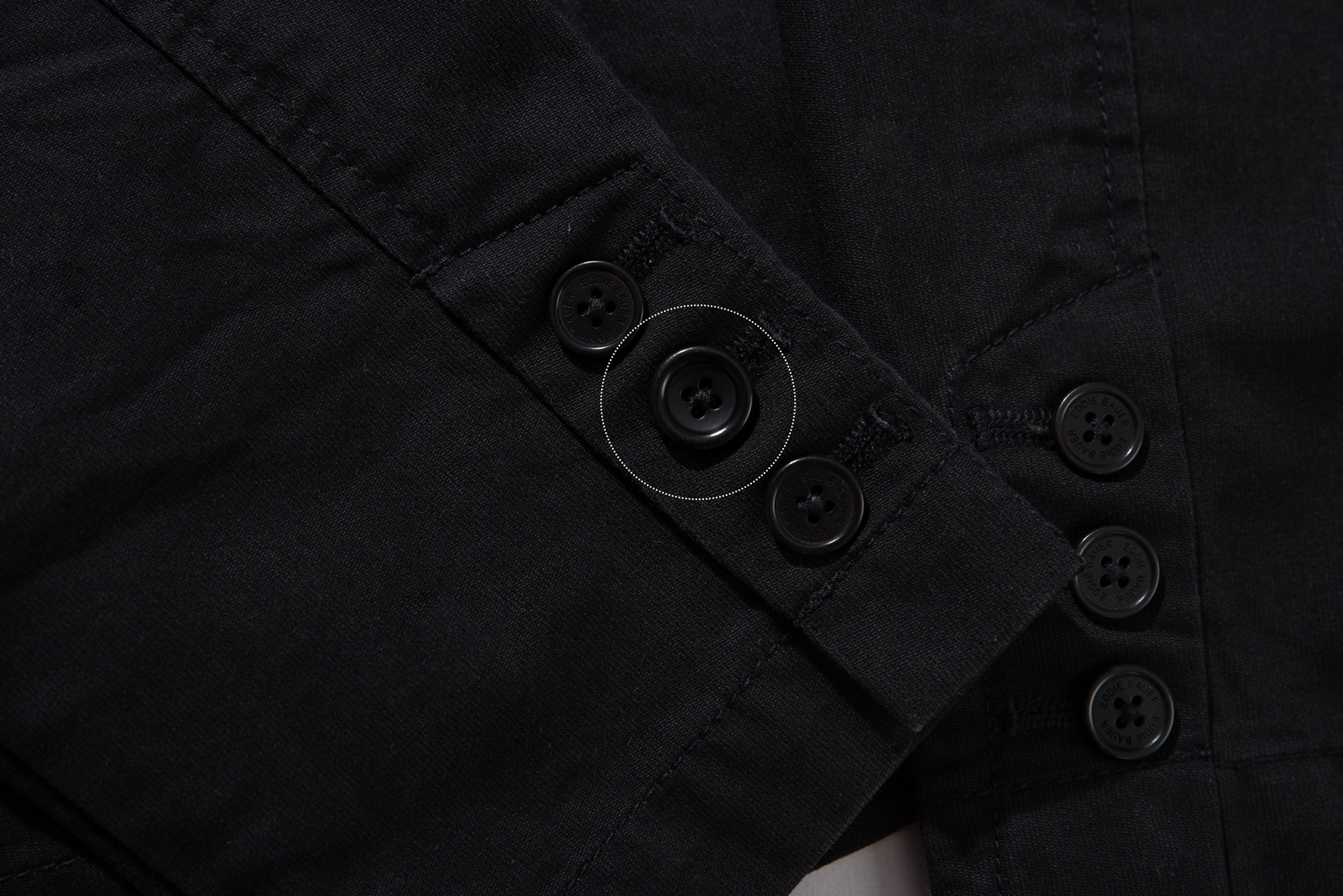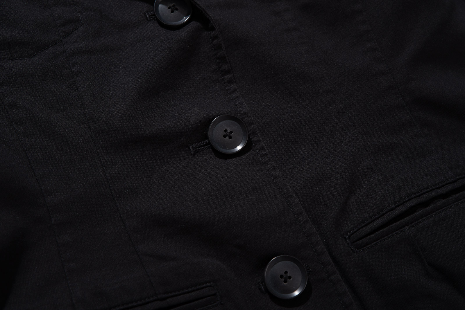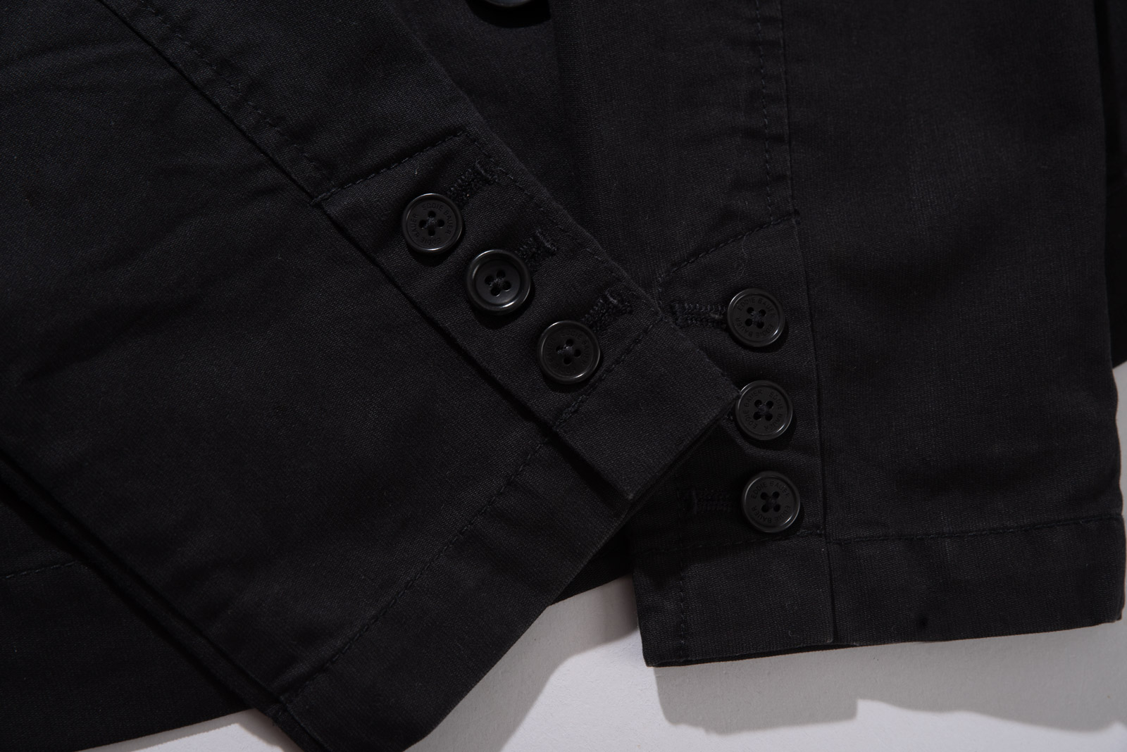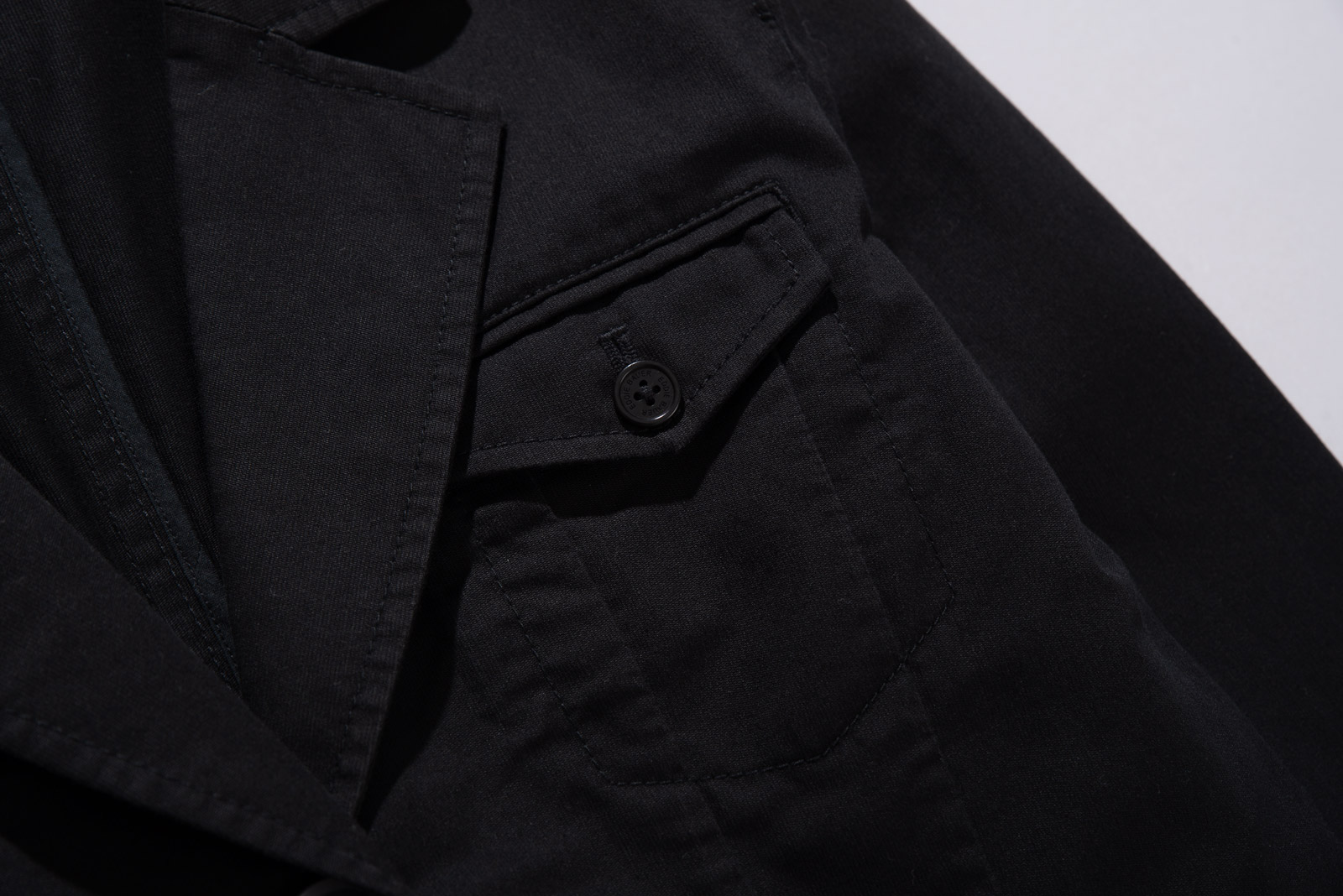 밀도 높은 100% 코튼 소재를 사용하여 형태를 안정적으로 유지하며 동시에 가볍고 편안한 착용감, 3버튼 재킷으로 캐주얼 블레이저와 밀리터리 유니폼의 디테일이 교차된 디자인이라 심심하지 않아요.