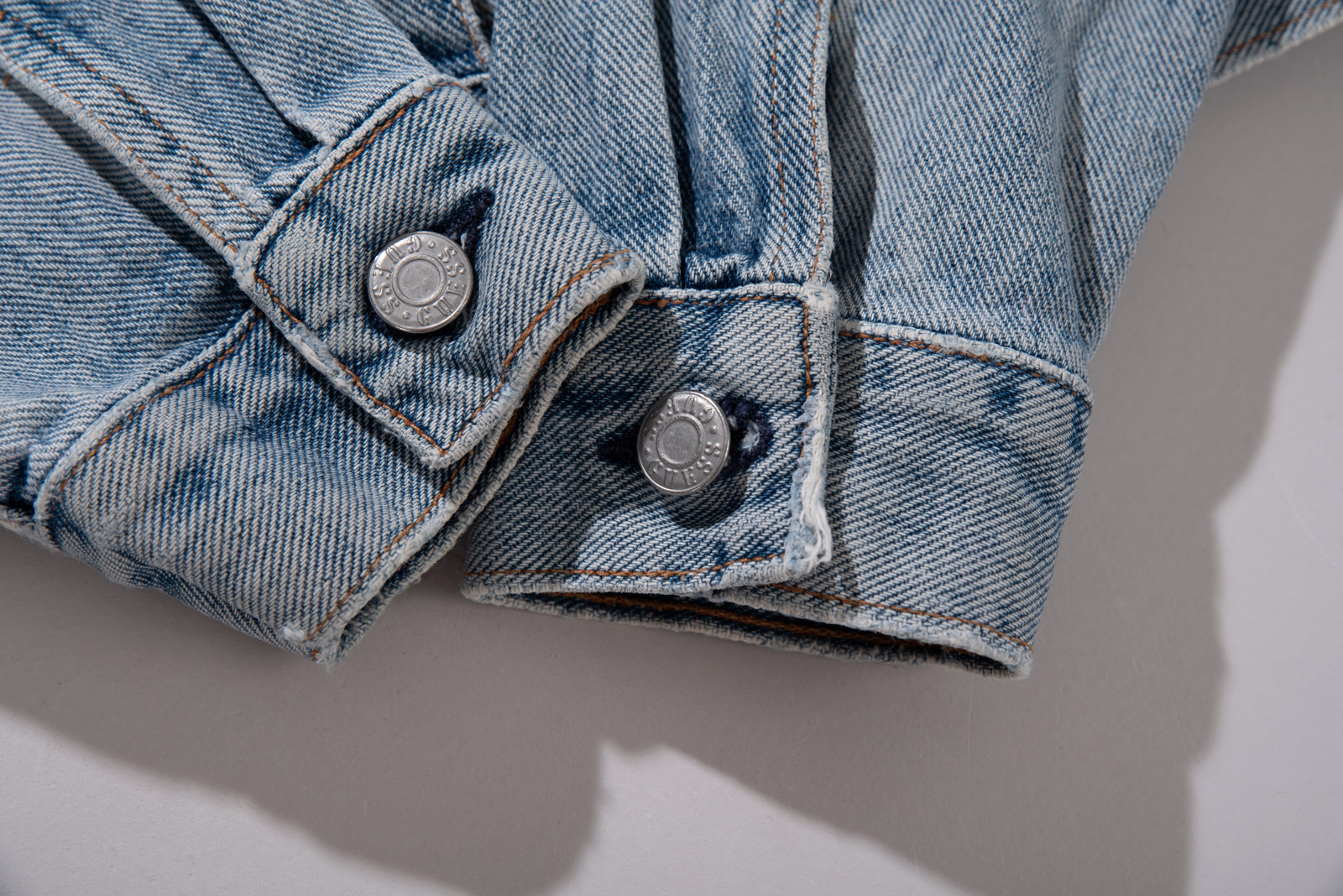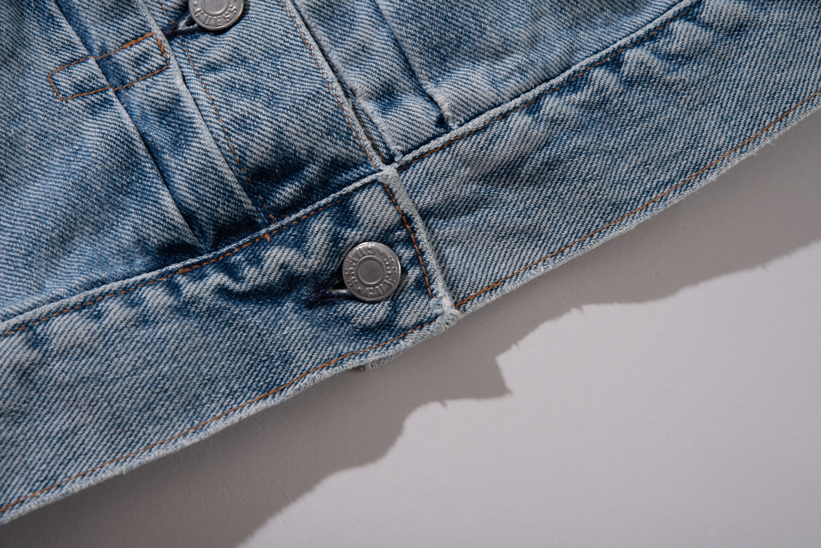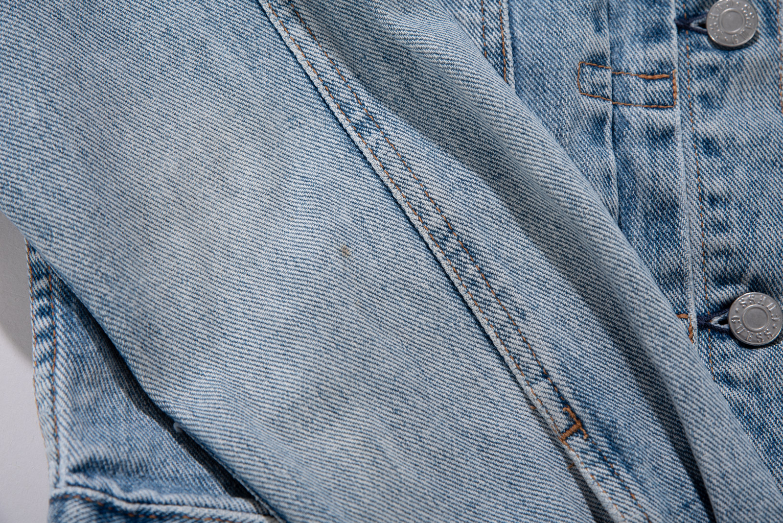 90s 특유의 러프하고 두툼한 데님이 시간이 흐르며 잘 낡아 부드러운 텍스쳐가 일품이며 빈티지하게 워싱된 라이트 블루 컬러가 아주 예뻐요.