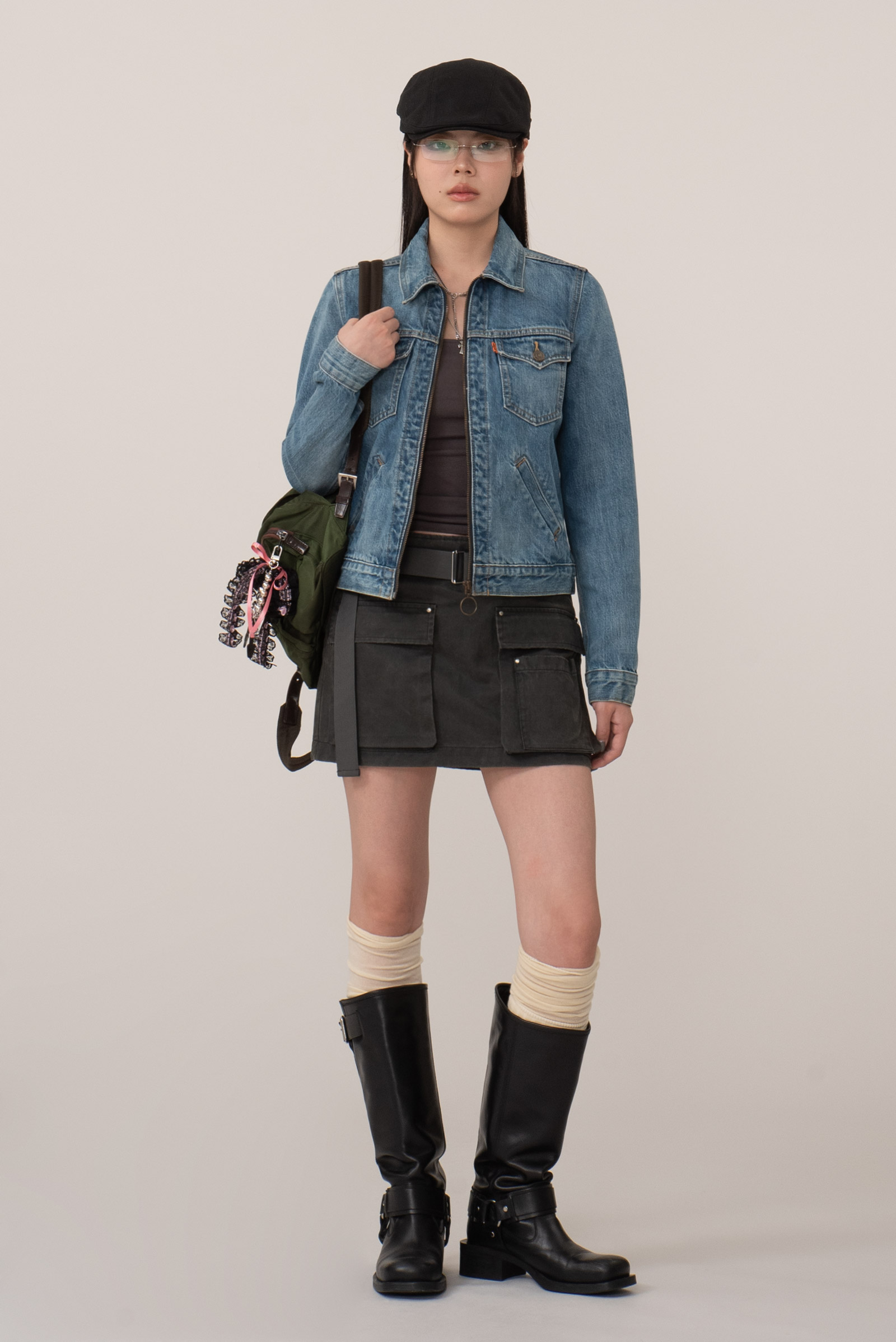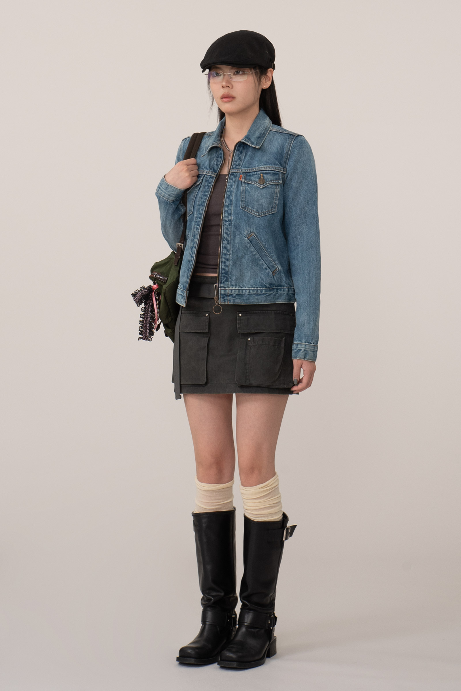 100% 데님, 자연스럽게 나온 기계 워싱과 부드러운 컬러감 등 세련되고 투박하지 않아 예뻐요.