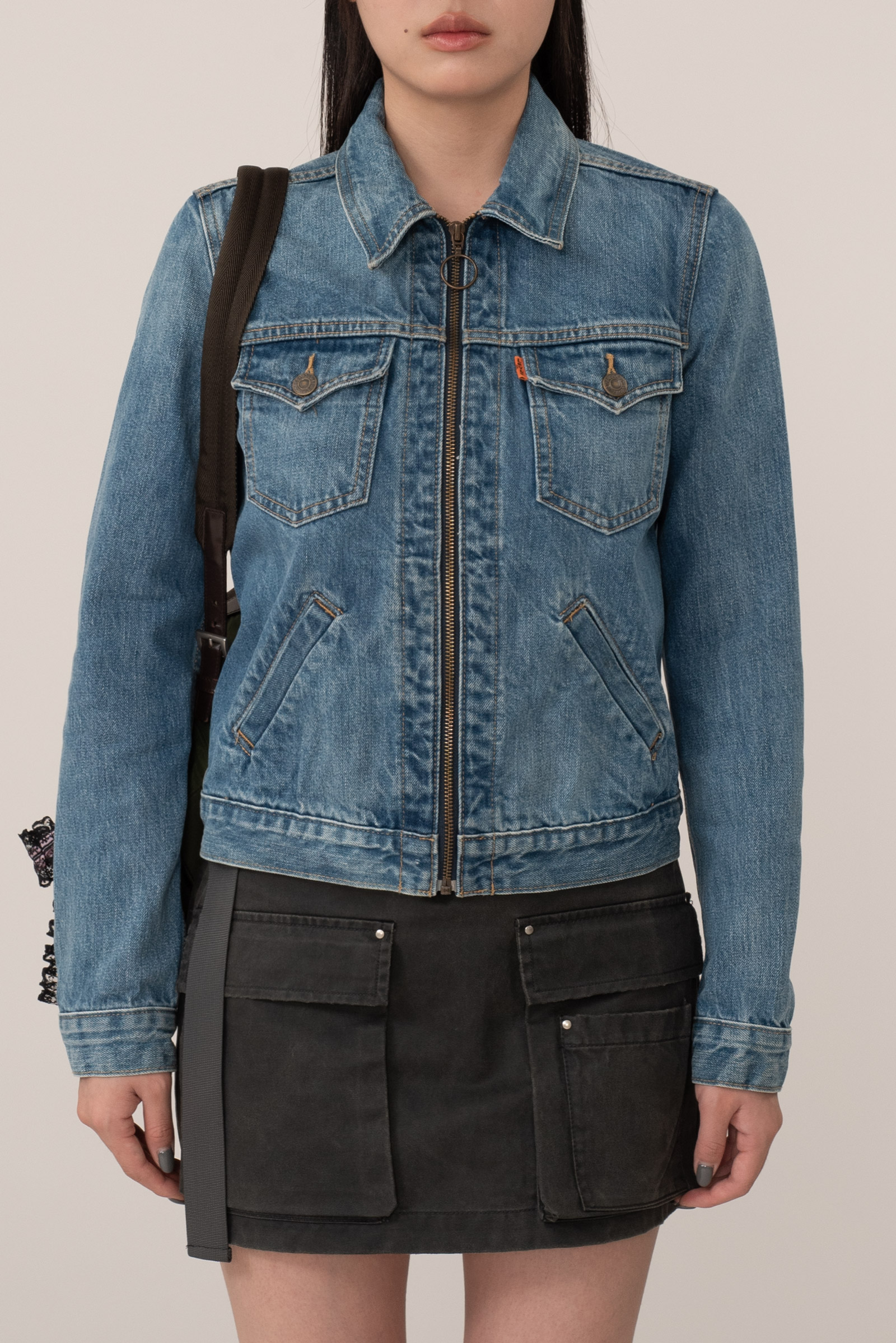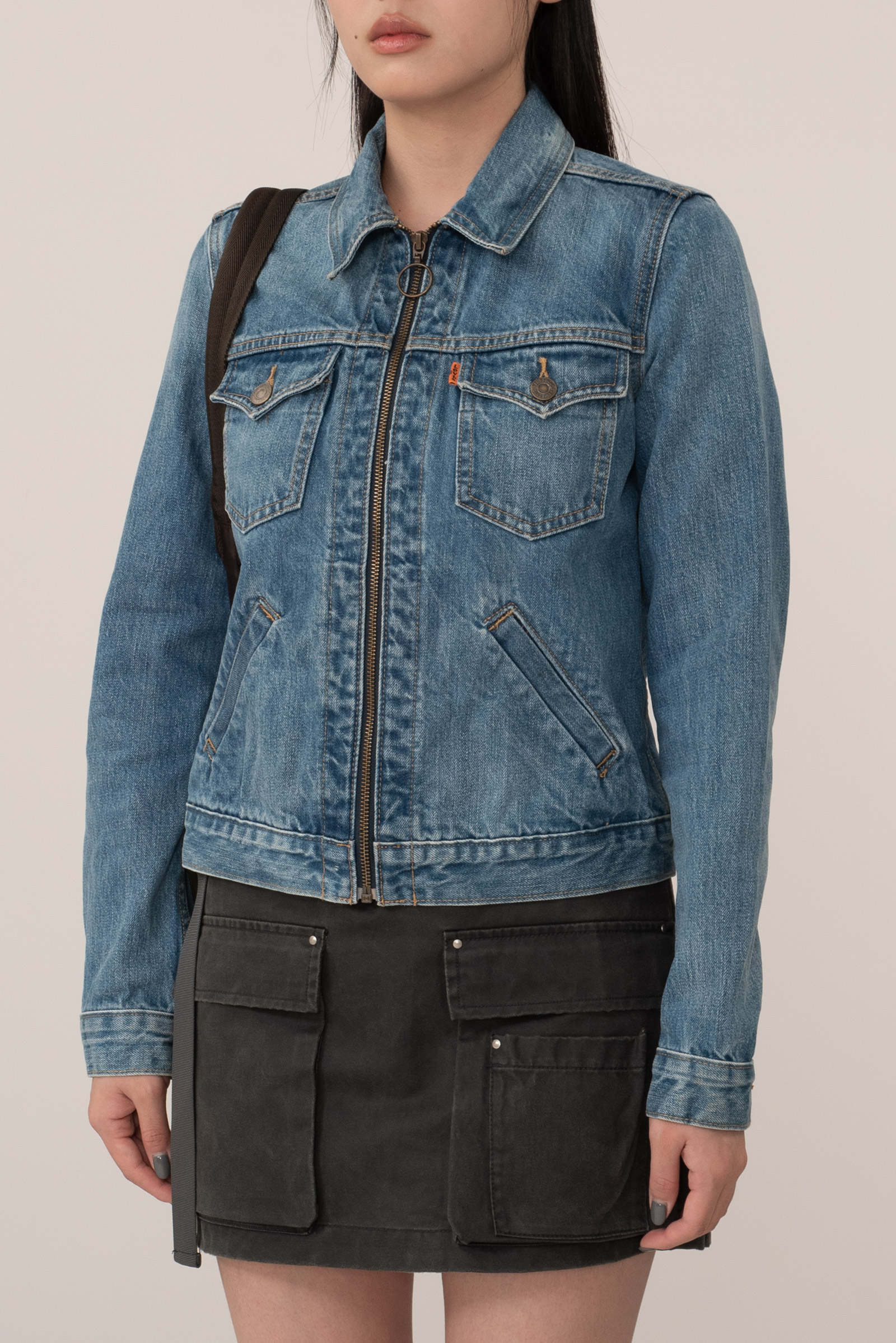 오렌지 탭과 투 호스 가죽 패치로 정통 리바이스의 아이덴티티를 강조하며 지퍼 클로징 타입의 트러커 디자인으로 기존의 버튼형 70505와 차별화된 스포티한 인상이에요.