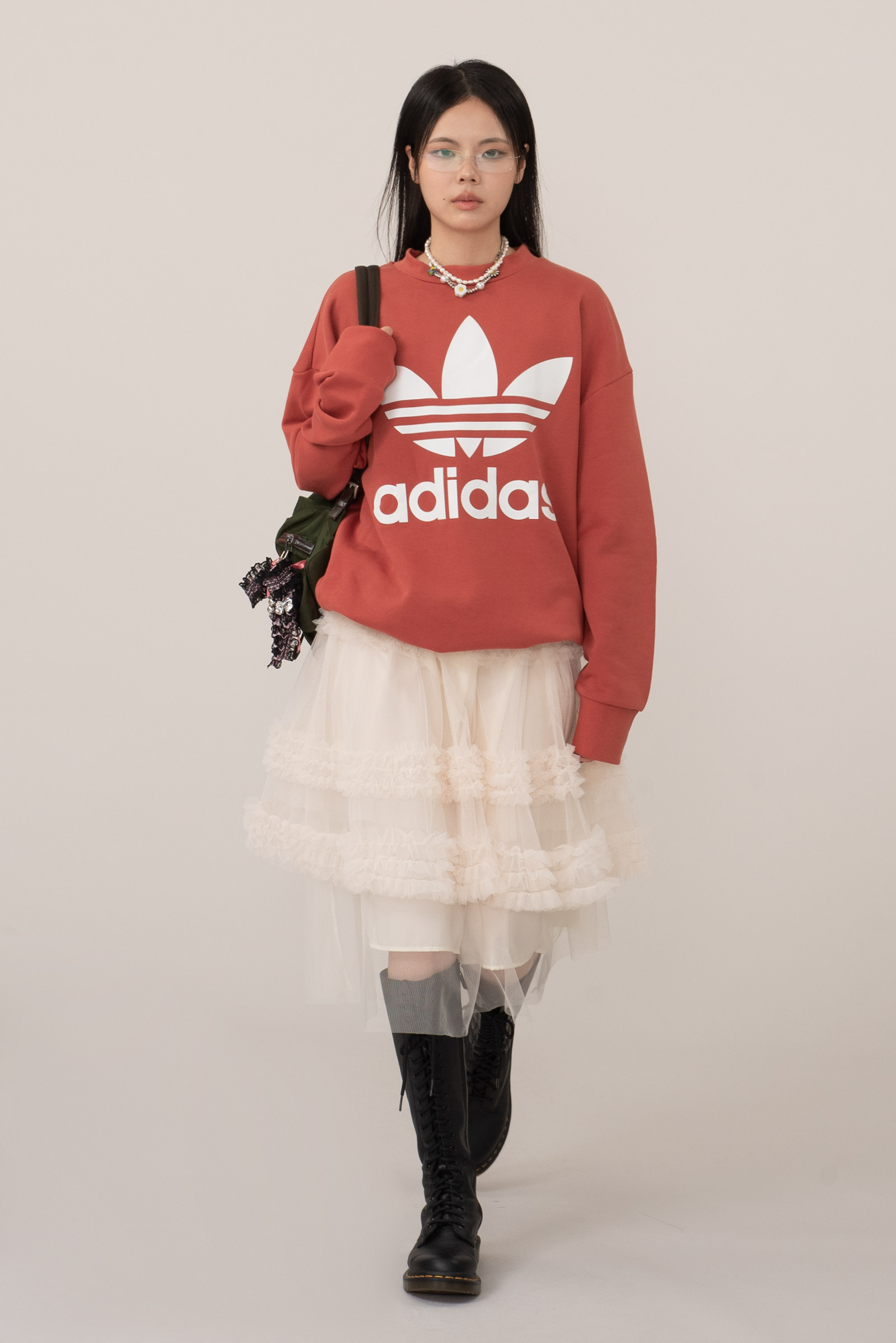 전면에 커다란 트레포일 로고가 눈에 띄는 오버핏 스웻셔츠로 70~80년대 컬리지핏 맨투맨을 재해석한 모델인데 차분한 어스톤이 빈티지 감성과 내추럴 감성을 즐길 수 있게 해준답니다.