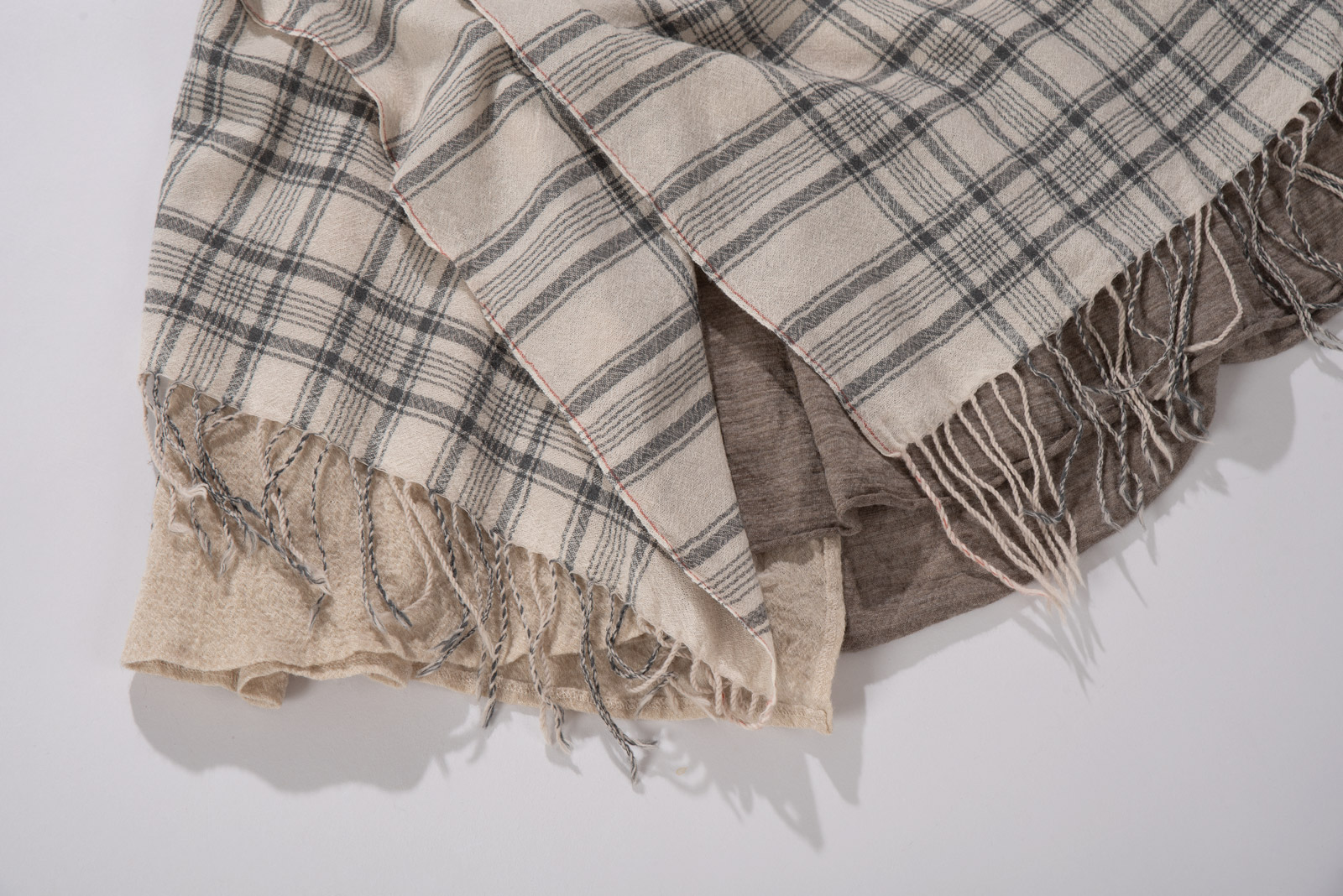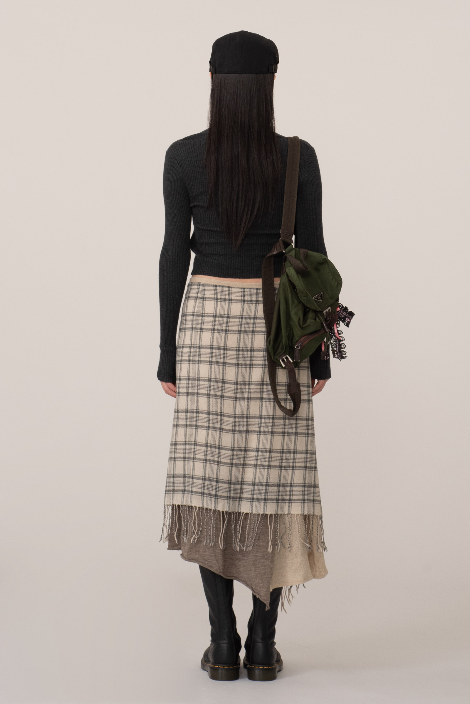 자개나 울 소재를 사용한 만큼 내추럴하고 자연스러운 컬러와 실루엣, 구조적인 디자인이 매력적이며 편안하게 입을 수 있으면서도 포인트가 되는 스커트랍니다.