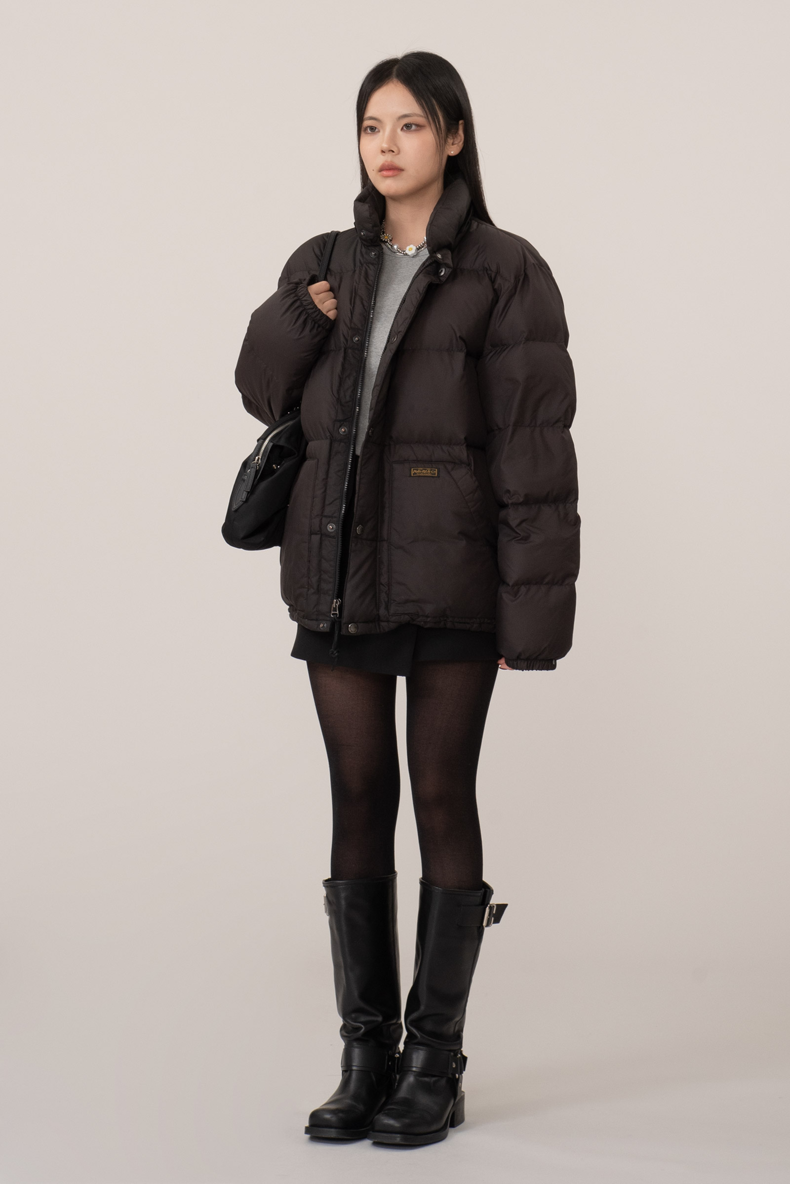 넉넉한 사이즈로 루즈하게 떨어지는 오버핏 푸퍼 스타일로 편안하게 추천드려요.
