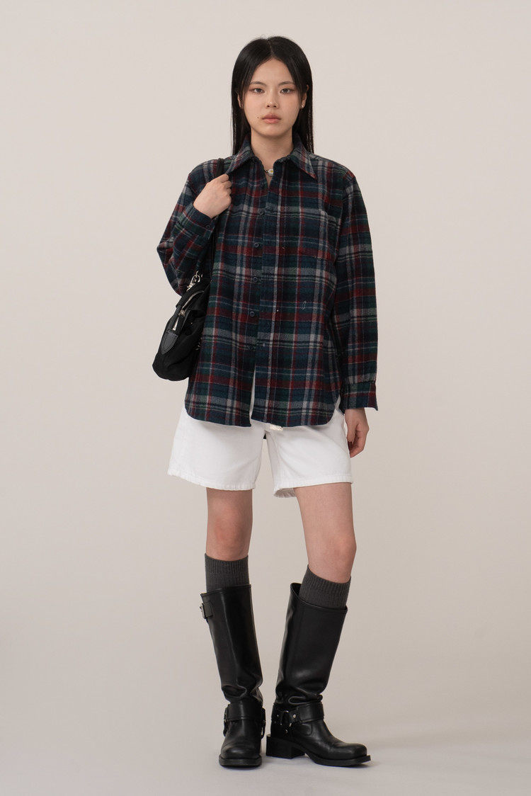 일반 코튼 셔츠보다 두껍고 가벼운 울 셔츠라 간절기에는 재킷처럼 단독, 아우터로 활용도가 높고 바디와 소매 모두 과하게 크지 않으면서도 이너를 받쳐 입을 수 있을 정도의 여유가 있어서 55 적당히 여유 있게 추천드려요.