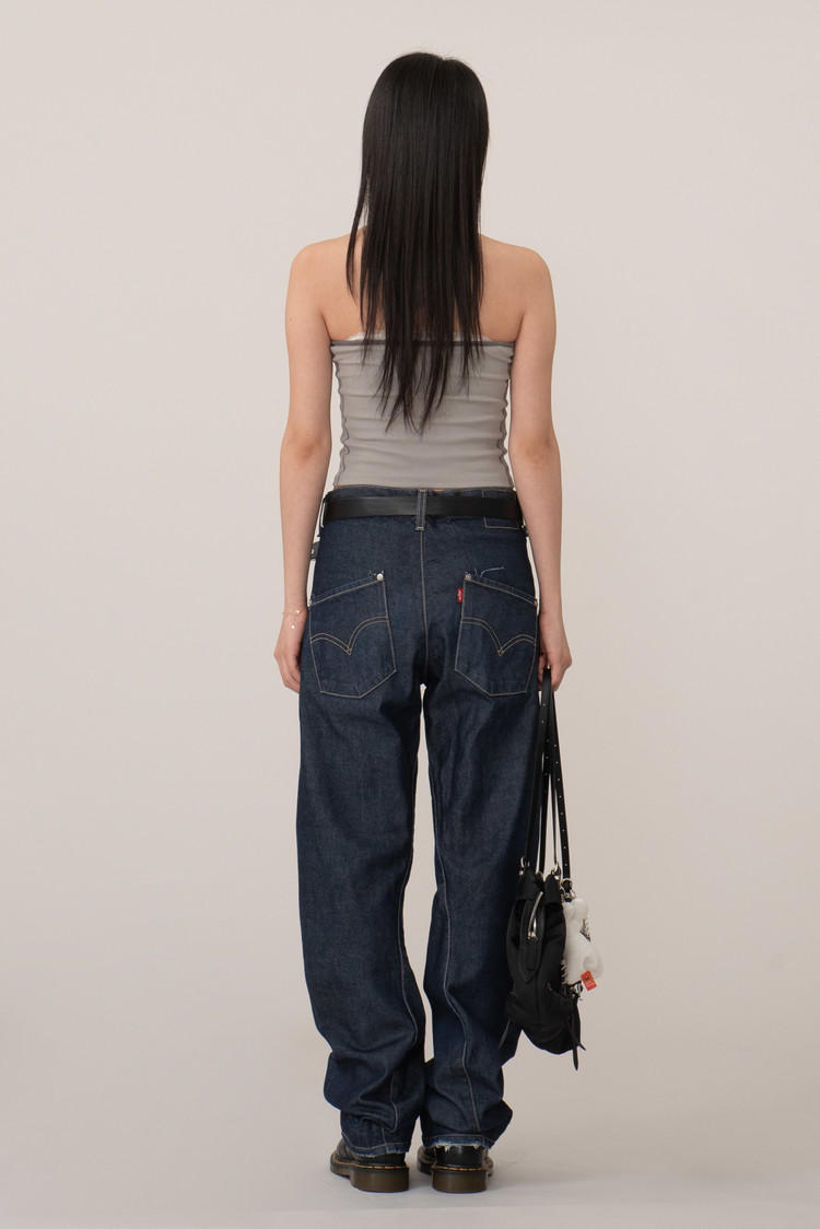 1999년 밀레니엄을 앞둔 시대적 변혁 속에서 리바이스가 전통적인 5포켓 진에서 벗어나 새로운 인체공학적 패턴과 곡선 절개를 도입하며 미국 샌프란시스코에서 시작된 청바지 역사의 진보와 2000년대 Y2K 문화가 맞닿는 지점에서 탄생한 제품인데요.