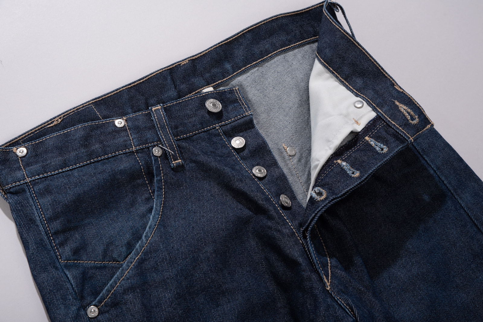 기존 데님 팬츠의 고정관념을 깨고 입체적인 실루엣과 착용감을 실현한 엔지니어드 1st의 시그니처 디자인과 깊은 진청 컬러, 러프하고 하드한 데님과 버튼 플라이, 커다란 백 포켓이 특징이랍니다.