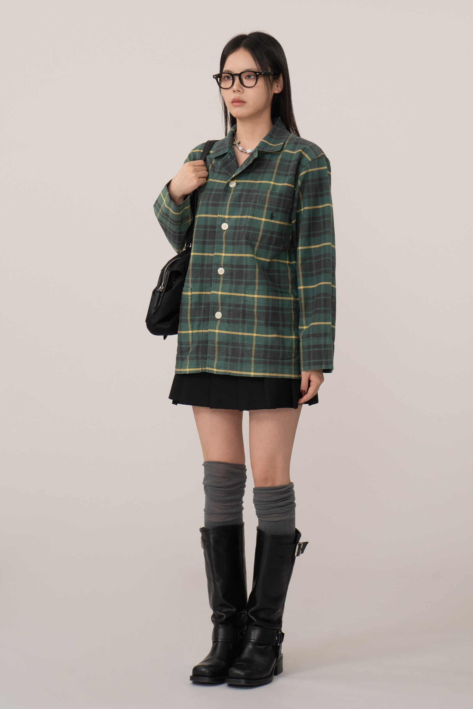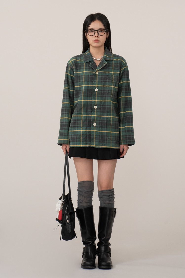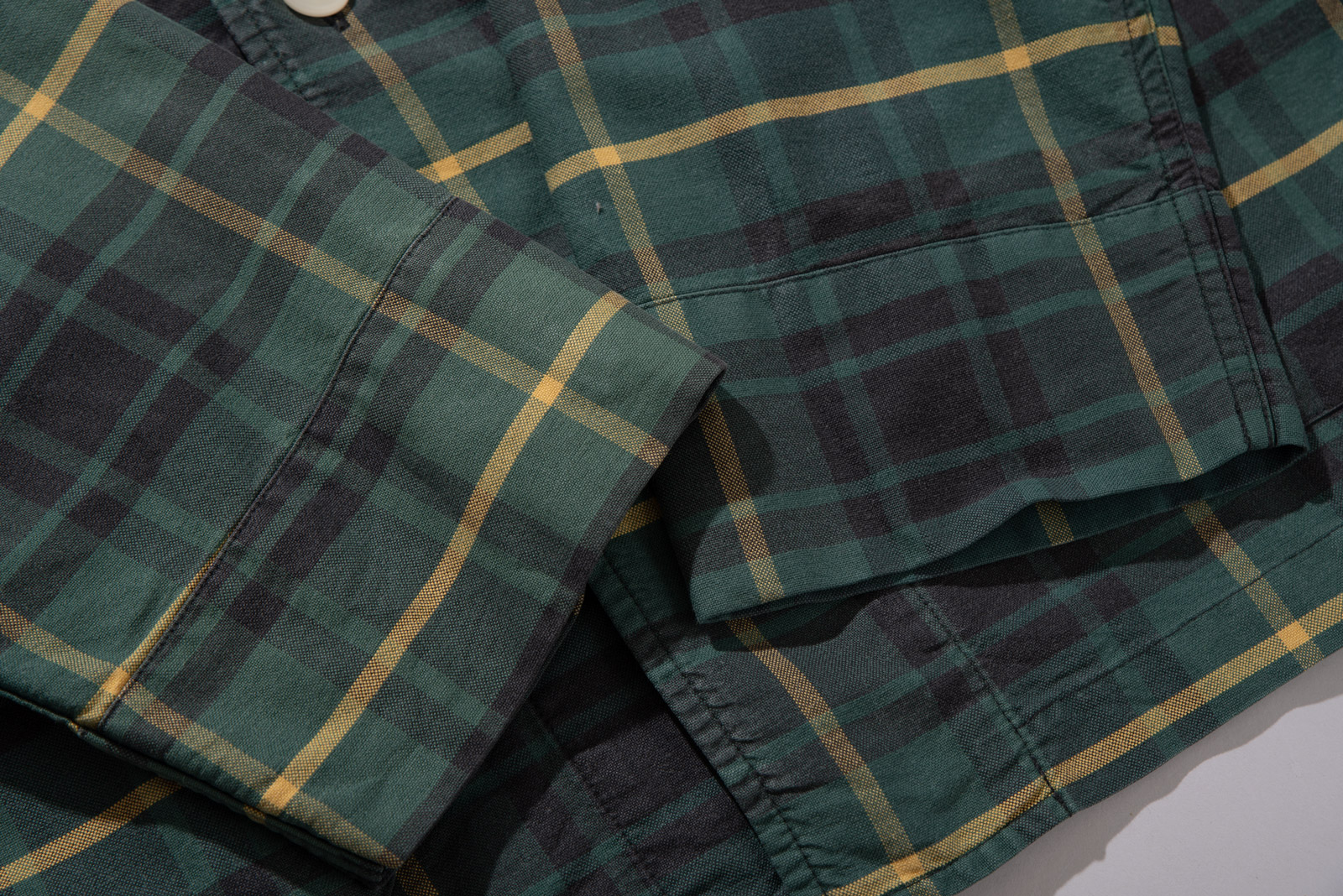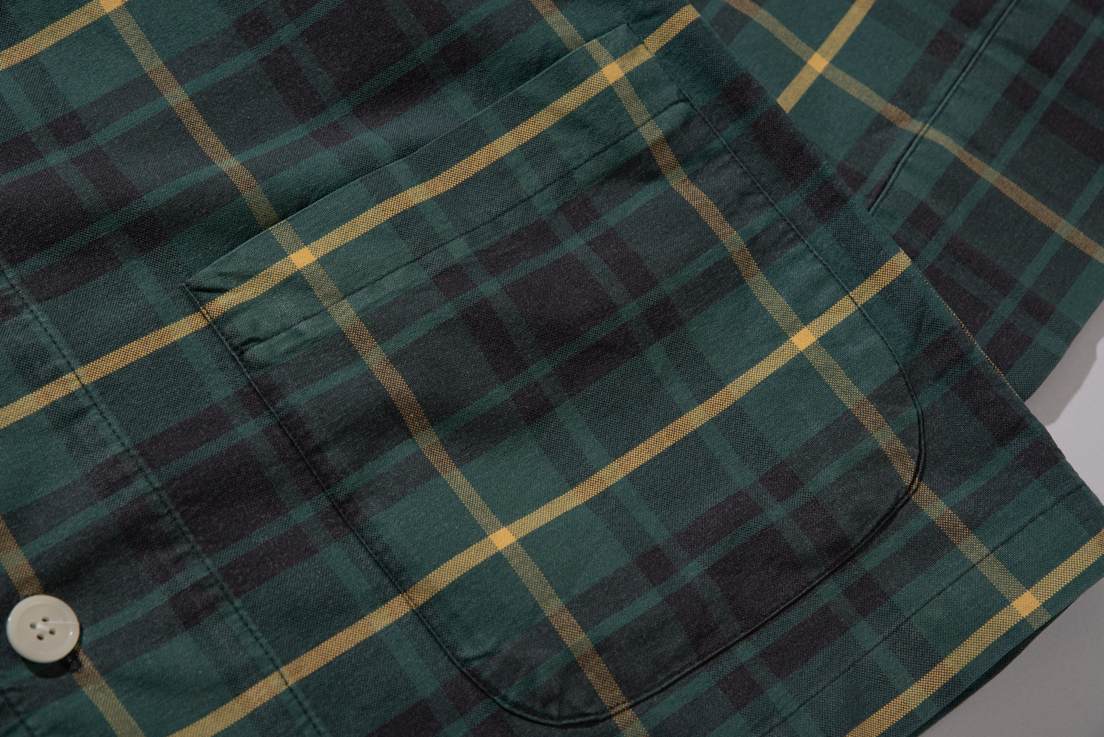 탄탄하게 짜여진 코튼 원단 위에 타탄 체크 패턴이 돋보이고 표면은 매트하고 부드럽게 떨어지는 피스인데요.